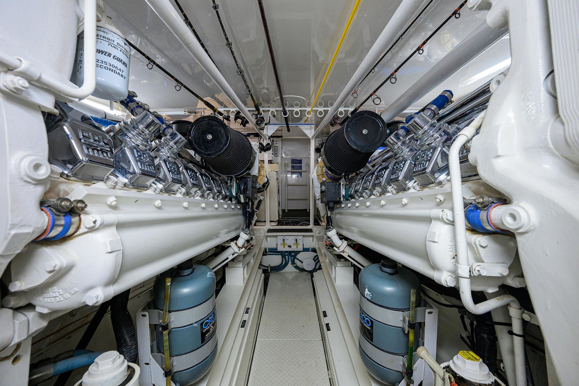 This 2001 65 Viking is equipped with twin 16V2000 MTU M90 engines, which provide exceptional speed and power for navigating all sea conditions and chasing down big game fish or just cruising in blissful comfort.The enclosed bridge design offers protection from the elements while still providing excellent visibility for the captain and guests. The interior of the bridge is outfitted with comfortable seating, upgraded state-of-the-art navigation and communication systems, and seven CCTV cameras, all data and any video information is distributed to the entire vessel to include every Garmin screen and TV. All the amenities needed for a successful day or week of fishing/cruising. The enclosed bridge makes everyone want to ride on the bridge and arrive fresh in the climate controlled space plus your instruments electronics and soft goods stay in perfect condition remaining outside of the elements. With the watermaker and 600LB/day Eskimo ice chipper the vessel is self-sustaining alongside the twin generators. Walking through the main deck of the Viking 65 Sport Fish, you will find a spacious 179 sq ft cockpit. The painstaking efforts taken in the re-imagination of this vessel are really incredibly thoughtful and simply without compare! Moving inside beyond the compressed air controlled salon entry, the salon is elegantly appointed with high-quality furnishings to include L-shaped sofas with tremendous storage capacity, a custom cabinet for accessible tackle kit storage, and custom bar cabinets.The fully-equipped galley complete with under counter Sub-Zero refrigerators and freezer drawers and deep pull out storage shelving. Just forward of the galley accessed by a door on port side of companionway steps is a large step in closet with ample shelving as a pantry or additional storage for long trips. The dinette's Teak dining table that will seat 6, perfect for entertaining guests and more ample storage below seating. Teak cabinets forward of dinette house custom drawers for efficient well placed storage of tableware and barware affording everything you need a well defined location that will not rack bout when cruising.Below deck, you will find four luxurious stateroom accommodations accessed from a near centerline companionway for extended trips that including en-suite heads with full size stand up showers, a king master to port, a queen walk around VIP forward, to starboard an over under bunk, a crew stateroom with access to the engine room through a forward water tight door (in addition as well to cockpit entry) and plenty of storage space full size washer and dryer in companionway hall closet, and plenty of storage space for gear and personal belongings. In the floor of the hall and forward stateroom there its great access to the bilge, bow thruster motor and again more storage areas. The engine room is a full stand up space indicative of a large sport fish/yacht that gives full access to the engines and all support equipment like the generators, water makers, Eskimo 600 etc.Overall, this 2001 Viking enclosed bridge sport fish with 16V2000 MTU M90 1850 HP engines is by far at the top-of-it's class for a fishing/cruising vessel that offers a perfect combination of performance, comfort, and style for serious anglers who demand the best. What other sporty in this class can you monitor the vessel's Main engine gauges, an anchor watch, trip progress, bottom sounder, and fuel management?
