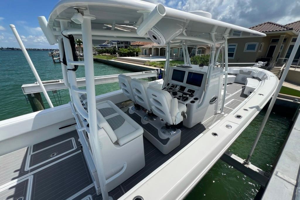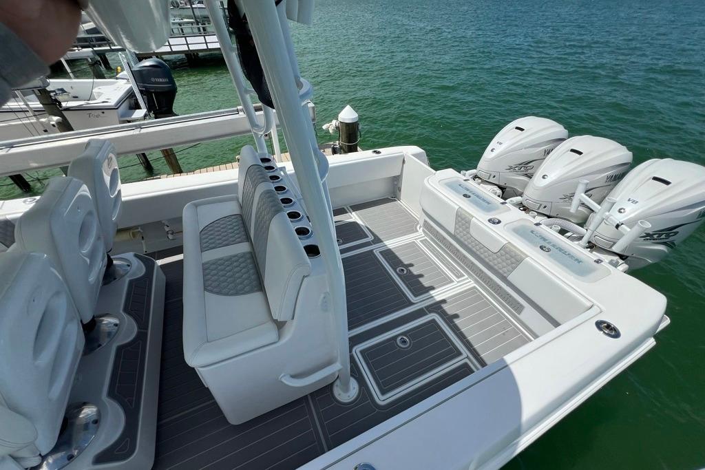 2023 39 ST (130 Hours)This boat is priced for a quick sale, optioned with everything you need and nothing you don't. It is in excellent condition, maintained with an open check and lift kept. The dual row seating is a rare and desirable option on a 39 and changes the game for those who often have long runs or big crews. The Yamaha 425's only have 130 hours and are the perfect power package for this boat if you like to go fast and do so efficiently. Other stand out options such as forward seating, windlass anchor, head in console, and electric slide cooler make this boat easy to entertain any crew from the sandbar to the farthest fishing spots you have. If you know what you're looking for, and compare it to others on the market, it is easy to see that this boat stands out and is priced aggressively. Offers are encouraged.Key features:Dual row stadium seatingRecessed forward seatingLebroc helm chairsRhodan trolling motorWindlass anchorJoystick pilotingHead in consoleElectric slide coolerLight barGarmin electronicsGarmin autopilotExtensive JL audio packageFusion radioSeachestGarelick ladderUpgraded hexagon stitchingAqua- Traction flooring