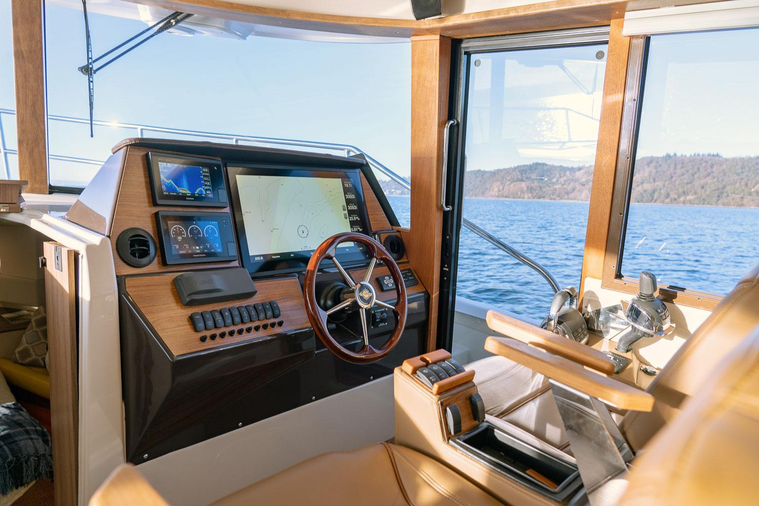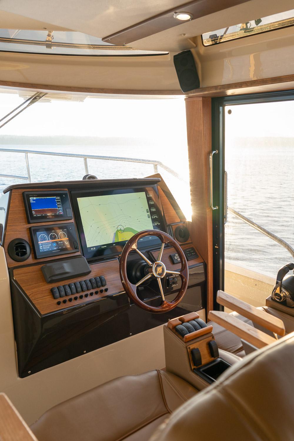 AIS receivingAIS transmittingBackup cameraColor engine display, 7”Digital fuel flow dataElectronic shift and throttle control, twin-leverGarmin autopilotGarmin 8622xsv navigation system w/ GPS and sonar, additional 7” display Garmin radar, Fantom 24 Helm drink holderHelm seat, double Sliding helm doorUSB charging ports Windshield wipers, 3 Wireless phone charger