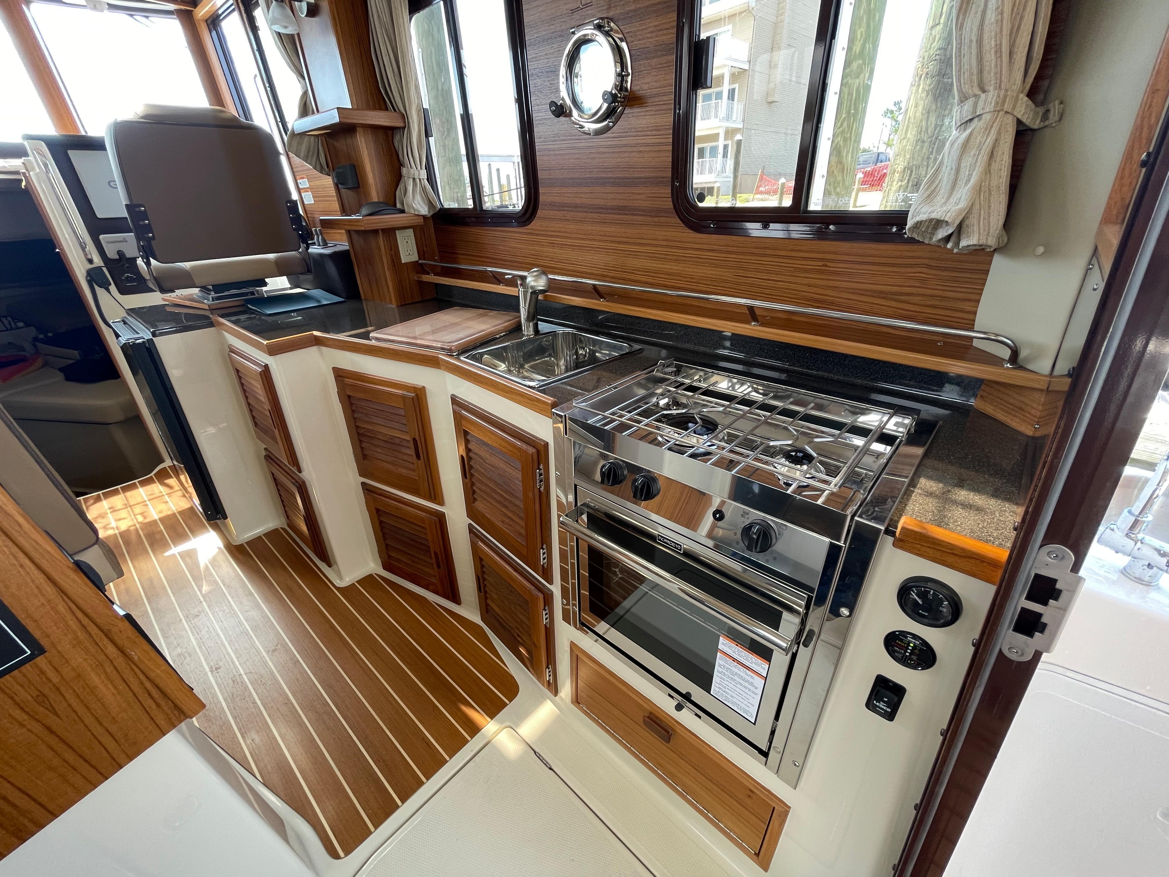 43 Ranger Tug Sedan 2026 LIMITED TIME OFFER Take advantage of our Summer Sizzle sales event! We are offering factory in-centives on all models in the Ranger Tugs lineup.Free factory extended warrantyFree factory delivery on ordered boatsFree Volvo extended warrantyThis program applies to all qualifying boats 6/20/2025 and 9/30/2025.Boat must be delivered and registered to the customer prior to 9/30/2025.New Boat Training and Orientation Program: With every new boat purchase, we provide a hands-on orientation led by a Factory certified Ranger Tugs specialist. Our goal is to make sure you feel completely confident with every aspect of your new yacht, whether you’re cruising solo or with a partner.We’re also here for you 24/7, every day of the year. Whether you need help with scheduled maintenance, troubleshooting, or an unexpected issue, your dedicated support team is just a call away. We’re committed to making your boating experience smooth and enjoyable.The R-31 S shares many of the features and qualities of her smaller sisterships but some notable additions to this larger model make her ideal for extended cruising while still being a trailerable trawler. The builders at Ranger Tugs equipped the foredeck with seating and a table that can be raised or lowered depending on whether the boat is under way or at anchor or dock for entertaining. In addition to the foredeck seating, the R-31 boasts a larger cockpit area with wraparound seating utilizing seats that fold out of the gunwale. When not entertaining, seats are folded leaving the cockpit unencumbered.The interior layout of the R-31 S features two staterooms—one large island berth forward with en suite head and a midship berth and day head. Those who are familiar with Ranger Tugs models will recognize the galley layout and helm station that maximize interior space. A starboard side door provides easy access from the helm to the side decks so crew can get to the bow for line handling.Like all Ranger Tugs, the R-31 S comes essentially turnkey with standard features and equipment intended to make her owner’s experience hassle-free and allow for ease of handling and comfort under way. Standard equipment includes bow and stern thrusters and a Volvo D4 320 HP engine that achieves a 16 knot cruise speed.