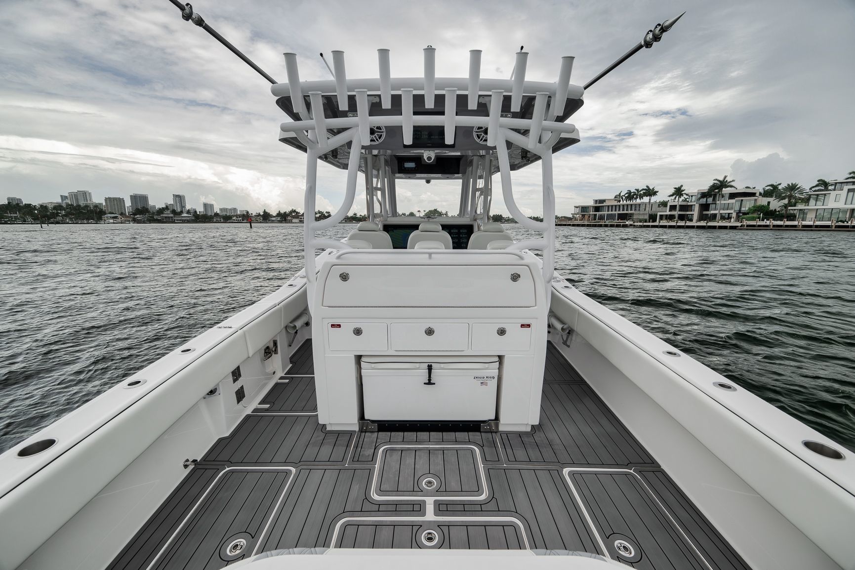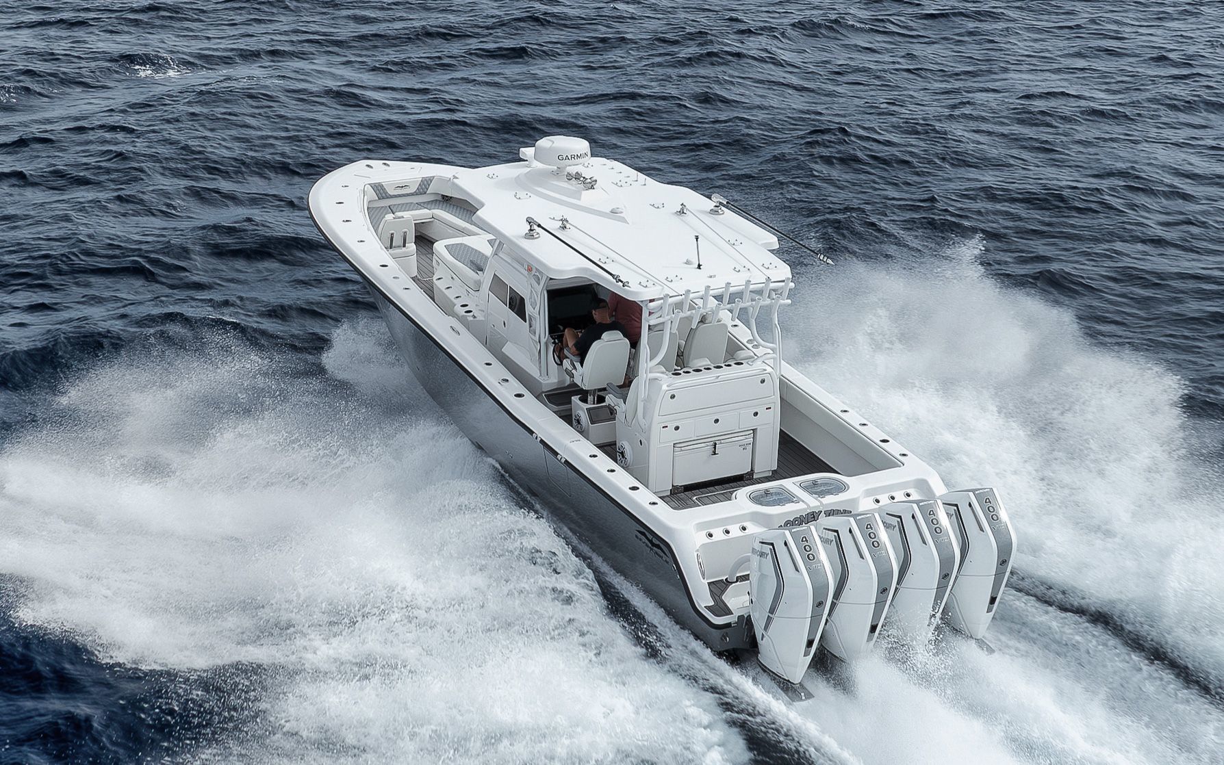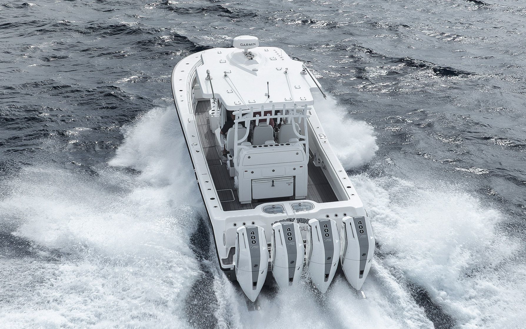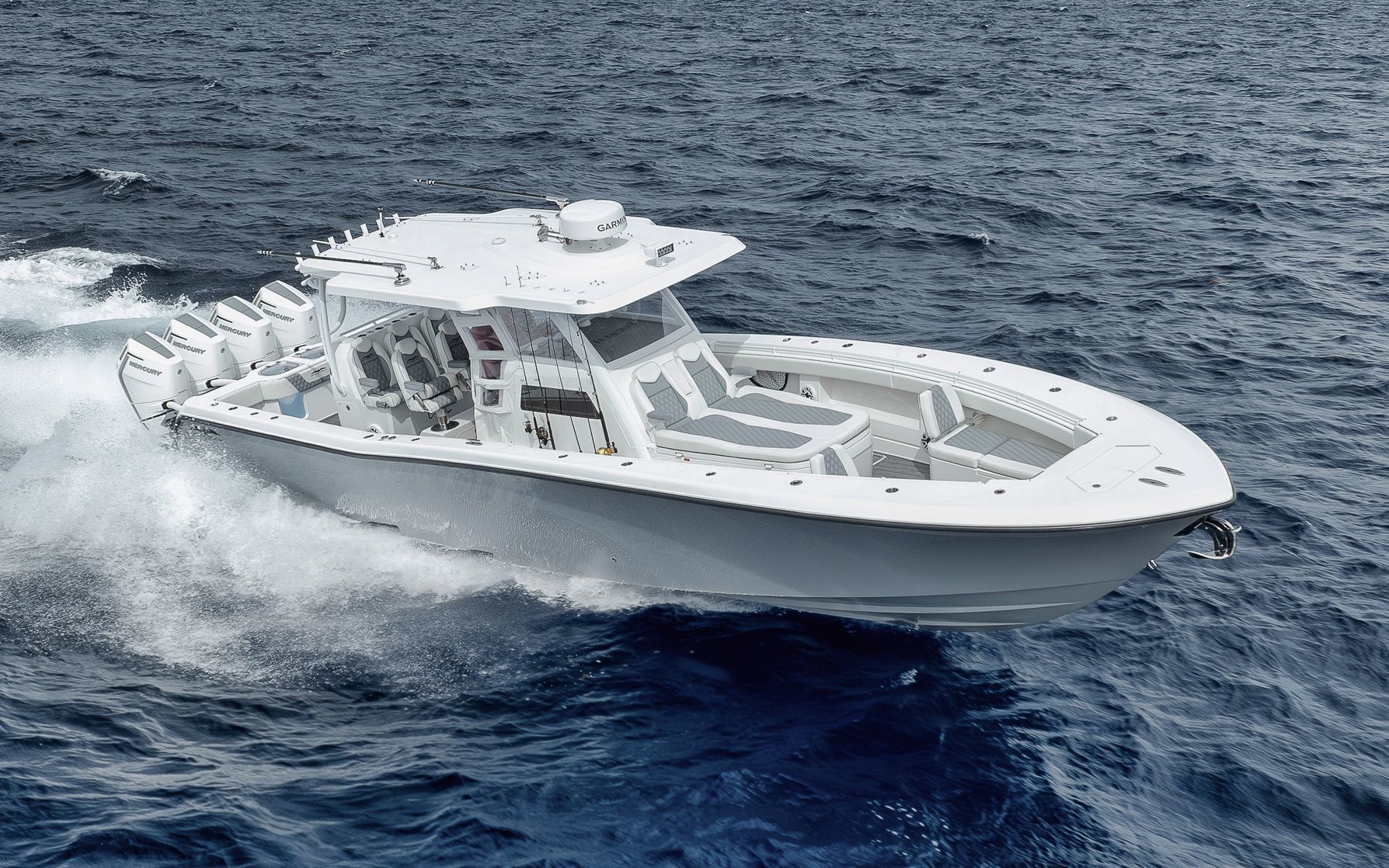 -Painted Engines -JPO Steering-LED Spreader Lights-Gemlux Outriggers-Full Windshield-Extended Hard Top-Extra Rod Holders on Gunnel, Coffin box, Console and Transom-Upgraded Livewell Pumps with colored lights in livewell-Electric Reel outlets (4)-Etched Transom Livewell lid-Dual Row seating with Custom Release Marine helm chairs-Rear Jump seats-Bow thruster-Engine Flush System-Foward luxury seating modules-Dive door-Electric cooler slide-Helm AC-Windlass-Night vision CameraStandard Features