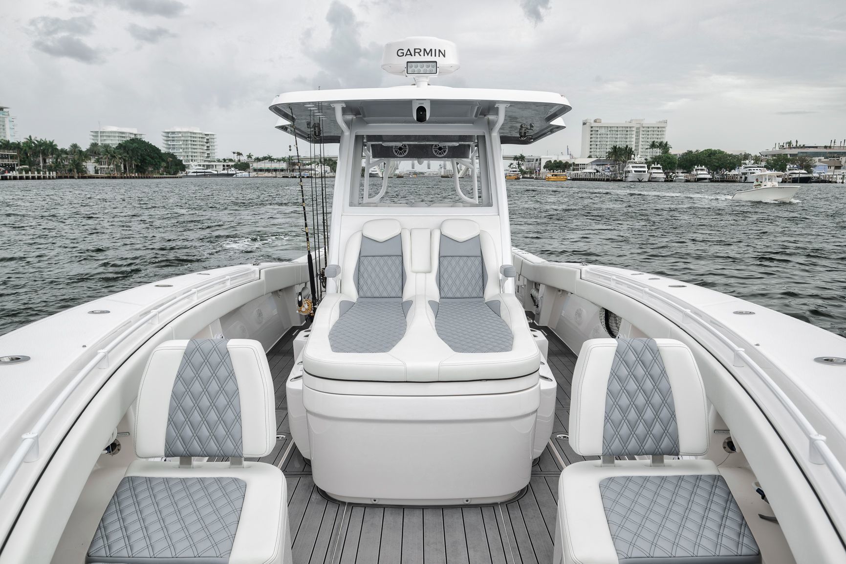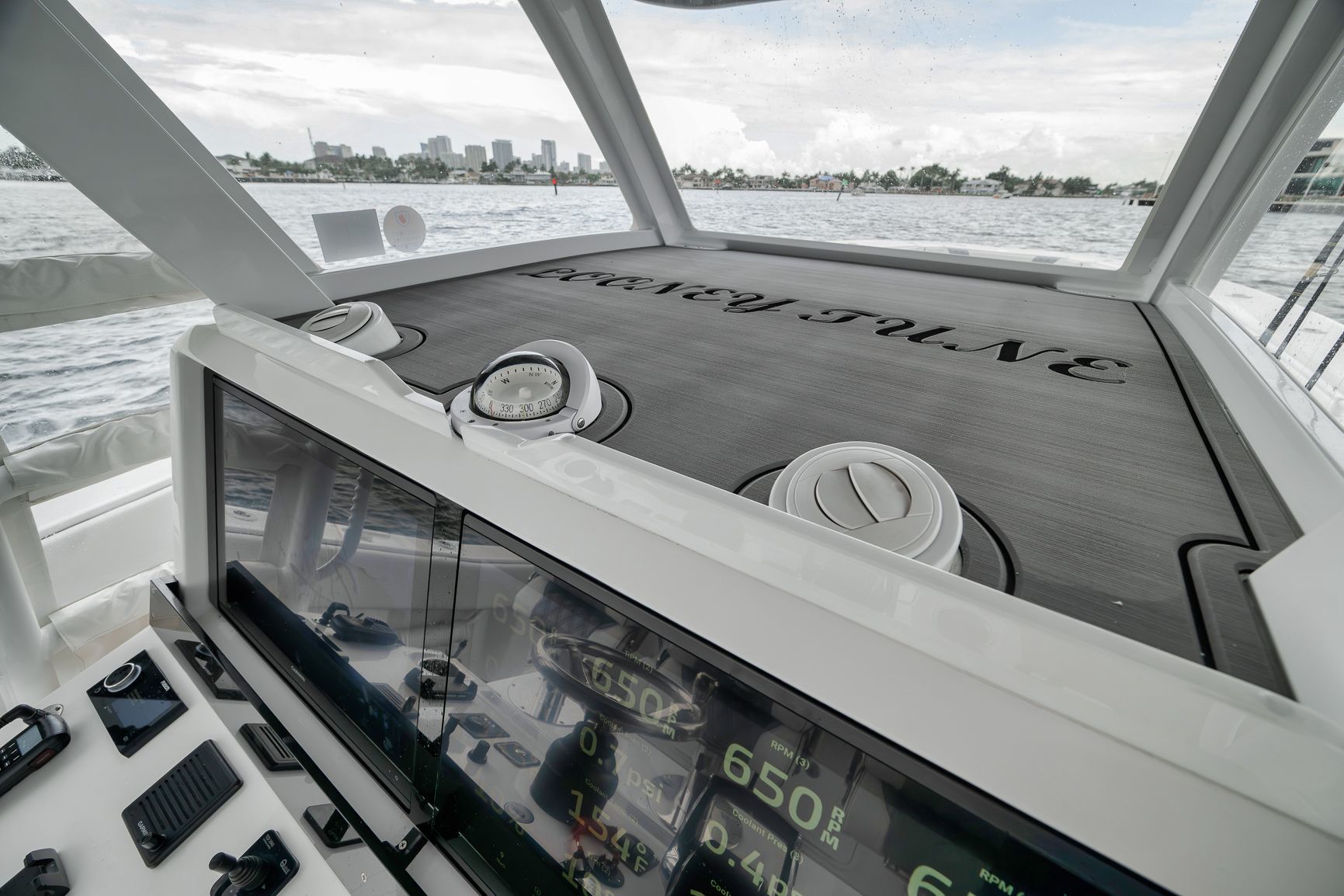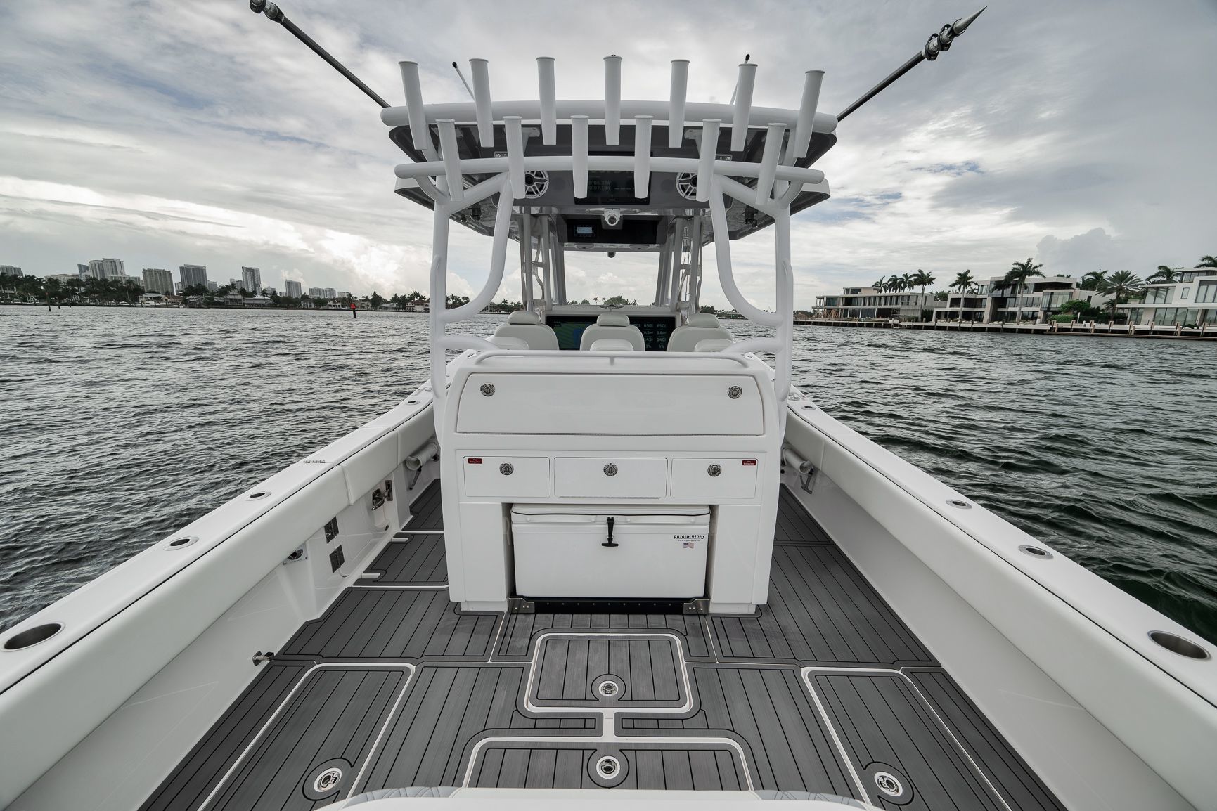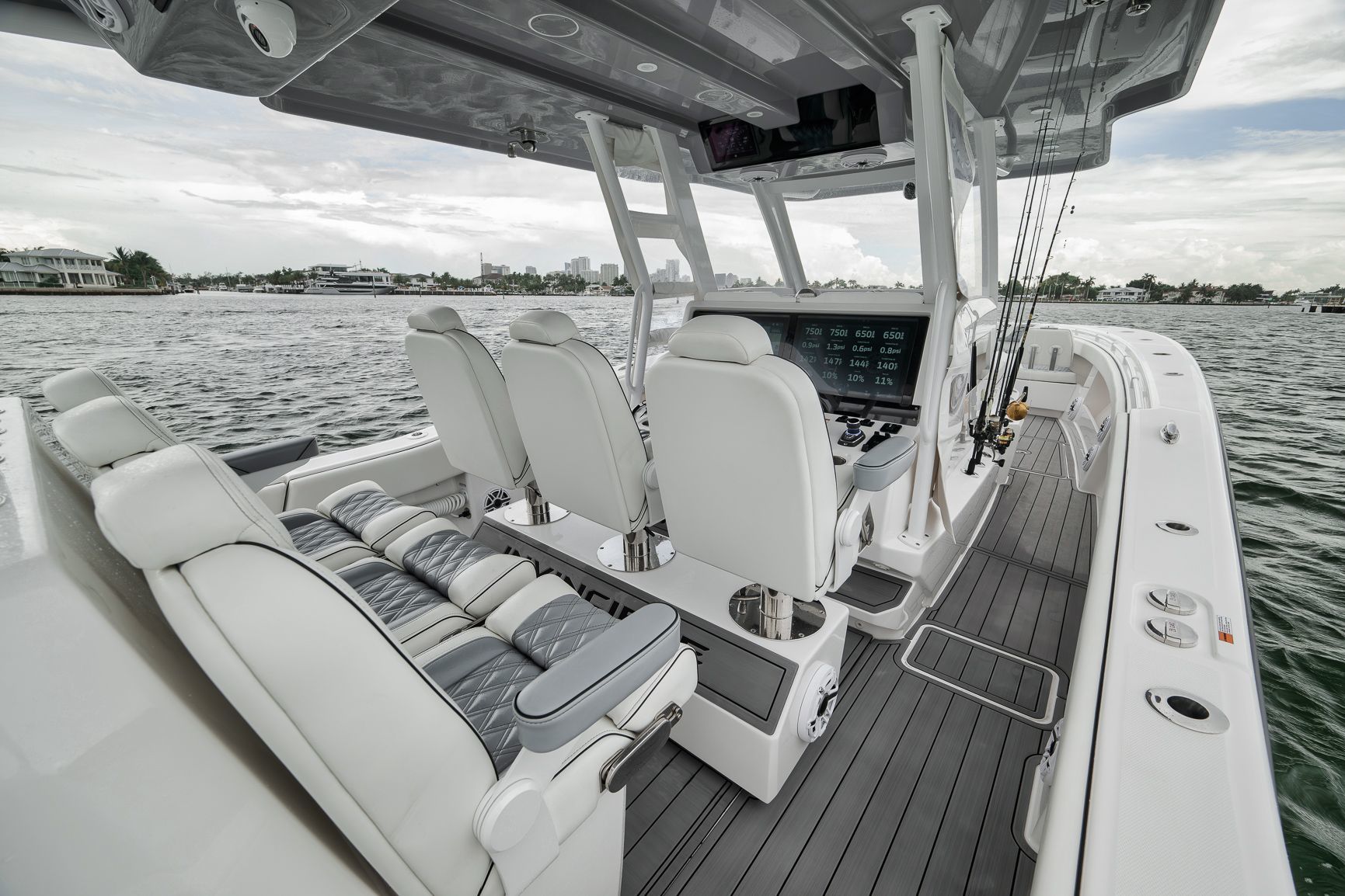 -Painted Engines -JPO Steering-LED Spreader Lights-Gemlux Outriggers-Full Windshield-Extended Hard Top-Extra Rod Holders on Gunnel, Coffin box, Console and Transom-Upgraded Livewell Pumps with colored lights in livewell-Electric Reel outlets (4)-Etched Transom Livewell lid-Dual Row seating with Custom Release Marine helm chairs-Rear Jump seats-Bow thruster-Engine Flush System-Foward luxury seating modules-Dive door-Electric cooler slide-Helm AC-Windlass-Night vision CameraStandard Features