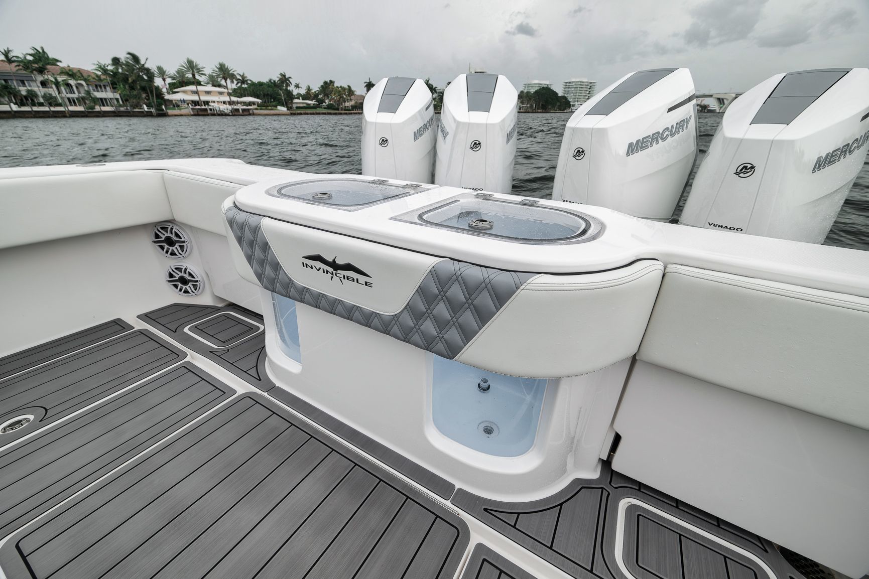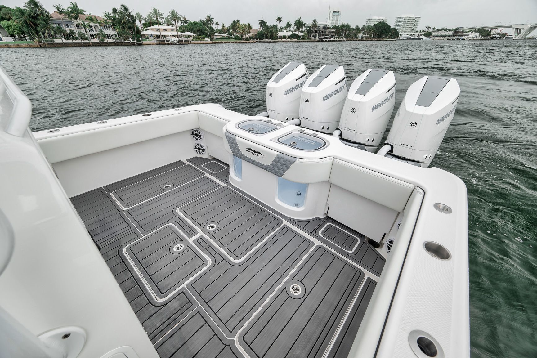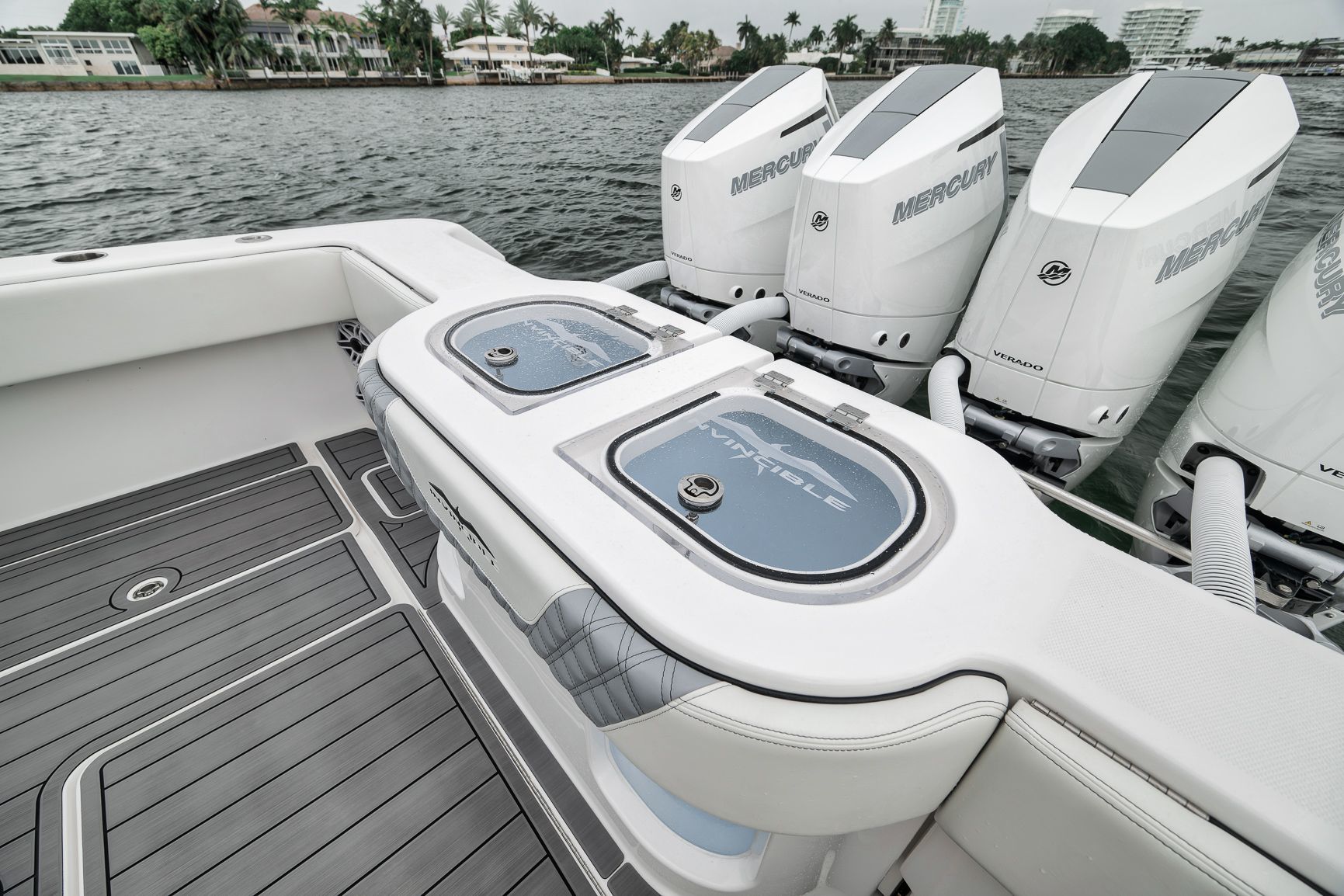 2024 Invincible 43 Open - Quad V10 Mercury Engines - Low Hours - Fully LoadedDon't miss this incredible opportunity to own a like-new 2024 Invincible 43 Open with low hours and the highly desirable quad Mercury V10 engine package. This setup delivers a top speed over 70 MPH and excellent fuel efficiency at cruising speeds, ideal for serious anglers and performance enthusiasts alike.This vessel was custom built with every possible Garmin upgrade, including the largest screens available for the console, offering an unmatched navigation and fishing experience.Key Features:Quad Mercury V10 engines (WOT 70+ MPH)24" Garmin MFDsFully loaded Garmin electronics packageMercury JPO Joystick and Bow thrusterPremium sound system (JL Audio with Fusion Head Unit)Full SeadeckUpgraded Bow and transom seating with Release Marine helm chairsHelm AirMeticulously maintained and stored indoors since deliveryThis 43 Open has been rack stored inside a hurricane-rated building in Fort Lauderdale since new and shows like it just left the factory.Contact us today to schedule a private showing.