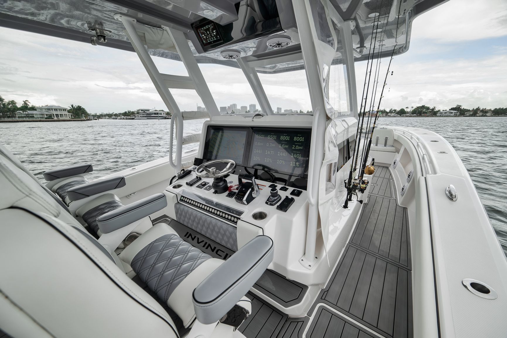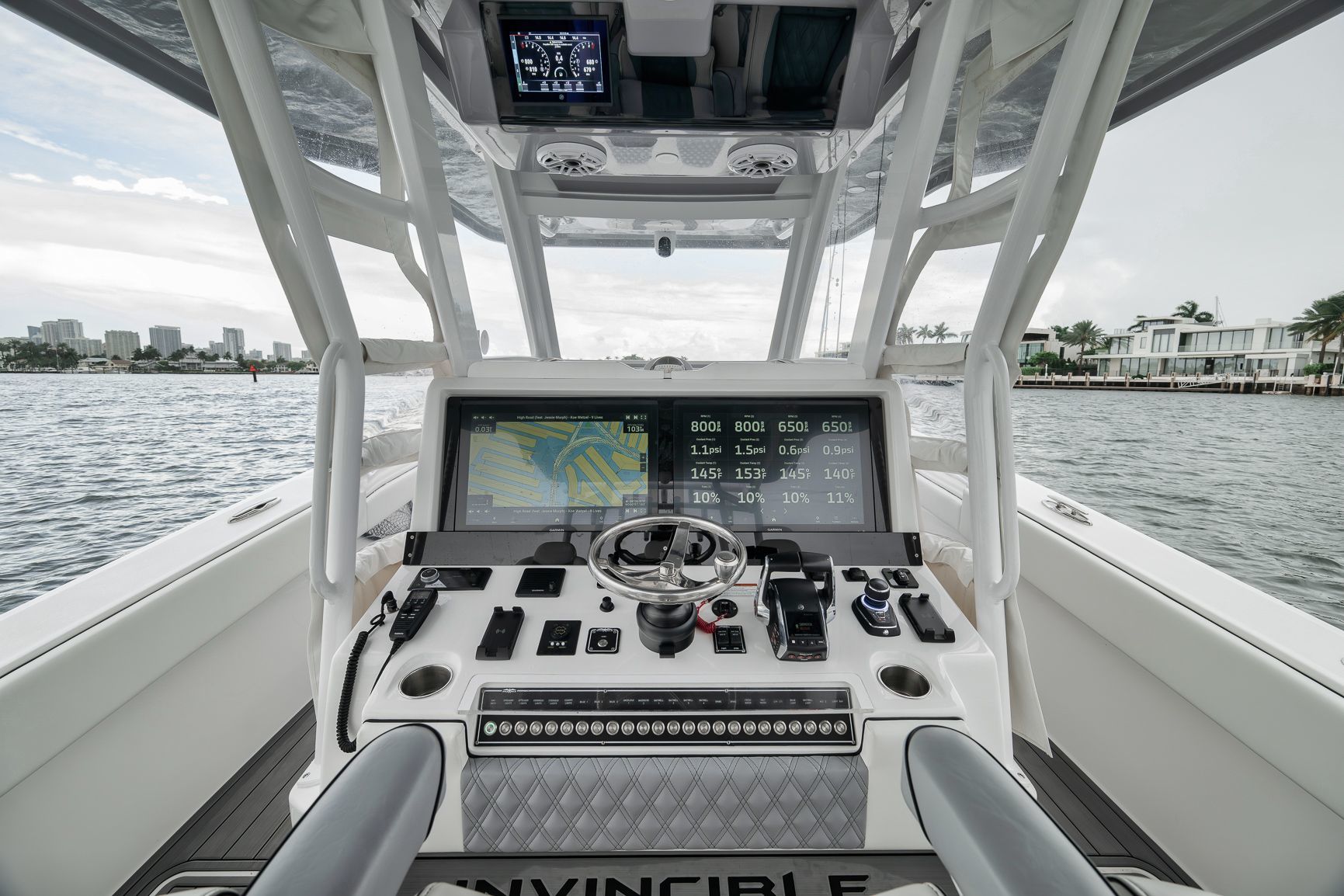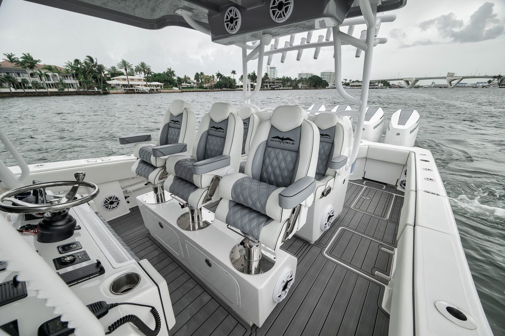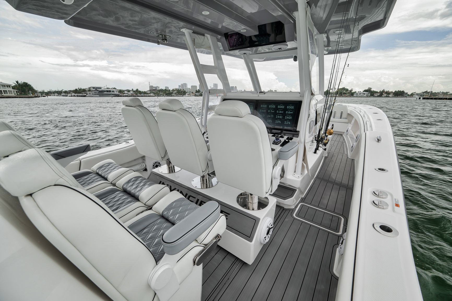2024 Invincible 43 Open - Quad V10 Mercury Engines - Low Hours - Fully LoadedDon't miss this incredible opportunity to own a like-new 2024 Invincible 43 Open with low hours and the highly desirable quad Mercury V10 engine package. This setup delivers a top speed over 70 MPH and excellent fuel efficiency at cruising speeds, ideal for serious anglers and performance enthusiasts alike.This vessel was custom built with every possible Garmin upgrade, including the largest screens available for the console, offering an unmatched navigation and fishing experience.Key Features:Quad Mercury V10 engines (WOT 70+ MPH)24" Garmin MFDsFully loaded Garmin electronics packageMercury JPO Joystick and Bow thrusterPremium sound system (JL Audio with Fusion Head Unit)Full SeadeckUpgraded Bow and transom seating with Release Marine helm chairsHelm AirMeticulously maintained and stored indoors since deliveryThis 43 Open has been rack stored inside a hurricane-rated building in Fort Lauderdale since new and shows like it just left the factory.Contact us today to schedule a private showing.