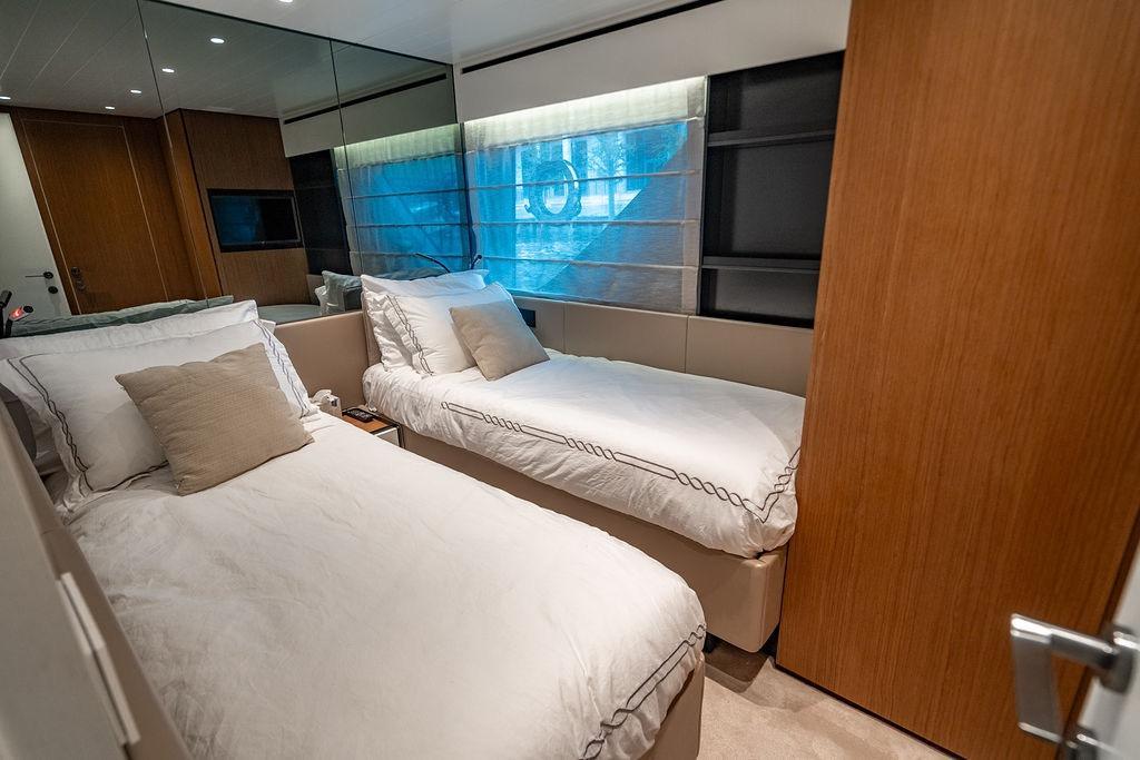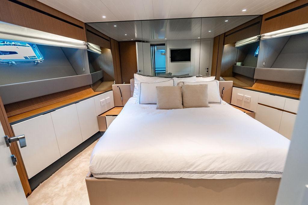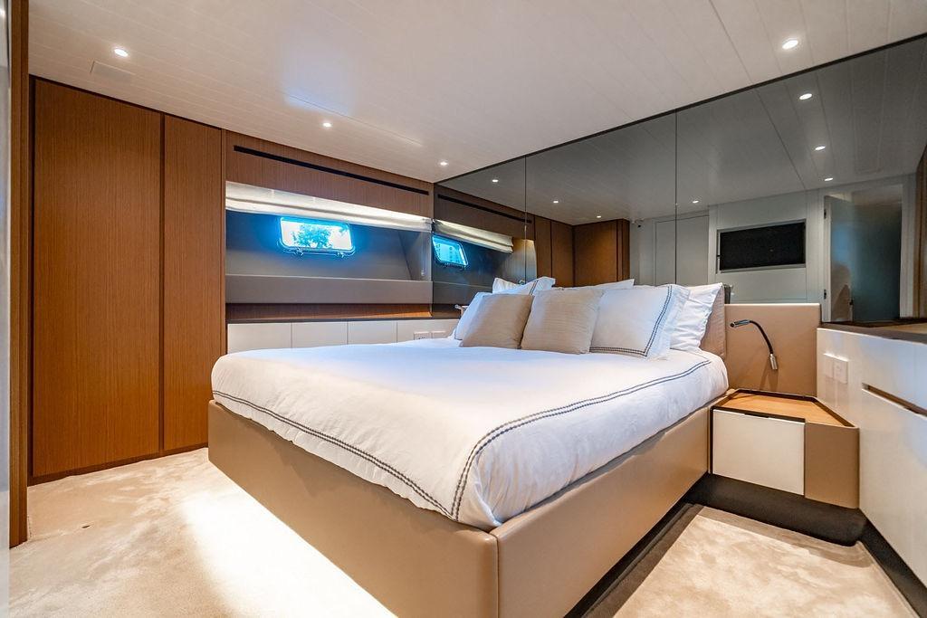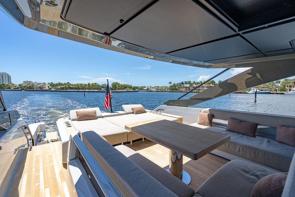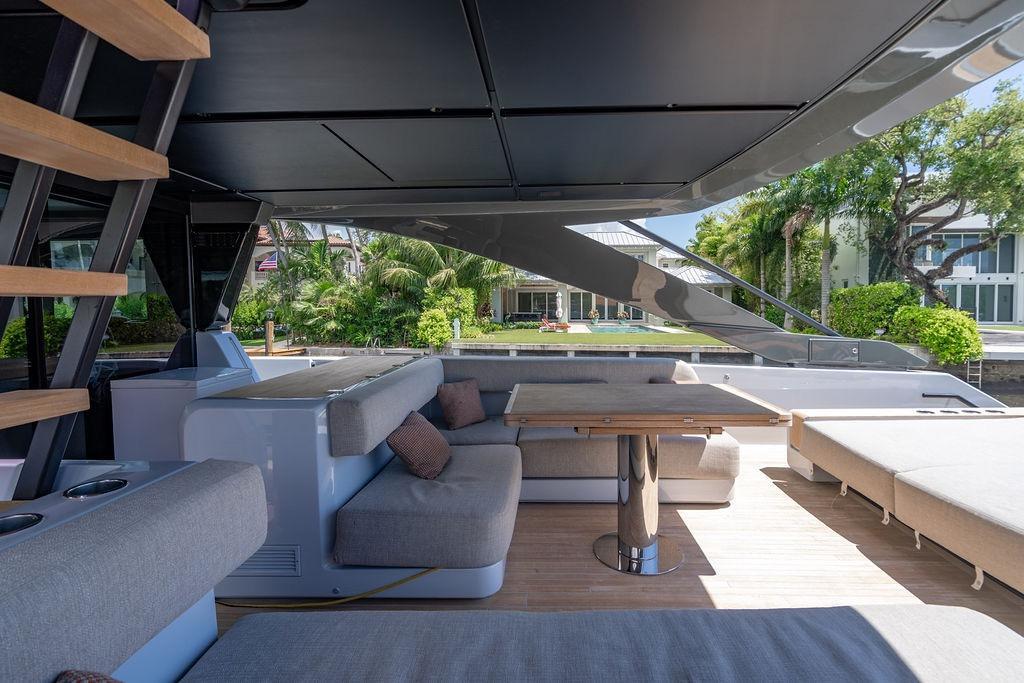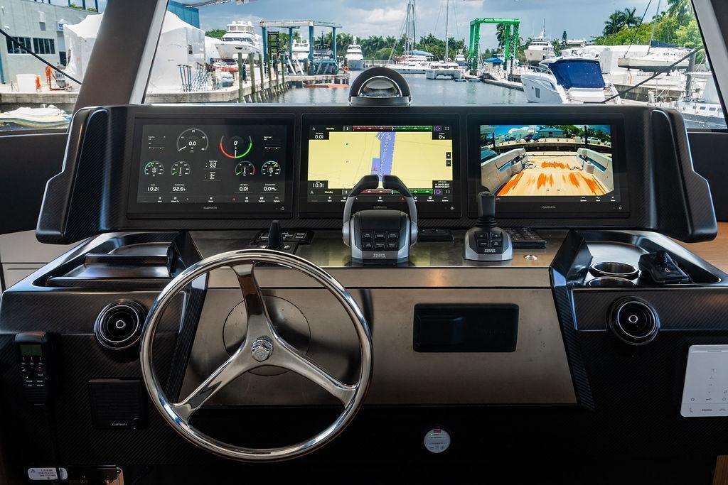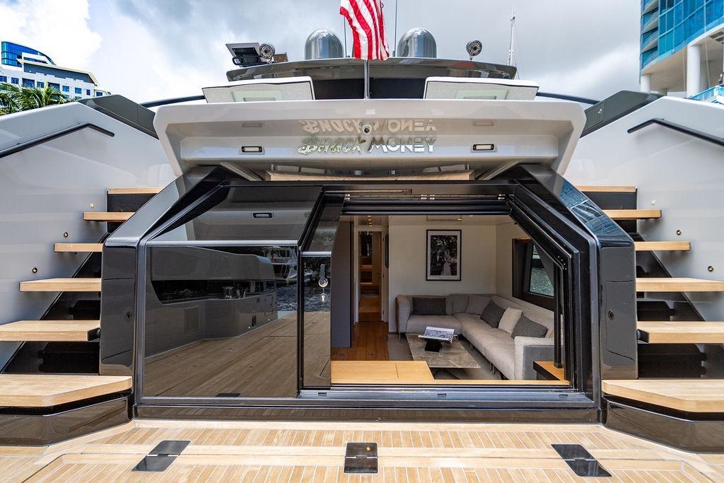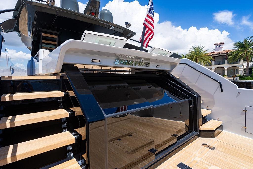 Where to begin describing this yacht. Bluegame hit a homerun in this BG72 — blending design, innovation, and luxury into a whole new category of yacht. Yacht designers Luca Santella, Lou Codego and Zuccon International Project joined forces to create a true crossover yacht — one that seamlessly balances versatility, smart use of space, and refined style. Snack Money is a luxury yacht. She’s a luxury day boat (Seabobs included). She’s a luxury dive boat (Hookah included). She’s even a sportfish (Release Marine fighting chair included). Favorite Things About This Yacht:Feels bigger than she isOpen aft cockpit with hydraulic swim platform for all the water play (and a Release Fighting Chair)Two Seabobs and Hookah Dive SystemDoors into saloon open for aft beach clubThree more big, beautiful deck spaces (with a great bow lounge)Easy maneuvering, fuel efficient Volvo IPS 1350 drives with Dockmate wireless controllerHigh freeboard for great seakeepingBrand new paint Approaching Snack Money at the dock, you’re presented with a yacht that shows much larger than her 72’ designation. Loaded with just about everything on the order sheet, she has an additional $300,000 in extras (listed below). Notable upgrades include:Seahub Vessel Maintenance ProgramStarlink Mount & Communication SystemHookah SystemTwo Seabobs Watermaker Searecovery 900Bow Coolers w/ RacksIce ChipperCanvas Covers for Sunpad/ LouversMarquipt GangwayDitec Glass, & Teak CoatingTocaro Blue Security SystemUpgrade Audio SystemDock Mate Wireless ControllerUltra Sonic AntiFouling SystemFender HooksTow BridleHubbell Smart Y AdapterWindow TintingExtended Gold Warranty for SeakeeperSirius XM Platinum/ WeatherProp Speed Swim PlatformVolvo Q2 PropellersRelease Marine Fighter Chair The aft cockpit is massive and open to the extended hydraulic swim platform giving space with a direct view and connection to the water. The hydraulic crane makes launching toys easy. Up the stairs to the upper cockpit, there are sunlounges and two large sofas around a massive teak table. The wet bar has fridge and icemaker. Wide side decks offer safe and easy passage to the forward bow lounge; an entire living space on the bow. All these spaces have easy to erect sunshades. The stairs in the upper cockpit leads to a sunlounge on the roof for a more private place to relax.Directly off the aft cockpit are tri-opening doors leading into the full beam saloon. The Italian styling is inviting and comfortable. The doors can be opened creating an alfresco-style living room. Large hullside windows and glass doors keeps this feeling open, airy, and bright. Forward, the galley is stylish and practical, while farther ahead, you’ll find three staterooms, each with its own ensuite bath.The elevated pilothouse is all business with glass all around. The cockpit is well laid out. Her upgraded Volvo IPS 1350’s have ample power with a top speed of 30 knots and IPS fuel efficient. Joystick maneuverability and Dockmate wireless docking controller and wing station gives the captain versatility and visibility for all maneuvering.