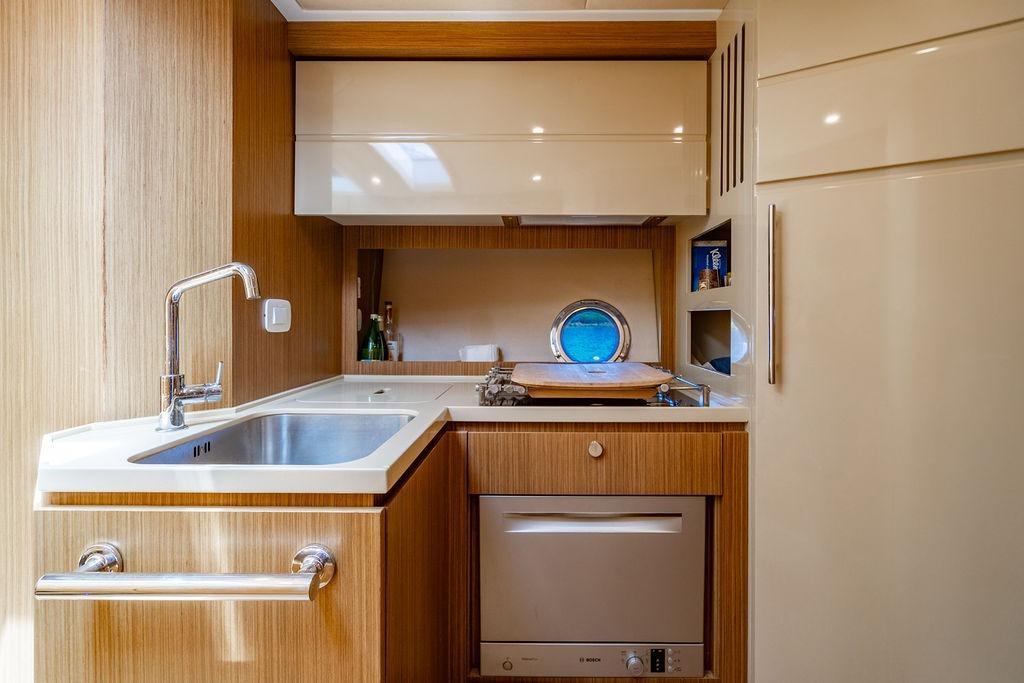 The Salon is divided by the upgraded sliding doors which keep the salon cool and dry, however when weather permits they can be opened to join the cockpit seating.