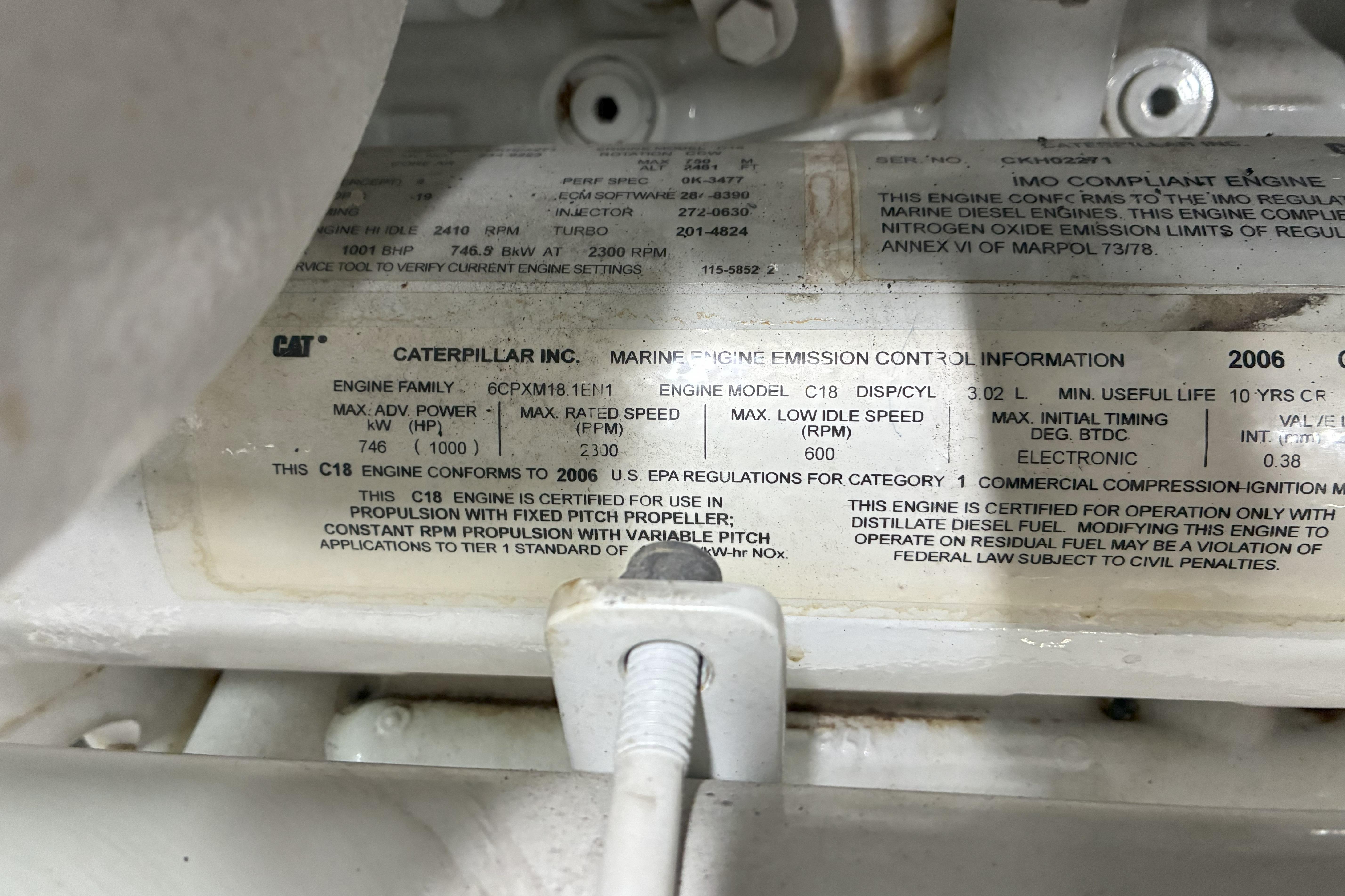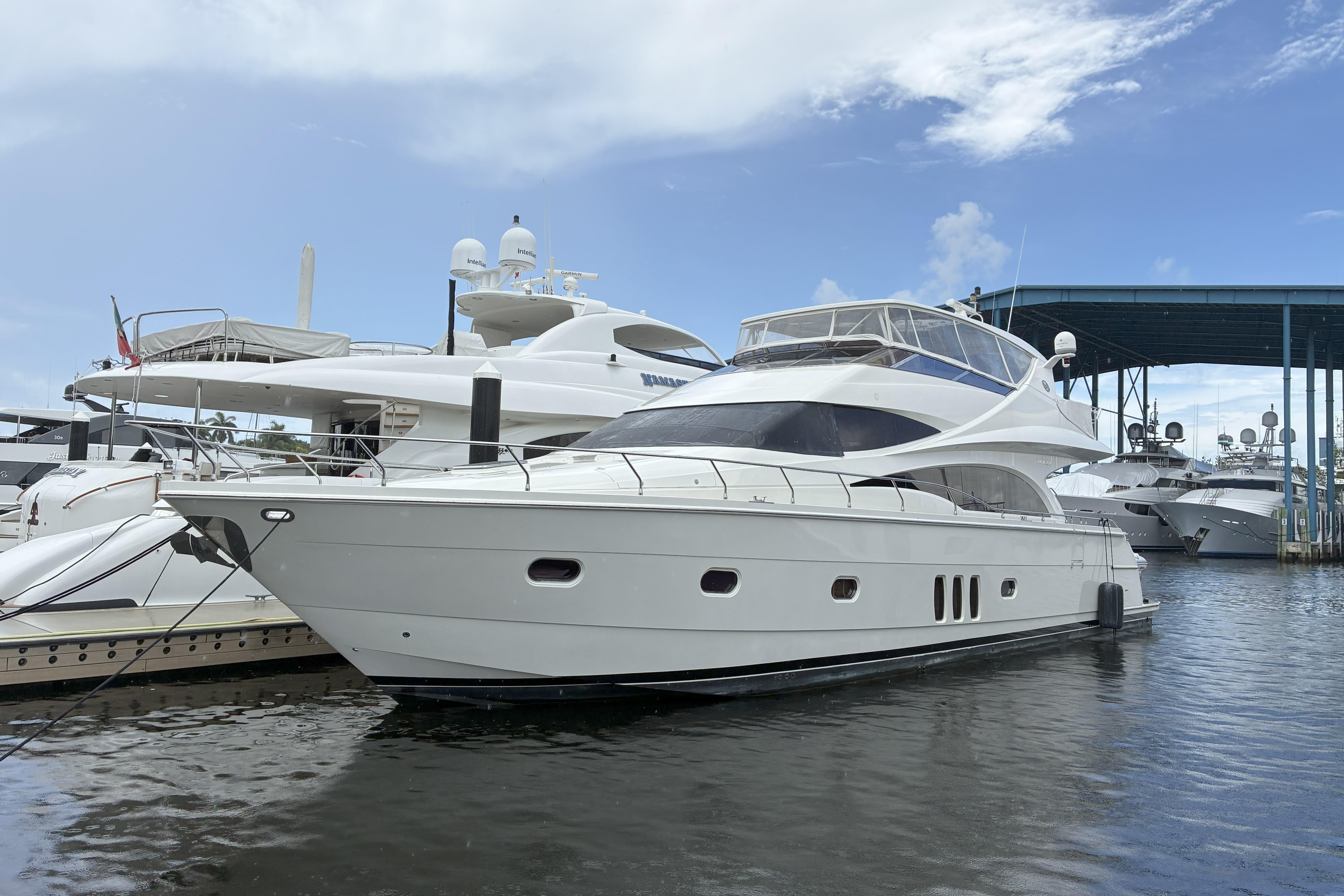 2009 Marquis 690 – Exceptional Condition – Sleek Italian Style Meets American CraftsmanshipThe Marquis 690 blends unmistakable Italian-inspired styling with the robust build quality and craftsmanship of American shipyards, delivering a yacht that turns heads in every harbor. First launched in 2005, the Marquis 65 stood out among luxury motor yachts for its sleek lines, refined presence, and an interior that feels as open as the ocean it commands.From the stern, your view sweeps forward through the salon, formal dining area, gourmet galley, and pilothouse, all the way to the seascape ahead—thanks to expansive side windows that fill the main deck with natural light. The salon’s plush furnishings and high-gloss woodwork set the tone for relaxed luxury. Forward, the oval dining table comfortably seats six, while the home-size galley features granite counters, granite flooring, premium appliances, and abundant storage.Below, three elegant staterooms with ensuite heads provide exceptional comfort for owners and guests. The full-beam amidships master boasts a king-size berth, walk-in closet, and a beautifully appointed private head with large shower—an indulgent retreat at sea. Aft, two-person crew quarters are accessed from the transom for optimal privacy.On deck, the flybridge is an entertainer’s dream with generous seating, a bar, grill, and room to relax under the open sky. The hydraulic swim platform, bow and stern thrusters, and a spacious, stand-up engine room make this yacht as functional as it is beautiful. Unlike many European designs, the Marquis 65 offers remarkable access to her machinery, simplifying maintenance without compromising style.Powered by twin Caterpillar C-18 diesels (1001 hp each), she delivers confident performance, smooth handling, and a cruising experience that’s as thrilling as it is comfortable.Key Features:Timeless Italian-inspired exterior designExpansive salon with panoramic viewsFormal dining for six + gourmet granite galleyFull-beam master with king berth, walk-in closet, and private headVIP and guest staterooms each with private ensuiteCrew quarters with private accessHydraulic swim platformBow and stern thrustersSpacious stand-up engine roomTwin Caterpillar C-18 diesels, 1001 hp eachThis 2009 Marquis 65 has been meticulously maintained and presents in exceptional condition. She is turnkey and ready for her next owner to enjoy a season of luxury cruising.