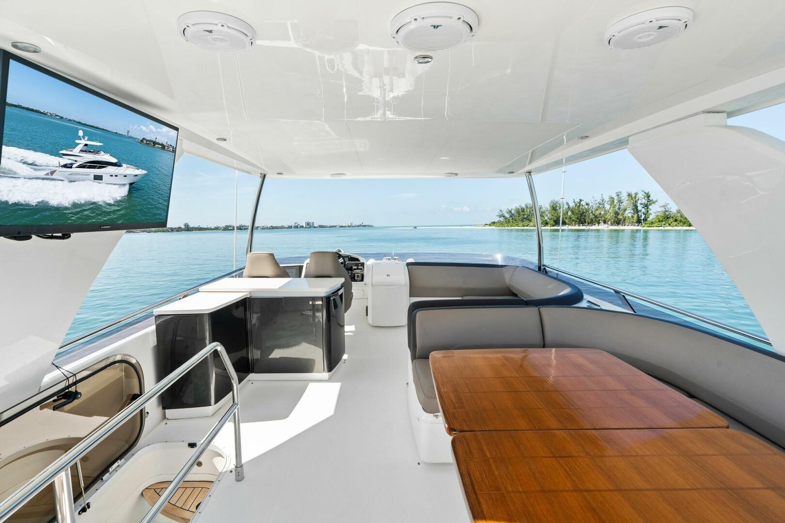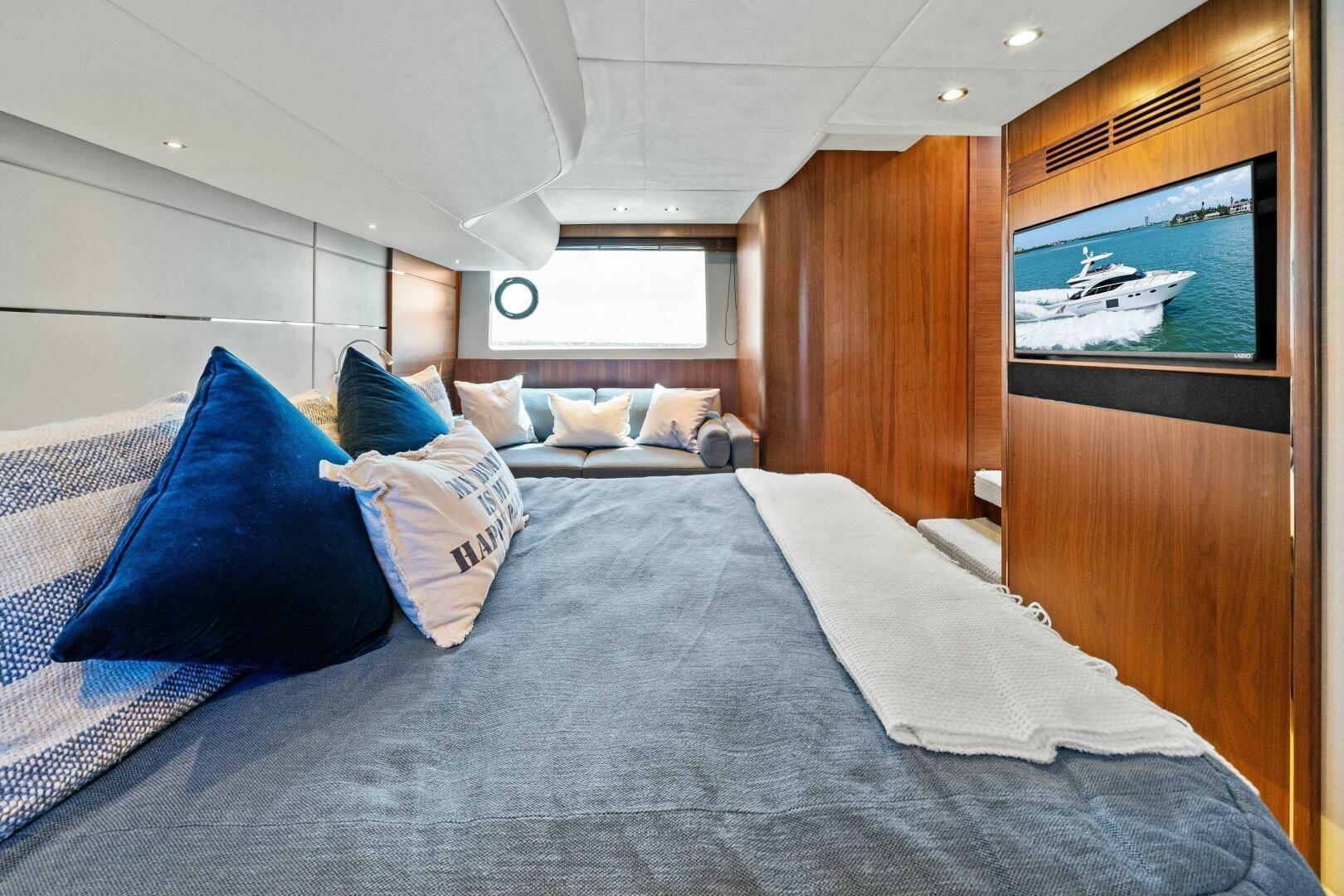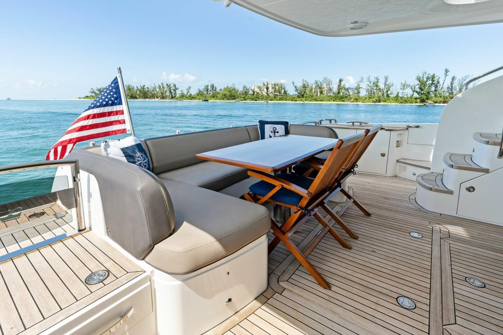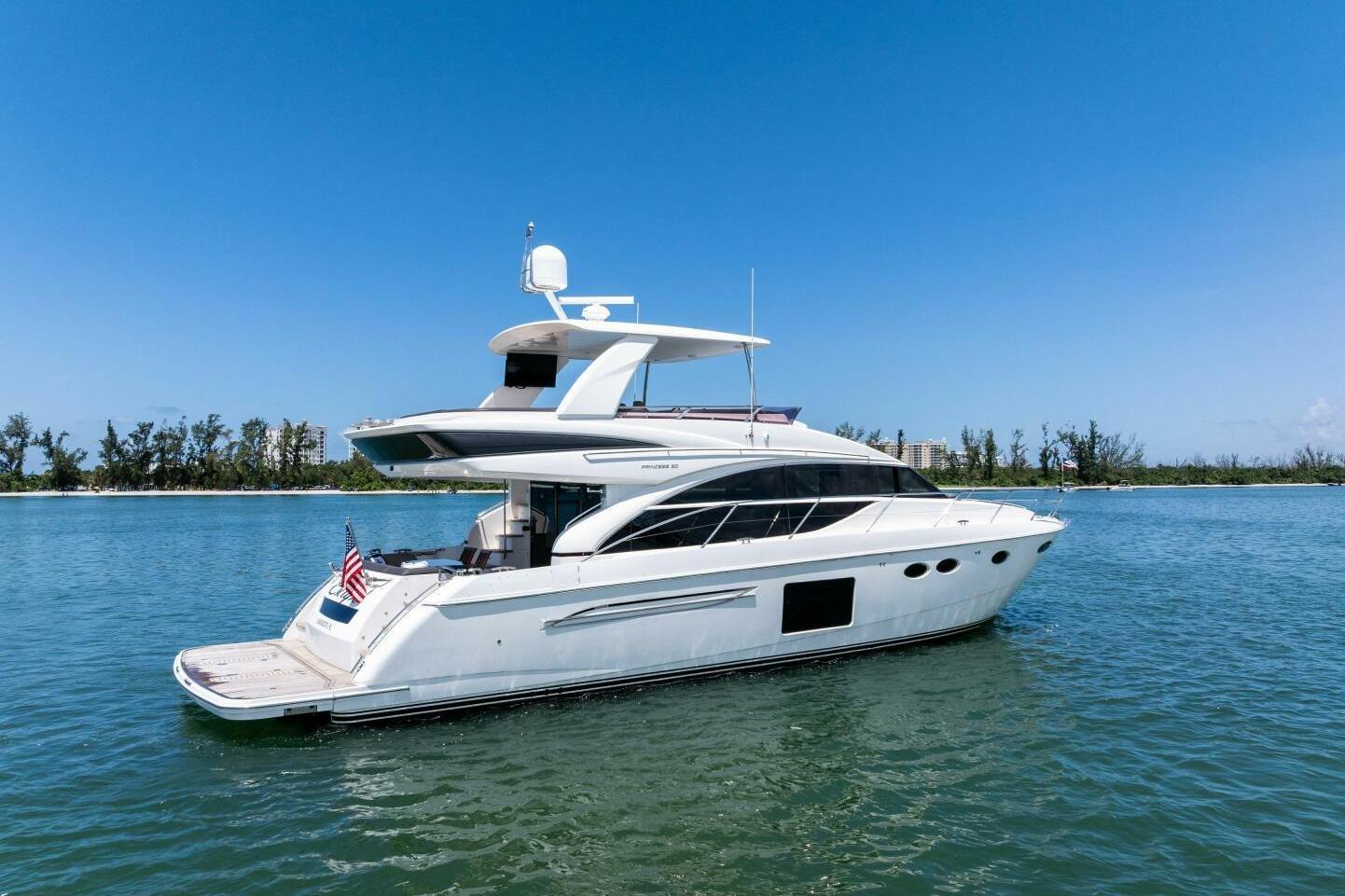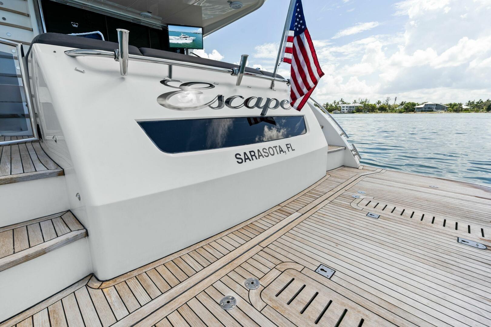 Step aboard ESCAPE, a beautifully crafted 2015 Princess F60 designed for luxury cruising and entertaining. Featuring a three-stateroom, three-head layout, ESCAPE offers a spacious salon with a pop-up TV, refrigerator, and freezer, along with a fully equipped galley and U-shaped dinette. Below deck, the full-beam master midship, forward VIP, and twin guest stateroom provide comfortable accommodations, each with its own head and full-size shower. With elegant finishes, abundant storage, and the signature performance of Princess Yachts, ESCAPE 2015 Princess F60 is your perfect getaway on the water.