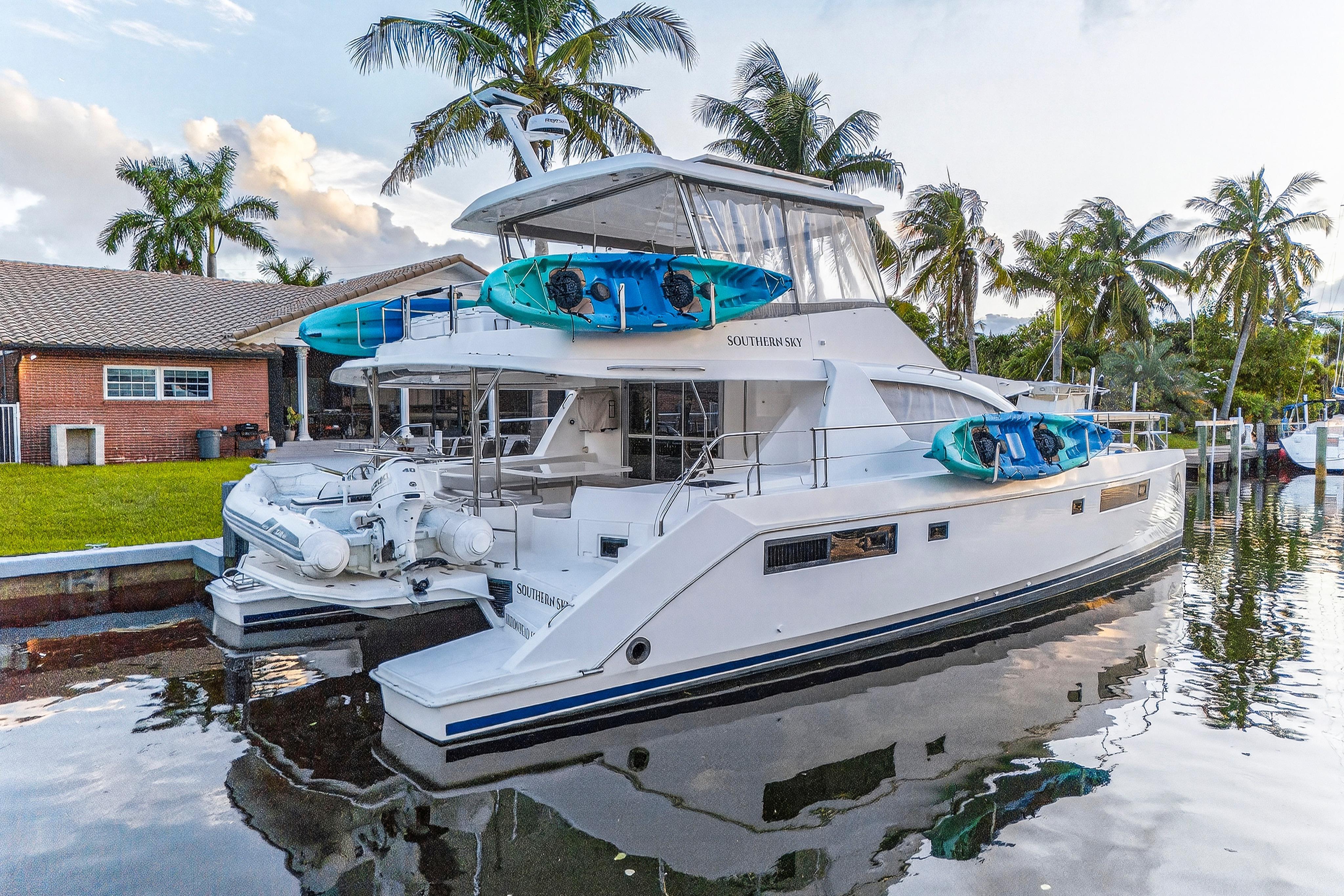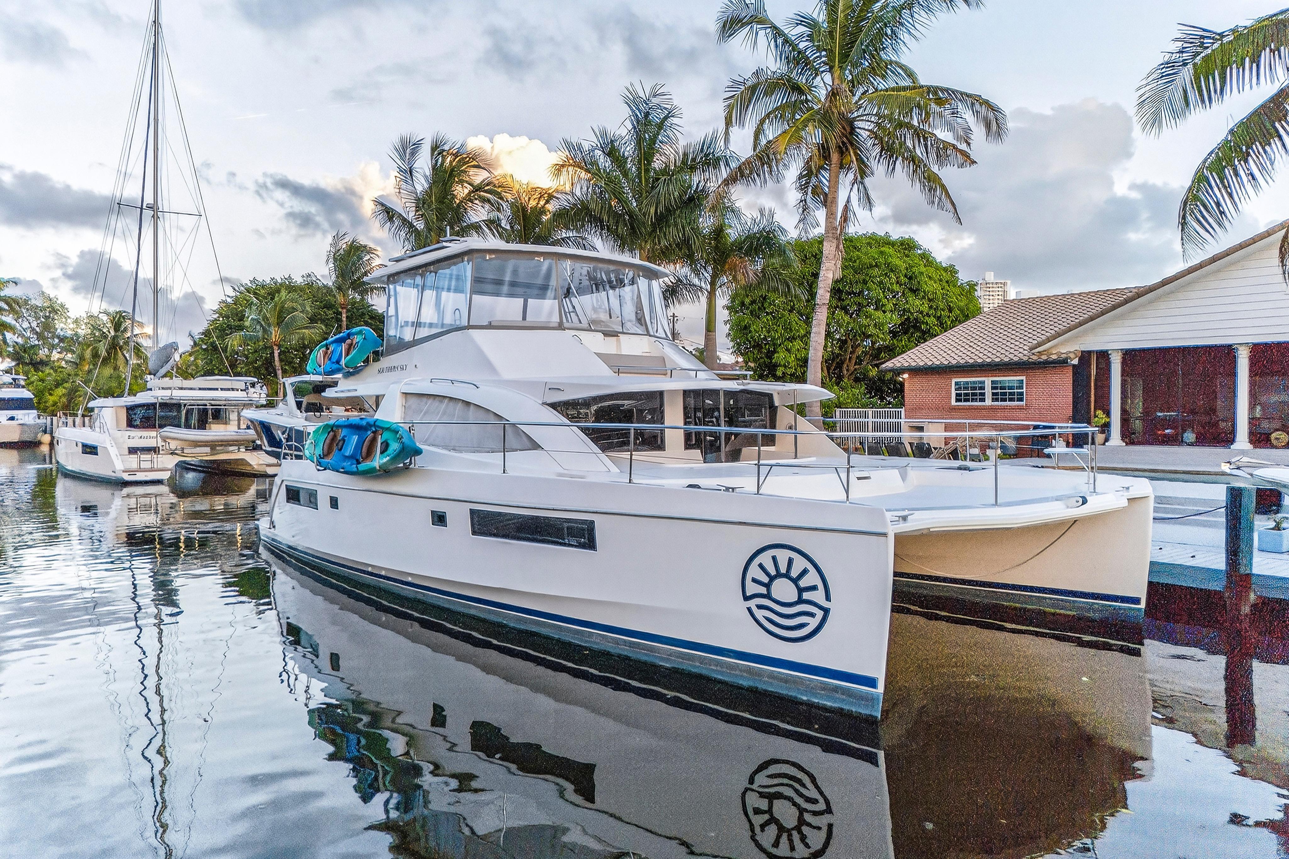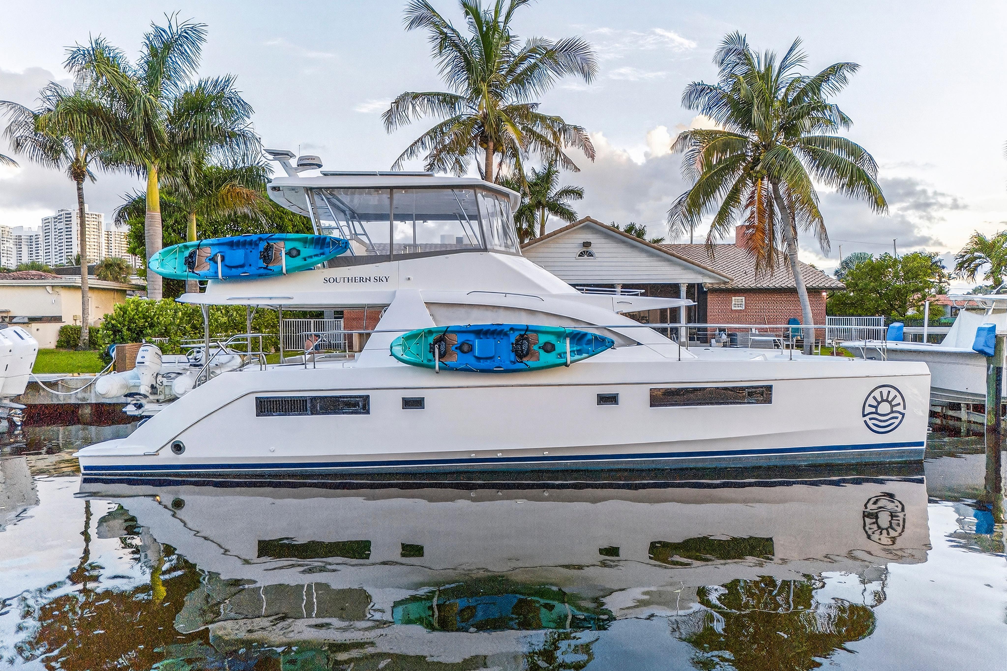 Southern Sky is a 2018 Leopard 51 Power Catamaran that offers the perfect balance of performance, luxury, and efficiency, making it an exceptional choice for charter, cruising, or liveaboard adventures. Powered by twin diesel engines, it delivers impressive fuel economy and a smooth ride, even in open water. The spacious layout includes four comfortable cabins with en-suite heads, a modern galley, and a bright, open salon with panoramic windows. The expansive flybridge features ample seating, a wet bar, and a helm station with excellent visibility, making it ideal for entertaining or relaxing underway. With its solid build, sleek design, and proven cruising capabilities, this Leopard 51PC is turn-key and ready for your next voyage.Accommodations4 cabins with ensuite washroomsMechanical EquipmentYanmar 8LV 350Paguro 9KW Generator with full sound enclosure. Engines completed full 1,000 hour service in January 2024 by Just Catamarans: New turbos, service heat exchangers, intercoolers, raw water pumps , risers, turbo lagging and more. (20K+). Serviced by crew since then. Galley EquipmentVitrfrigo 210 double drawer refrigerator (new 2024)3.5 cubic foot Chest freezer in starboard lazarette (new 2024)Dual Zone refrigerated cooler in port lazarette.(new 2024)2-burner induction stove top. (new 2024)Single Stainless steel deep sink. (new 2024)Electric oven with air fryer. (new 2024)Vitrifrigo 80 refrigerator on flybridge (ex-charter).Microwave (ex-charter)Flybridge galley with sink, refrigerator. (new 2024)Deck and Hull Equipment6+ Fenders. (new 2024)Misc. docklines. (new 2024)Ultra 45 stainless steel anchor. (new 2024)Approx 50 meters galvanized 10 mm chain (ex charter)5 Oceans 1500 watt windlass – motor and deck (11/24)Spare anchor/chain (ex charter).Navigation SystemsComplete Fusion / JL audio 4 zone system with Apollo head unit and 3 remotes, 3 amps, 2 subs. JL M7 speakers. (new 2024)Starlink High performance flat panel. (new 2024)Aegian Wi-Fi extender with router and switch. (new 2024)RayMarine Axiom Pro2 S. (new 2024) All electronics installed by MPI. RayMarine Quantum 2 Doppler. (new 2024)RayMarine sounder with down / chirp / side. (new 2024) RayMarine AIS700. (new 2024)RayMarine I70 depth, speedRayMarine P70s with EV1/ACU400 AutopilotRayMarine R63 VHF with new cable and antenna (11/2024)4 X 22” LCD TVs in cabins. (new 2024)32” TV in main salon. (new 2024)43” Full Sun LCD TV in cockpit. (new 2024)Additional EquipmentExterior cushions. (new 2024)Flybridge isinglass. (new 2024)Flybridge bar top, sink etc. (rebuilt 2024). All tap fixtures (except for shower mixers) (new 2024)All black water hoses. (new 2024) Raritan Elegance heads with freshwater flush. (new 2024)Custom mattresses. (new 2024)Dockmate Twist remote control – engine and horn only. (new 2024)Sea-water pro Piranha 30 GPH water maker (produces 25 GPH). (new 2024)3 X 16,000 BTU Velair variable speed air conditioners with heat. (new 2024)12 X SeaBlaze Quattro underwater lights. (new 2024) - 1 scheduled to be replaced in 8/18/25 2 X aft flood lights. (new 2024) Custom aft cockpit bar. (new 2024)Fresh water deck washdown at anchor locker. (new 2024)4 pax liferaft with valise. (new 2023)Smoke / COFire extinguishers (10/24)Throwable PFD with lineACR Global Fix EPIRB. (new 2023)2 X inflatable PFD’s (new 2023)12 X type II PFD’s. (new 2024)Visual Distress Signals etc. (new 2023)Misc. equipment and first aid etc. (new 2023)Courtesy Flags etc.6 X 460 AH Epoch Lithium batteries: 2760 AH (35kwh) total with Bluetooth, upgraded bus bars etc. Currently at 120+/- cycles. (new 2024)4 X 475 watt solar with 2 X Victron 250/70 charge controllers. (new 2024) - produces in excess of 10kwh daily. Victron Quattro 12/5000/220 Inverter / charger. (new 2024) (runs all 3 air conditioners). All electrical installed by Just Catamarans. Victron Cytrix combiner for generator battery maintenance. (new 2024)4 X Lifeline GRP24T start batteries (09/2024)1 X Generator start battery (02/2024).Victron Cerbo with Touch 50. (new 2024) Upgraded to 120/250 50 amp shore power with smart cable. 2nd 50 amp shore power cord and splitter. (new 2024)Added 10 X 120 VAC outlets throughout the boat. (new 2024)Paguro 9,000-watt generator 2023 Zar Mini Lux 13 with Suzuki 40 HP with hydraulic steering - heavy use however mechanically sound. 3 X 2 pax kayaks. (new 2024) 3 X inflatable SUPS. (new 2024)Inflatable Slide. (new 2024) Misc. floats etc.Complete furnished galley equipment including pots, pan, service for 12+, blenders, coffee and espresso machines, Insta Pot etc. (new 2024)Complete bedding and towels. (new 2024 - 1 season). Tender tow bridle and line. (new 2024)Spares including a Victron Quattro, head parts etc.Air pumps and misc. floating mats etc.Snorkel gear for 10+ people (new 2024 - 1 season)Misc. toolsPressure washerBean bags and lounge chairs for front deck. (new 2024)Sunshade for front deck. (new 2024)Full set of docklines and fenders (inflatable and standard) (new 2024)2 X Rtic 140 Qt coolers2 X Rtic Beveridge coolers.Full-size LPG grill (new 2025 however well used).