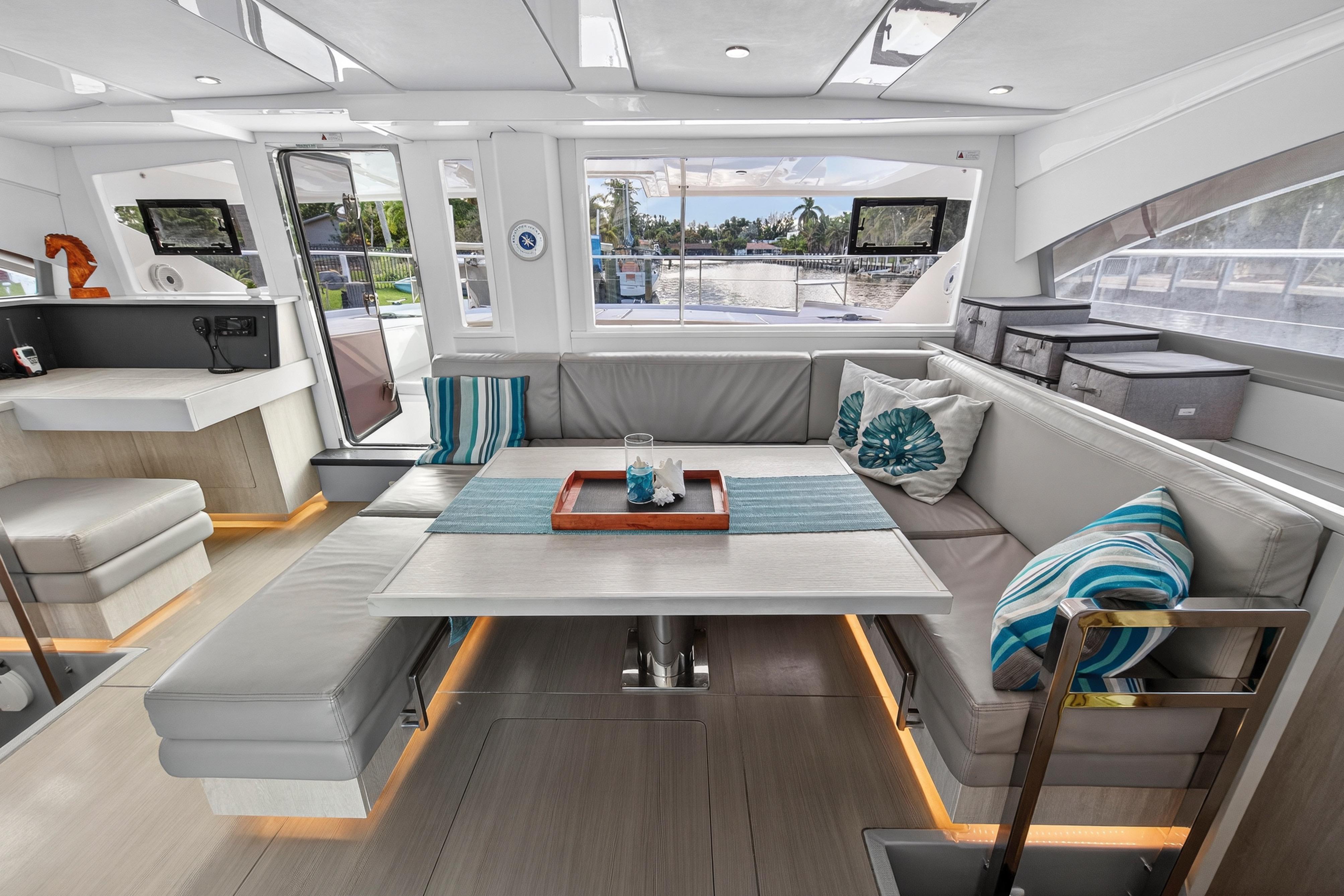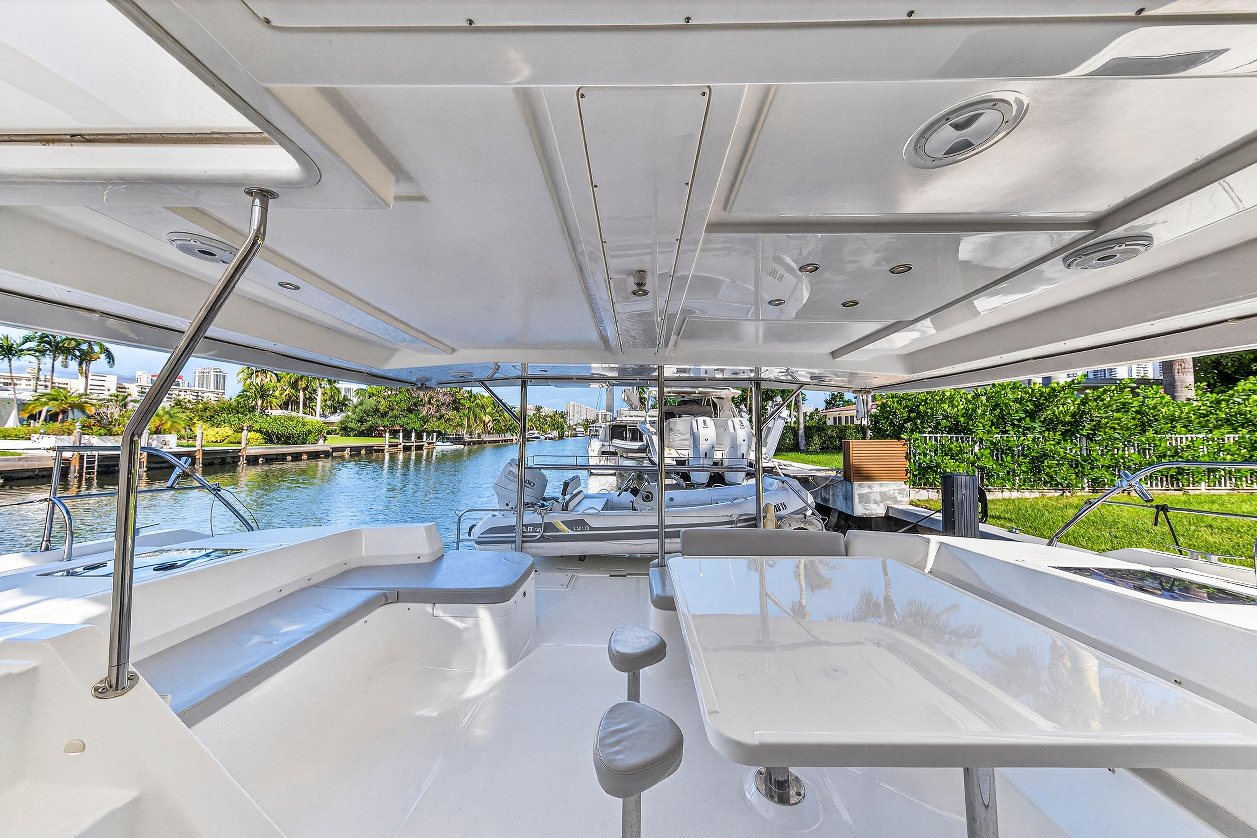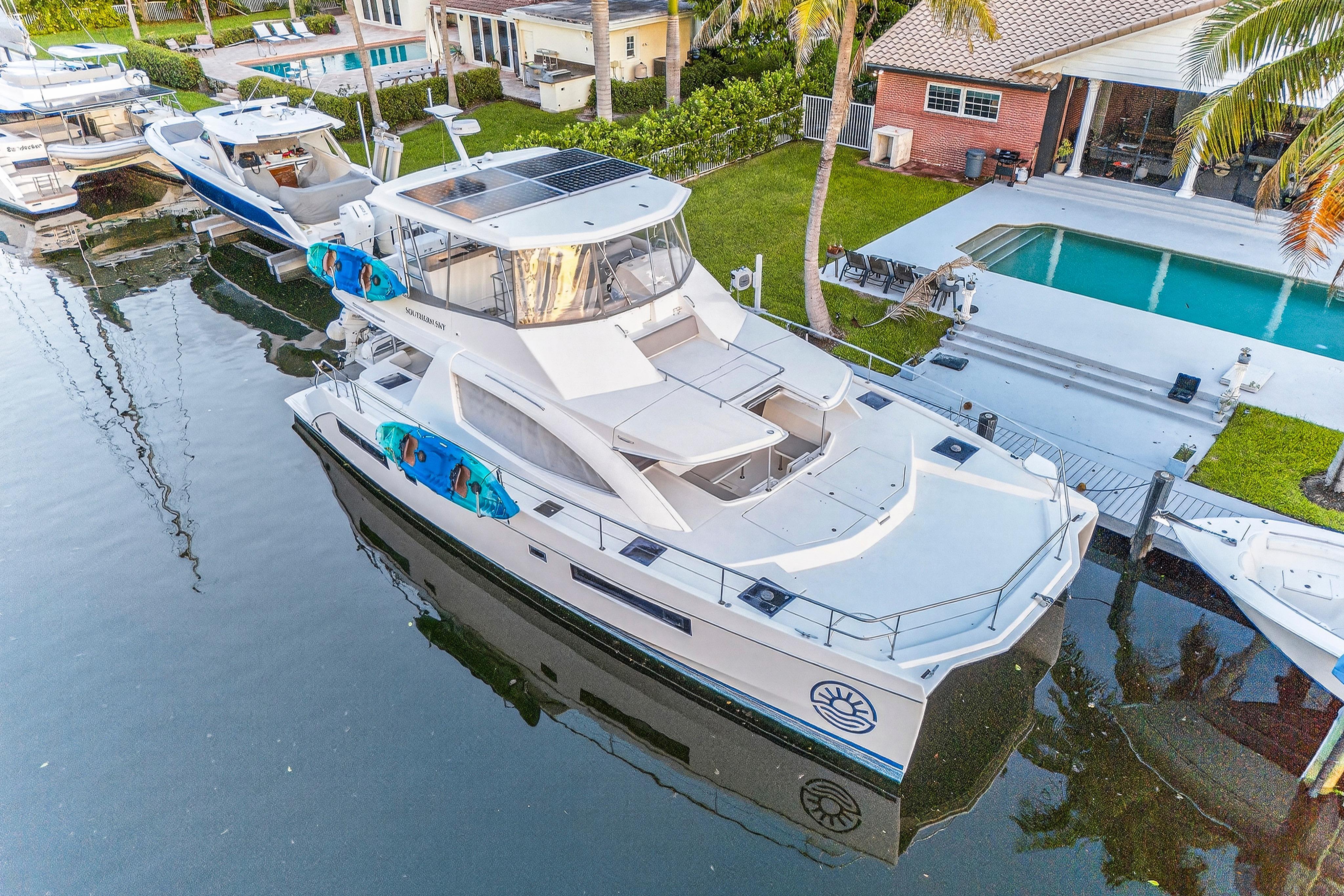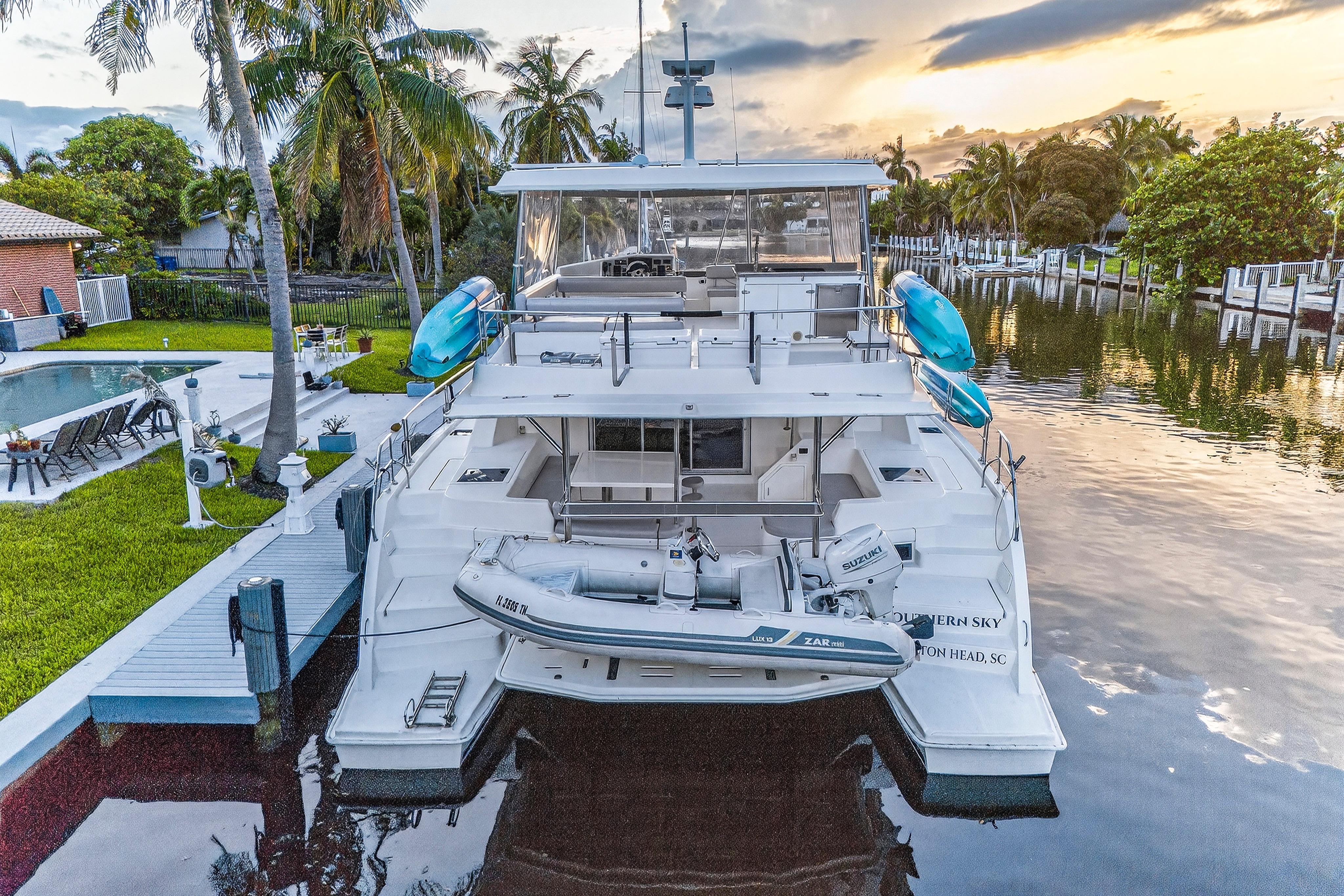 Southern Sky is a 2018 Leopard 51 Power Catamaran that offers the perfect balance of performance, luxury, and efficiency, making it an exceptional choice for charter, cruising, or liveaboard adventures. Powered by twin diesel engines, it delivers impressive fuel economy and a smooth ride, even in open water. The spacious layout includes four comfortable cabins with en-suite heads, a modern galley, and a bright, open salon with panoramic windows. The expansive flybridge features ample seating, a wet bar, and a helm station with excellent visibility, making it ideal for entertaining or relaxing underway. With its solid build, sleek design, and proven cruising capabilities, this Leopard 51PC is turn-key and ready for your next voyage.Accommodations4 cabins with ensuite washroomsMechanical EquipmentYanmar 8LV 350Paguro 9KW Generator with full sound enclosure. Engines completed full 1,000 hour service in January 2024 by Just Catamarans: New turbos, service heat exchangers, intercoolers, raw water pumps , risers, turbo lagging and more. (20K+). Serviced by crew since then. Galley EquipmentVitrfrigo 210 double drawer refrigerator (new 2024)3.5 cubic foot Chest freezer in starboard lazarette (new 2024)Dual Zone refrigerated cooler in port lazarette.(new 2024)2-burner induction stove top. (new 2024)Single Stainless steel deep sink. (new 2024)Electric oven with air fryer. (new 2024)Vitrifrigo 80 refrigerator on flybridge (ex-charter).Microwave (ex-charter)Flybridge galley with sink, refrigerator. (new 2024)Deck and Hull Equipment6+ Fenders. (new 2024)Misc. docklines. (new 2024)Ultra 45 stainless steel anchor. (new 2024)Approx 50 meters galvanized 10 mm chain (ex charter)5 Oceans 1500 watt windlass – motor and deck (11/24)Spare anchor/chain (ex charter).Navigation SystemsComplete Fusion / JL audio 4 zone system with Apollo head unit and 3 remotes, 3 amps, 2 subs. JL M7 speakers. (new 2024)Starlink High performance flat panel. (new 2024)Aegian Wi-Fi extender with router and switch. (new 2024)RayMarine Axiom Pro2 S. (new 2024) All electronics installed by MPI. RayMarine Quantum 2 Doppler. (new 2024)RayMarine sounder with down / chirp / side. (new 2024) RayMarine AIS700. (new 2024)RayMarine I70 depth, speedRayMarine P70s with EV1/ACU400 AutopilotRayMarine R63 VHF with new cable and antenna (11/2024)4 X 22” LCD TVs in cabins. (new 2024)32” TV in main salon. (new 2024)43” Full Sun LCD TV in cockpit. (new 2024)Additional EquipmentExterior cushions. (new 2024)Flybridge isinglass. (new 2024)Flybridge bar top, sink etc. (rebuilt 2024). All tap fixtures (except for shower mixers) (new 2024)All black water hoses. (new 2024) Raritan Elegance heads with freshwater flush. (new 2024)Custom mattresses. (new 2024)Dockmate Twist remote control – engine and horn only. (new 2024)Sea-water pro Piranha 30 GPH water maker (produces 25 GPH). (new 2024)3 X 16,000 BTU Velair variable speed air conditioners with heat. (new 2024)12 X SeaBlaze Quattro underwater lights. (new 2024) - 1 scheduled to be replaced in 8/18/25 2 X aft flood lights. (new 2024) Custom aft cockpit bar. (new 2024)Fresh water deck washdown at anchor locker. (new 2024)4 pax liferaft with valise. (new 2023)Smoke / COFire extinguishers (10/24)Throwable PFD with lineACR Global Fix EPIRB. (new 2023)2 X inflatable PFD’s (new 2023)12 X type II PFD’s. (new 2024)Visual Distress Signals etc. (new 2023)Misc. equipment and first aid etc. (new 2023)Courtesy Flags etc.6 X 460 AH Epoch Lithium batteries: 2760 AH (35kwh) total with Bluetooth, upgraded bus bars etc. Currently at 120+/- cycles. (new 2024)4 X 475 watt solar with 2 X Victron 250/70 charge controllers. (new 2024) - produces in excess of 10kwh daily. Victron Quattro 12/5000/220 Inverter / charger. (new 2024) (runs all 3 air conditioners). All electrical installed by Just Catamarans. Victron Cytrix combiner for generator battery maintenance. (new 2024)4 X Lifeline GRP24T start batteries (09/2024)1 X Generator start battery (02/2024).Victron Cerbo with Touch 50. (new 2024) Upgraded to 120/250 50 amp shore power with smart cable. 2nd 50 amp shore power cord and splitter. (new 2024)Added 10 X 120 VAC outlets throughout the boat. (new 2024)Paguro 9,000-watt generator 2023 Zar Mini Lux 13 with Suzuki 40 HP with hydraulic steering - heavy use however mechanically sound. 3 X 2 pax kayaks. (new 2024) 3 X inflatable SUPS. (new 2024)Inflatable Slide. (new 2024) Misc. floats etc.Complete furnished galley equipment including pots, pan, service for 12+, blenders, coffee and espresso machines, Insta Pot etc. (new 2024)Complete bedding and towels. (new 2024 - 1 season). Tender tow bridle and line. (new 2024)Spares including a Victron Quattro, head parts etc.Air pumps and misc. floating mats etc.Snorkel gear for 10+ people (new 2024 - 1 season)Misc. toolsPressure washerBean bags and lounge chairs for front deck. (new 2024)Sunshade for front deck. (new 2024)Full set of docklines and fenders (inflatable and standard) (new 2024)2 X Rtic 140 Qt coolers2 X Rtic Beveridge coolers.Full-size LPG grill (new 2025 however well used).