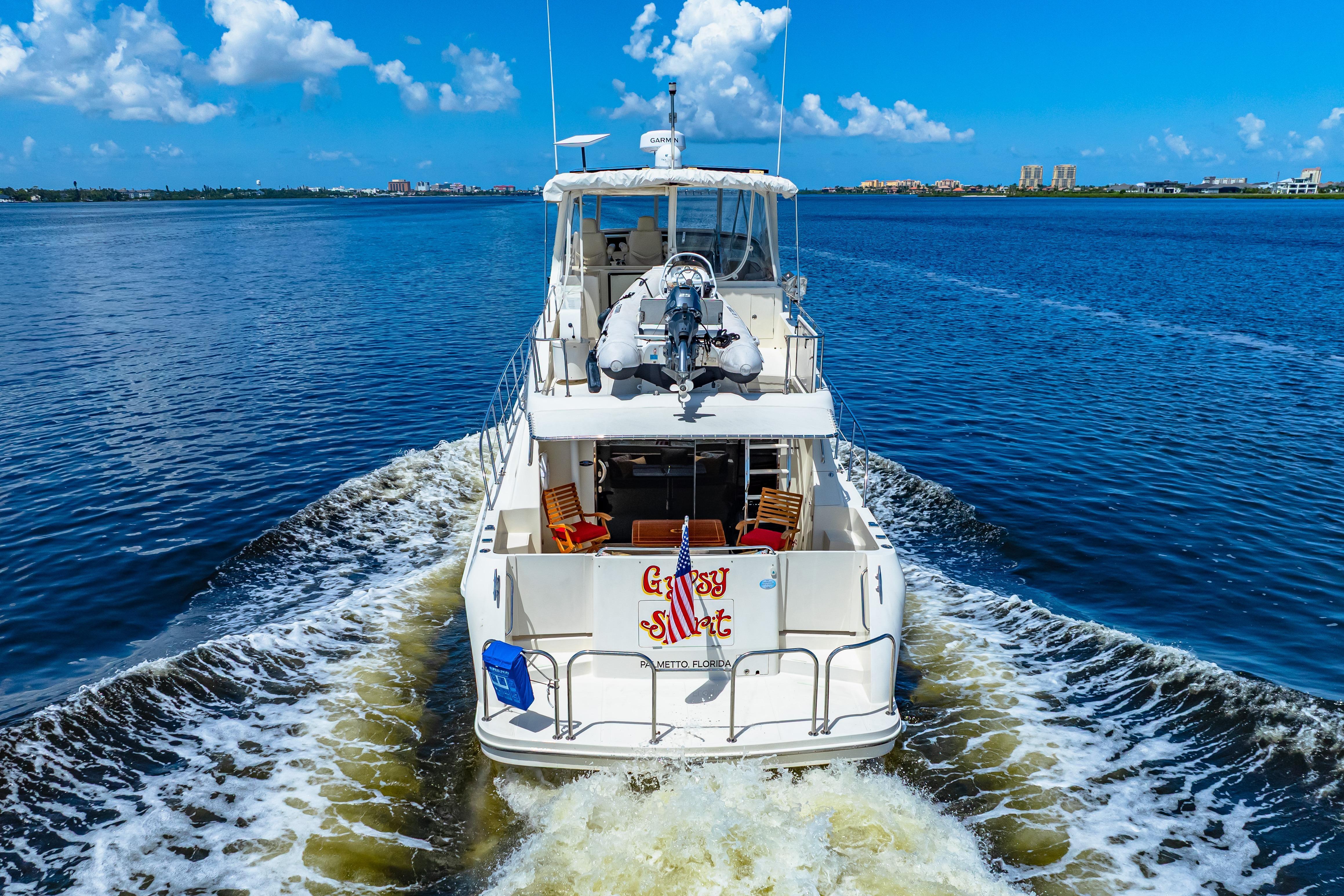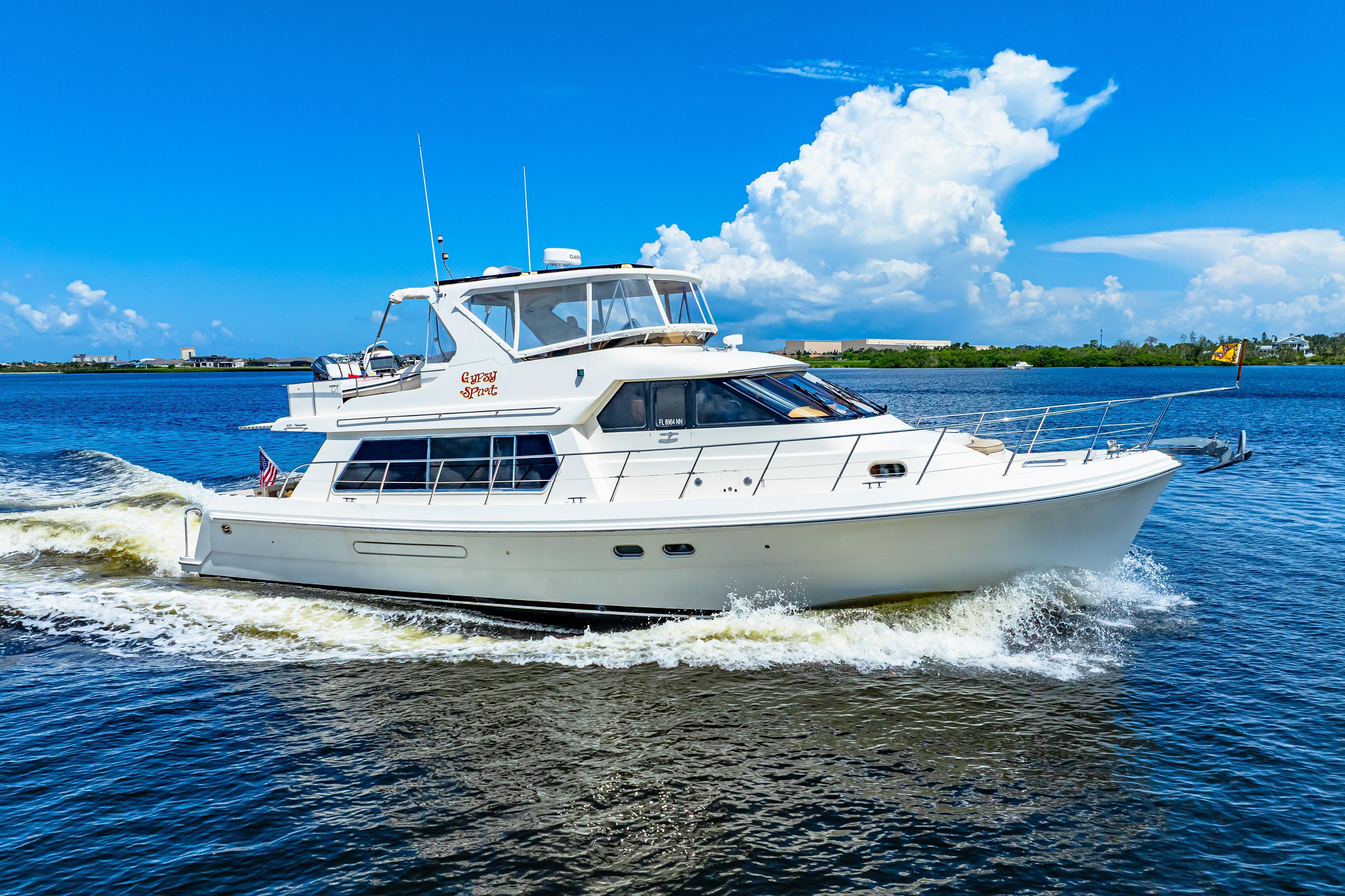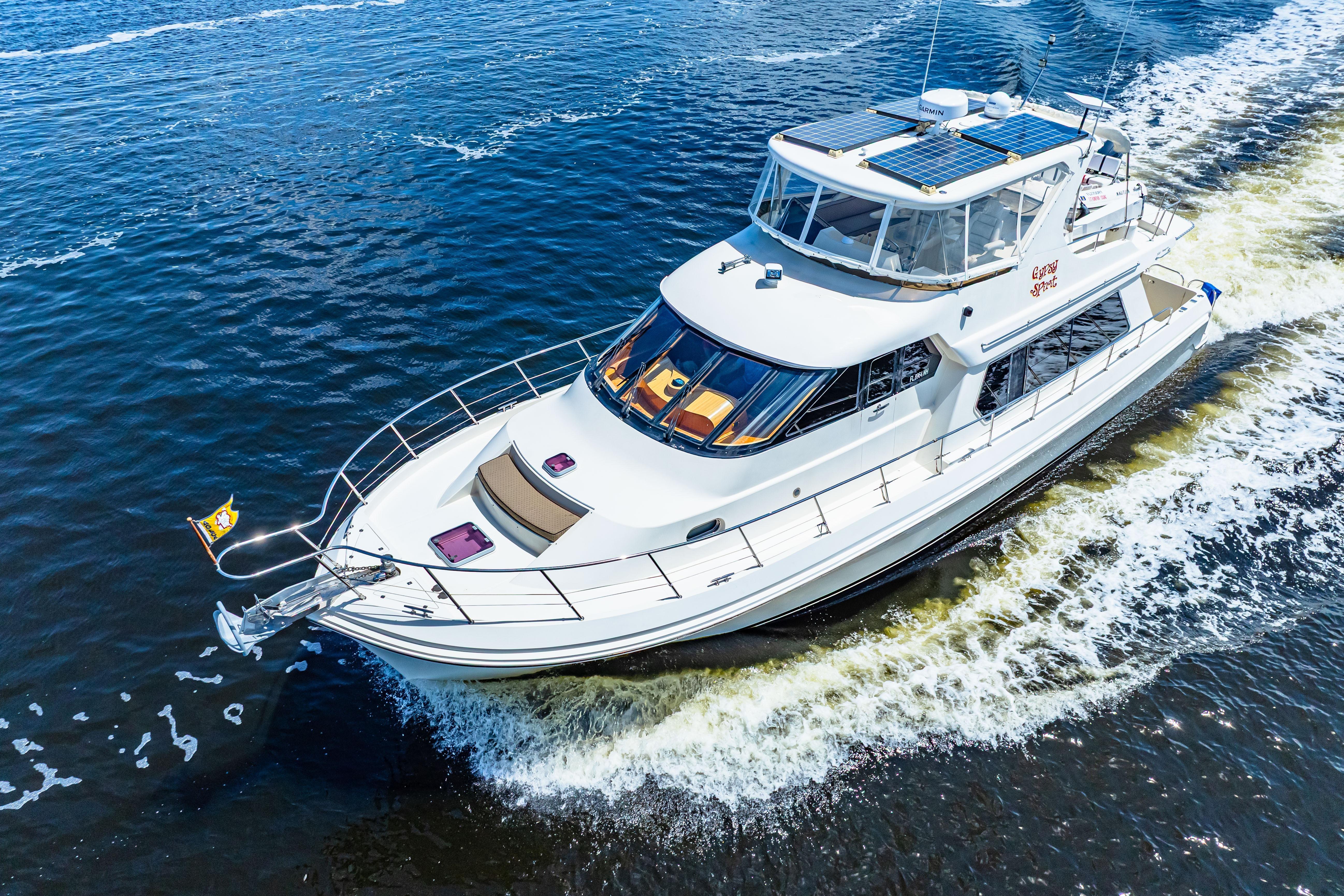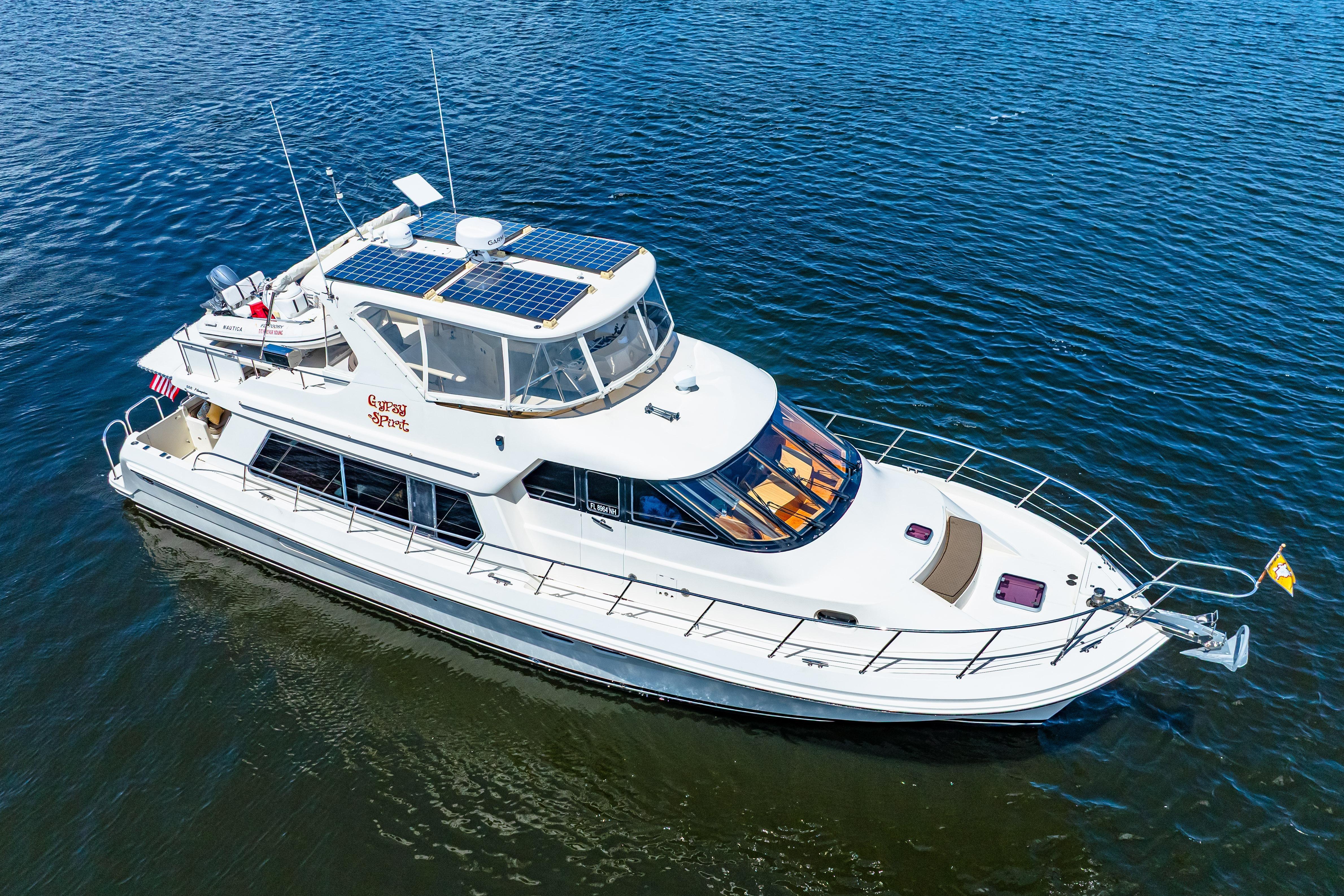 GYPSY SPIRIT is in Fantastic Condition and Ready to Take You to All Your Dream Destinations!Bahamas, Great Loop, or Cruising the Coast Could All Be In Your Future!Beautiful Condition Inside and OutStabilized for Your Cruising Comfort (Wesmar Stabilizers)Twin 500 hp Caterpillar C-9, Recently Serviced w/1950 hours15 KW Kohler Generator in a Sound Shield, Recently Serviced w/1970 hoursNew Garmin Electronics (May 2025)Bow and Stern ThrustersNew Life Line AGM Batteries ( 2024)(2) New Leather Stressless Salon Chairs, New Leather Couch, and New Carpet (2025)New Dishwasher, Clothes Dryer, and Ice-Maker (2025)(4) Solar Panels, Water-Maker, and StarlinkThe Live-A-Board Dock Slip at the Beautiful Riviera Dunes Marina is Transferable to the new owner for Lease or Purchase. Contact the marina directly for details.And So Much MoreClick Below: "Other Details", "Propulsion", and "Specifications" to See All GYPSY SPIRIT Has to Offer