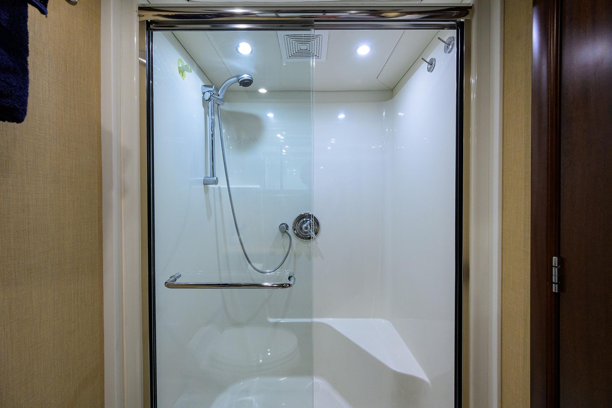 There are three guest staterooms accessed with their own staircase, with two VIP staterooms and one side by side single berths. One VIP is forward with a walkaround queen berth and ensuite head with separate shower stall.