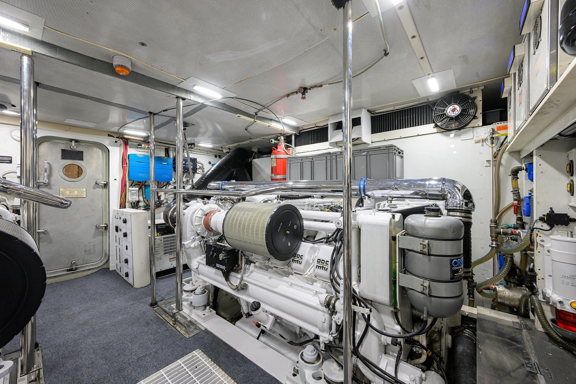 The entire yacht's interior joinery woodwork is finished in a high quality standard done in elegant Mahogany, this goes through all the levels of the yacht. Much effort was also put into the sound and vibration-attenuating throughtout the yacht on every level as well as most bulkheads.