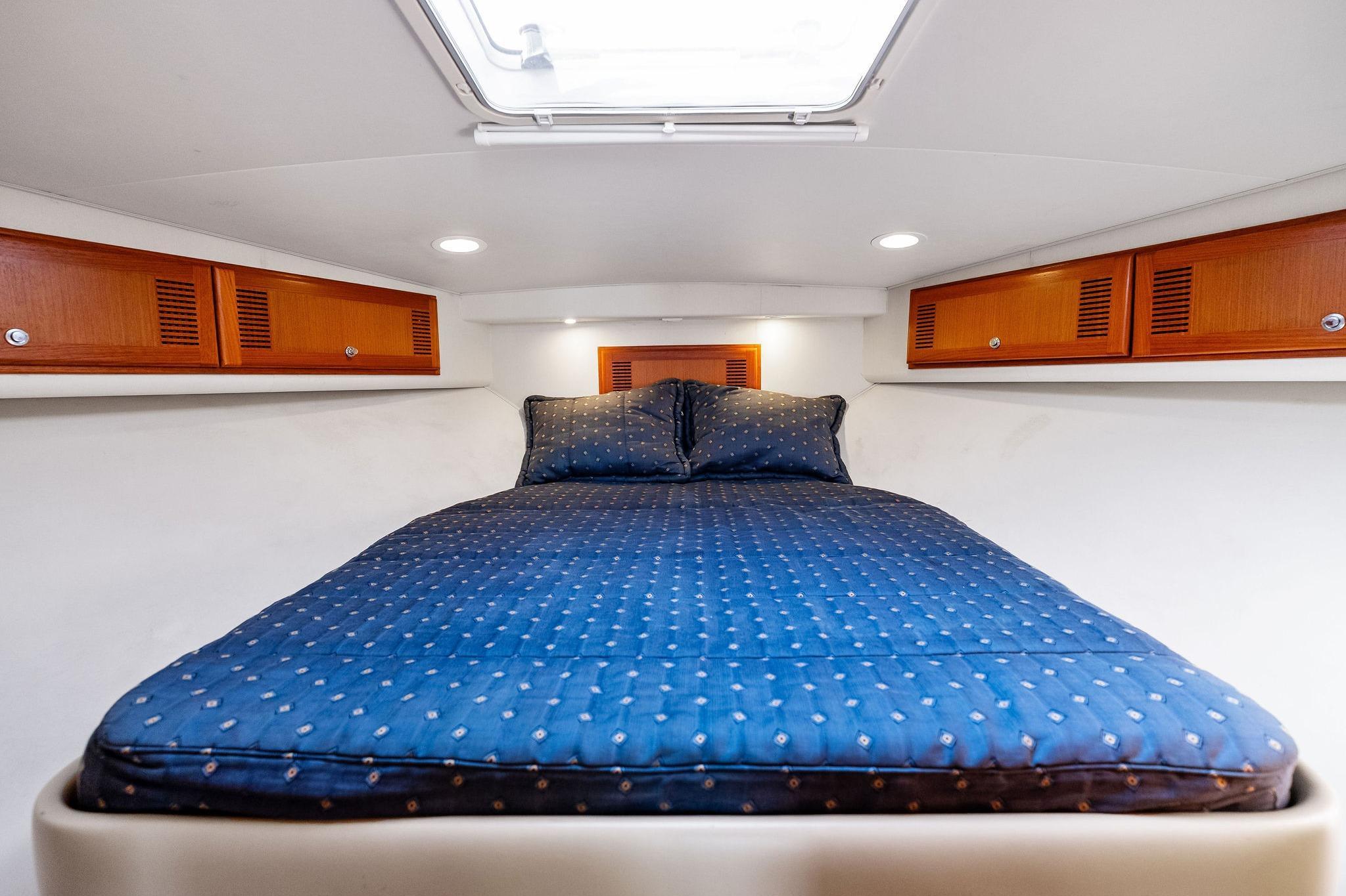 - Forward Master Stateroom: Island queen berth, storage drawers, hanging lockers, reading lights