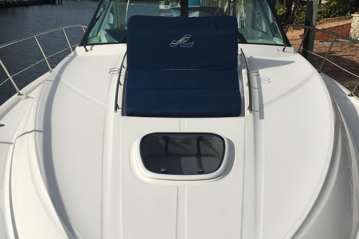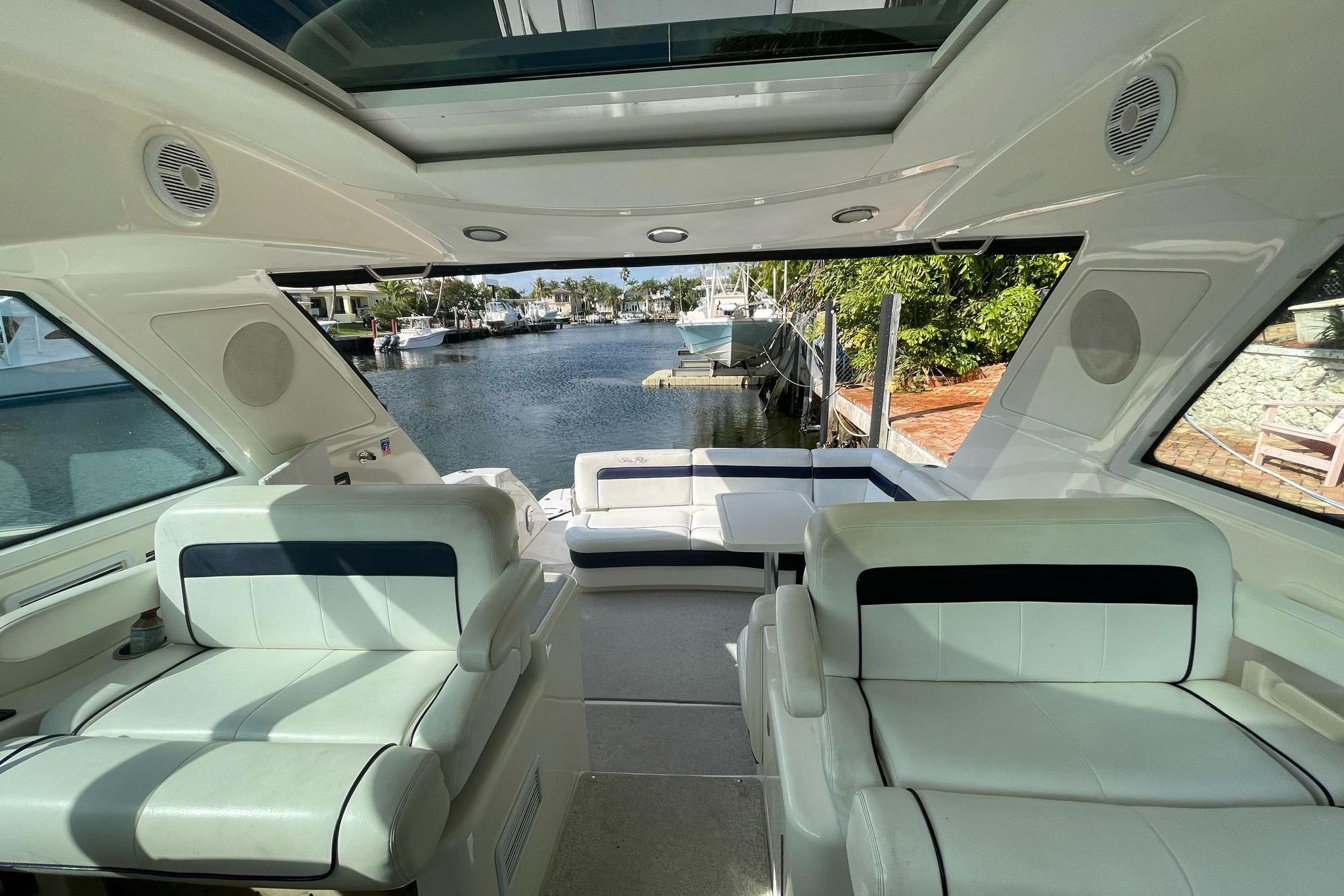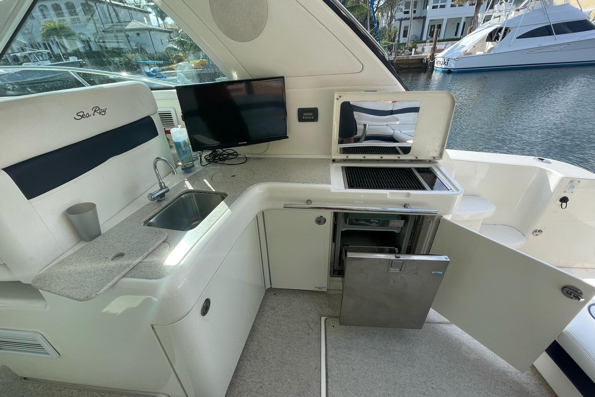 2010 SEA RAY SUNDANCER BEACH HOUSE The 2010 Sea Ray Sundancer 45' Beach House is an exceptional motor yacht, highly reliable and have been competently well kept. It counts with many features such as a remote controlled hydraulic swim platform. Its engines are QSB Cummins 380 engines, with 660h hours each, 380hp and Joystick Zeus Pod drive, providing a fantastic performance for a fantastic cruising experience. The colors are very well suited by its desing, outside a dark blue hull and white paint on the top certainly makes Beach House look timeless. Aboard the cabin, you are greeted with white leader seats with overall modern looks, stepping inside, a delightful marble countertop and refined wood was the chosen finishings by the designer. As of late April 2025, the boat also counts with New Bottom Paint, New PropSpeed and New Zincs. FEATURES> 1. 2 GPS Raymarine E120. 2. TNT Retractable Hydraulic Swim Platform. 3. Radar Raymarine. 4. VHF Raymarine. 5. SatTV: Sea King. 6. Depthsounder: Raymarine. 7. Flir night vision. 8. Compass: Richie Magnet. 9. Autopilot: Precision Pilot. 10. Searchlight: ACR Remote Operated 11. Plotter program: Nobeltec. APPLIANCES> 1. Isotherm Refrigerator. 2. Air conditioning. 3. Water heater. 4. Panasonic Microwave. 5. Stovetop. EXTRA> 1. New blue Hull paint in 2022. 2. New boat cover in 2023. 3. Yearly maintenance for Engines, Pods and Generator by Dealer