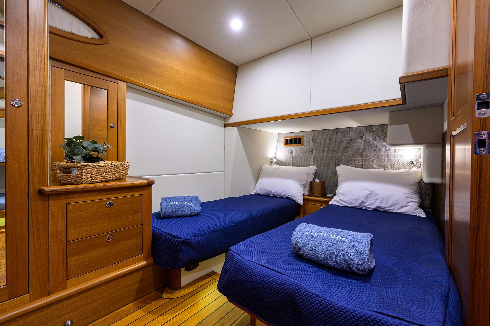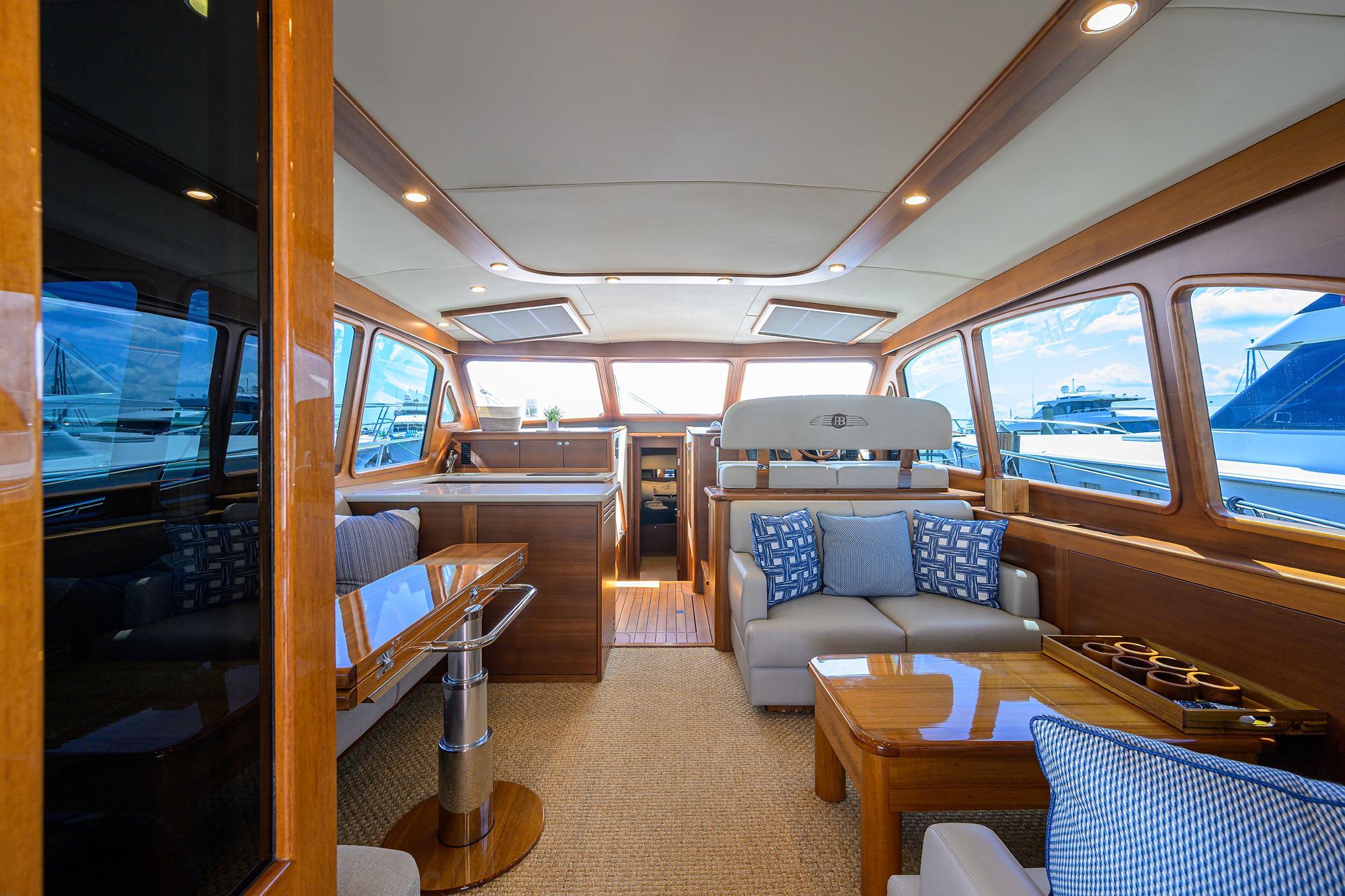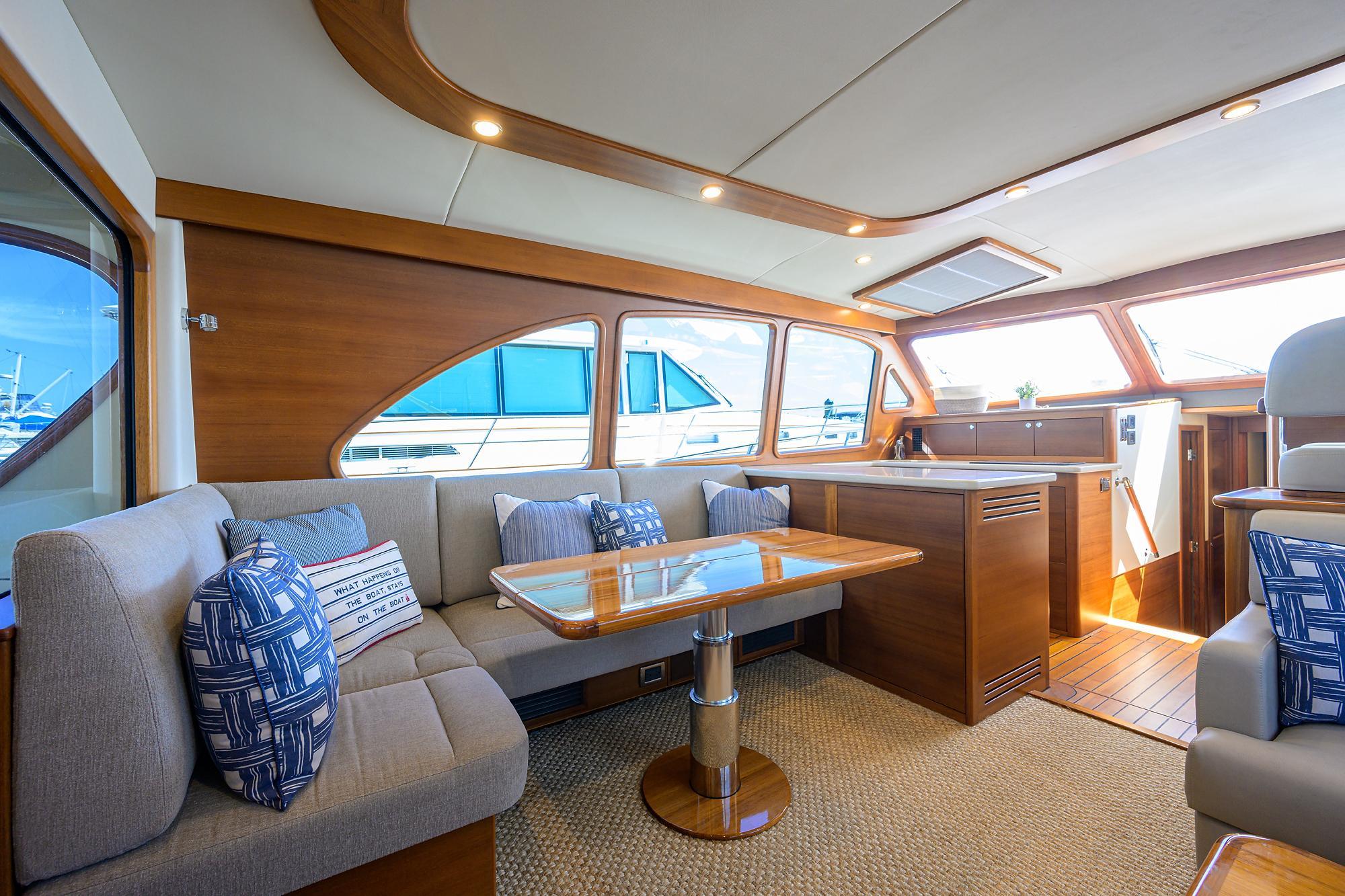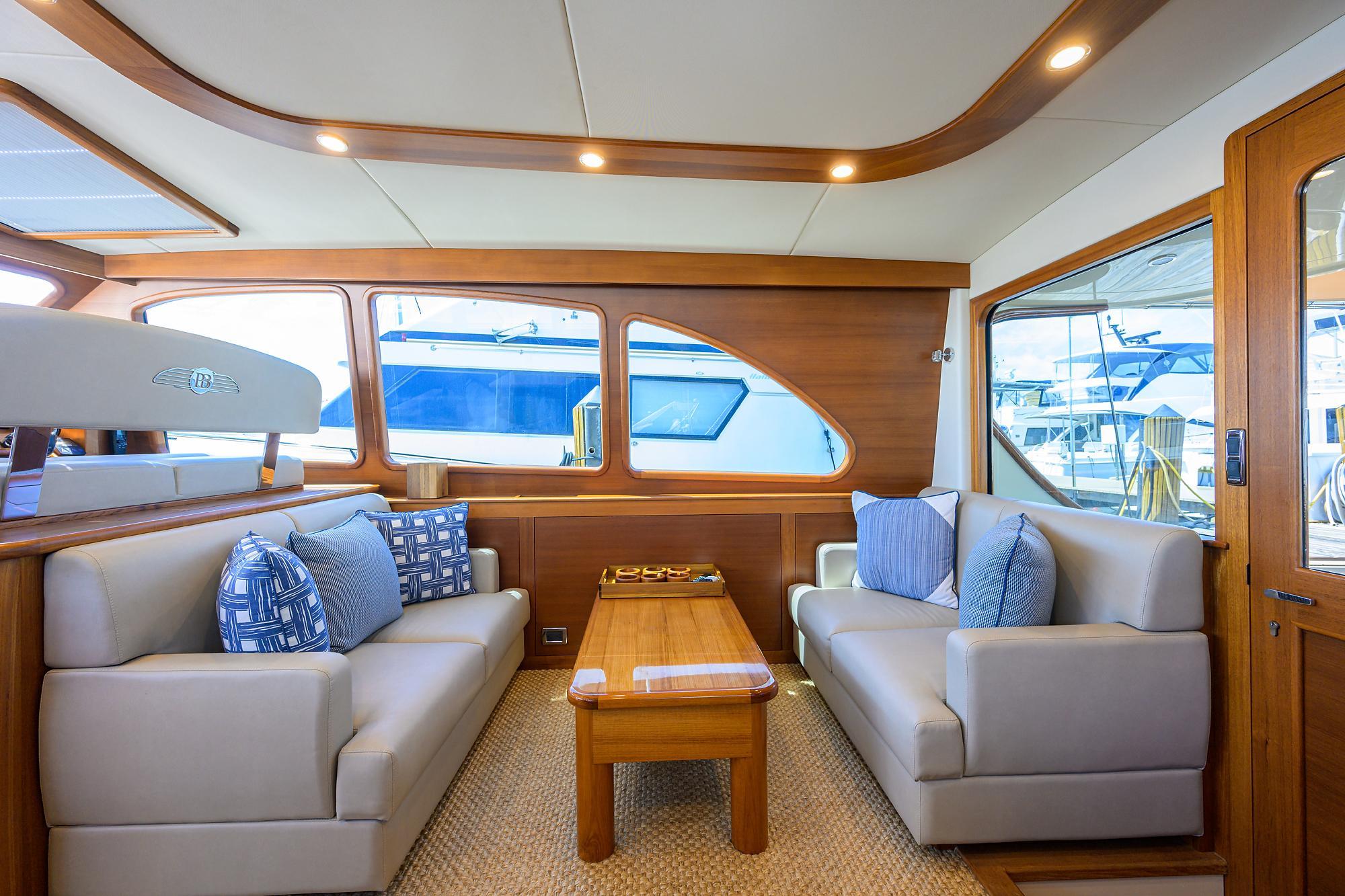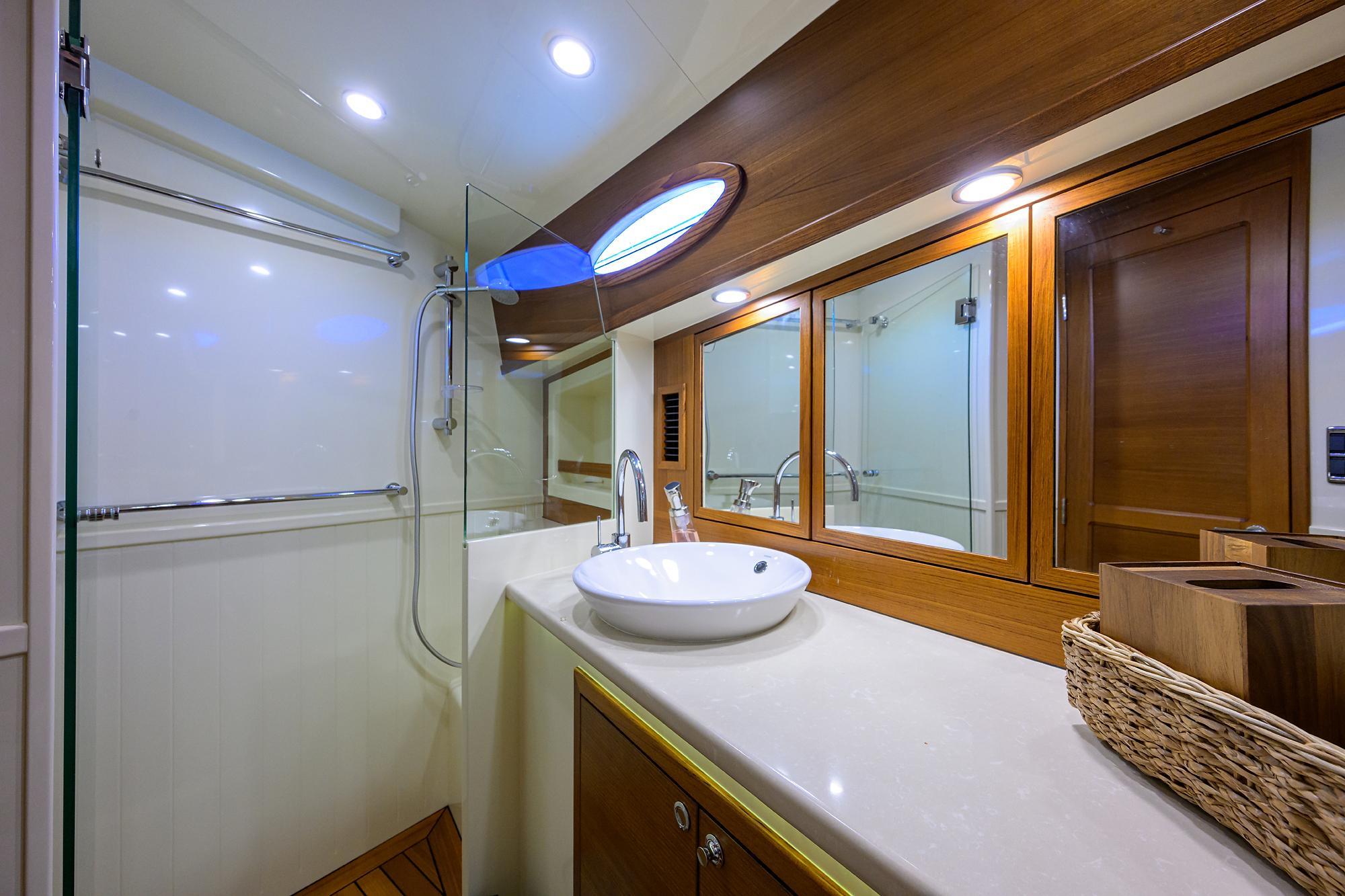 This PB55 offers three beautifully appointed staterooms, making her ideal for family cruising or hosting guests. The master stateroom is a private retreat with a queen island berth, ample storage, and a luxurious en suite head. A set of twin bunks that convert into a queen berth in the VIP and twin bunks in the guest cabin provide comfortable accommodations for six.