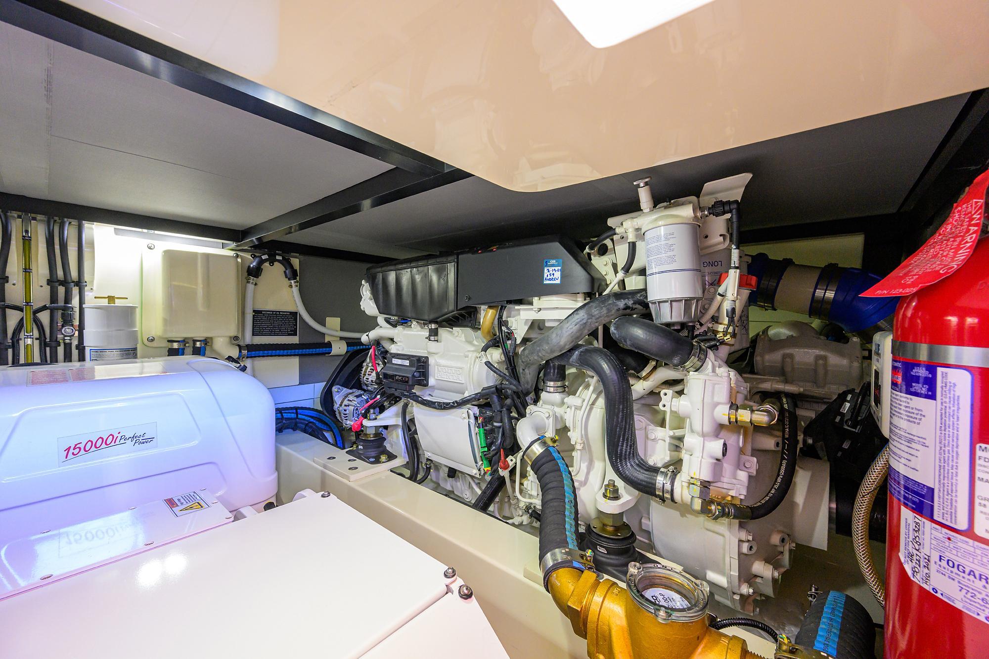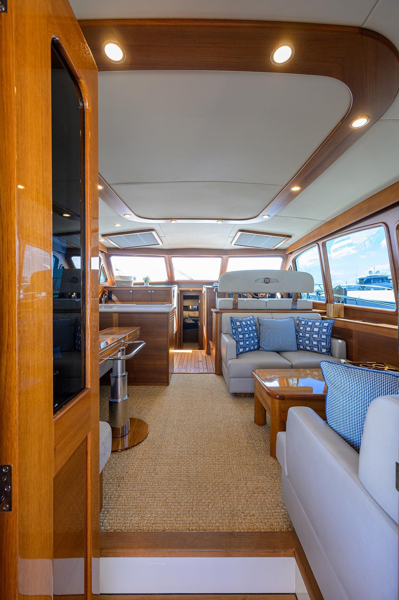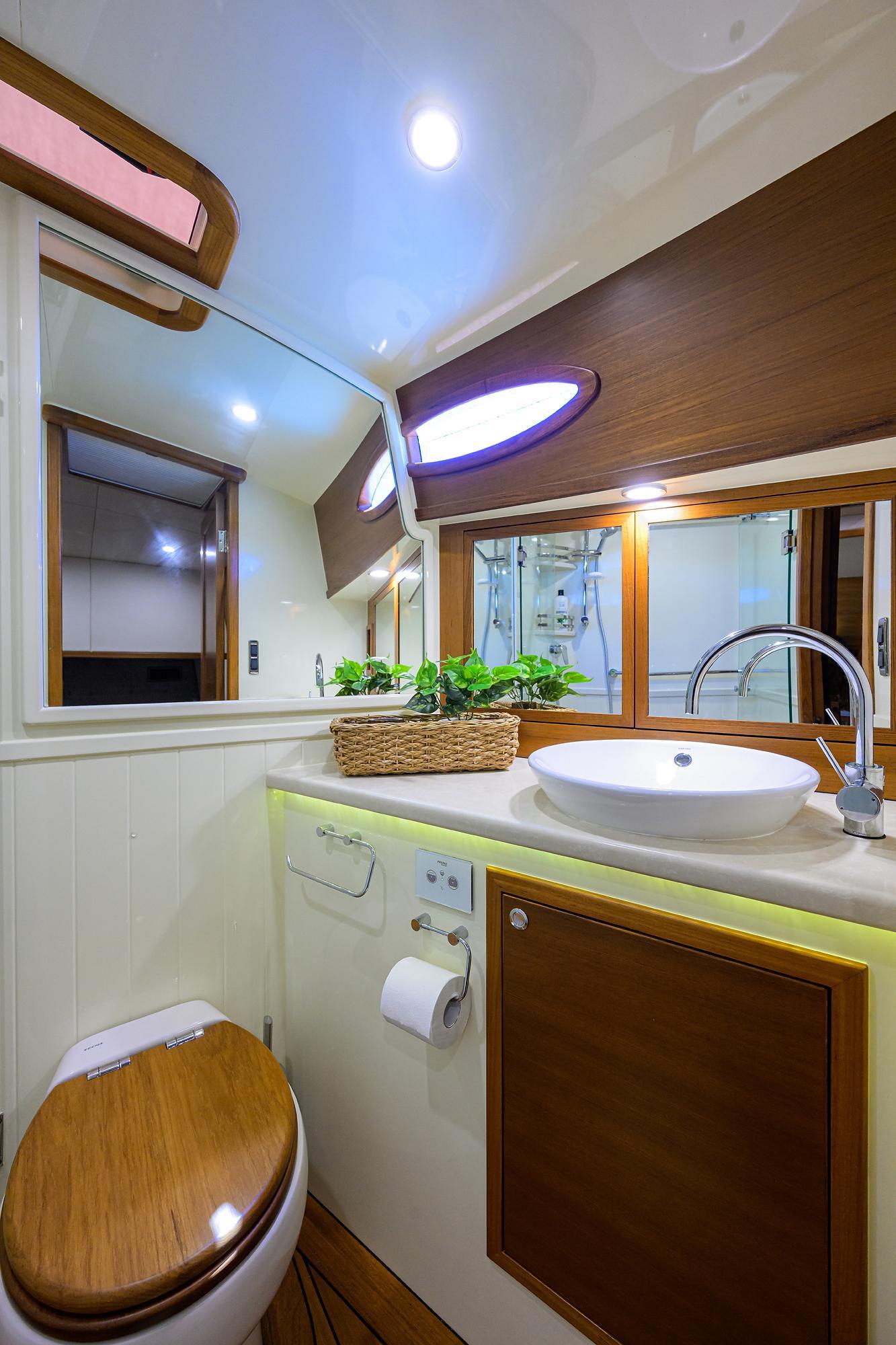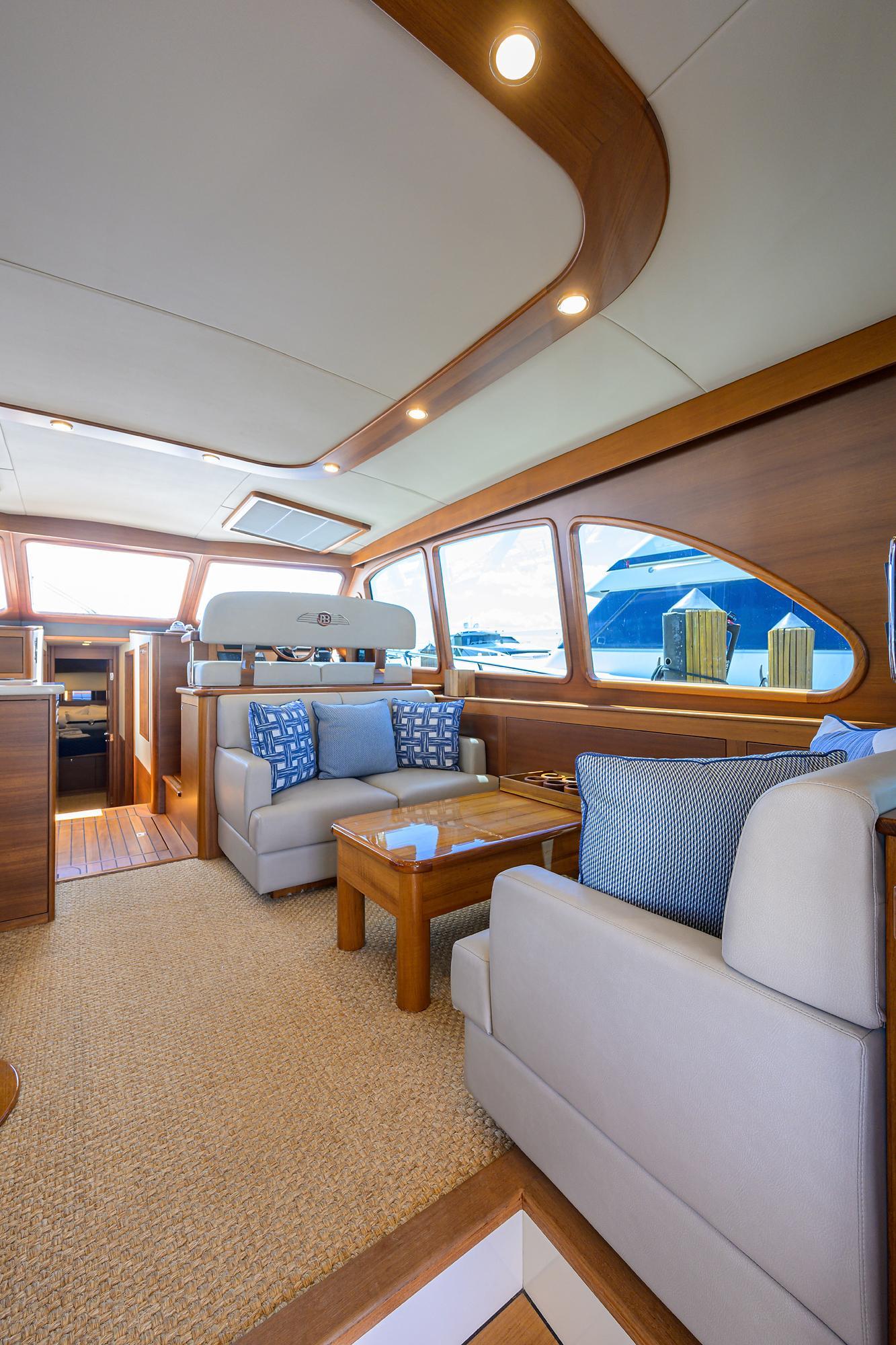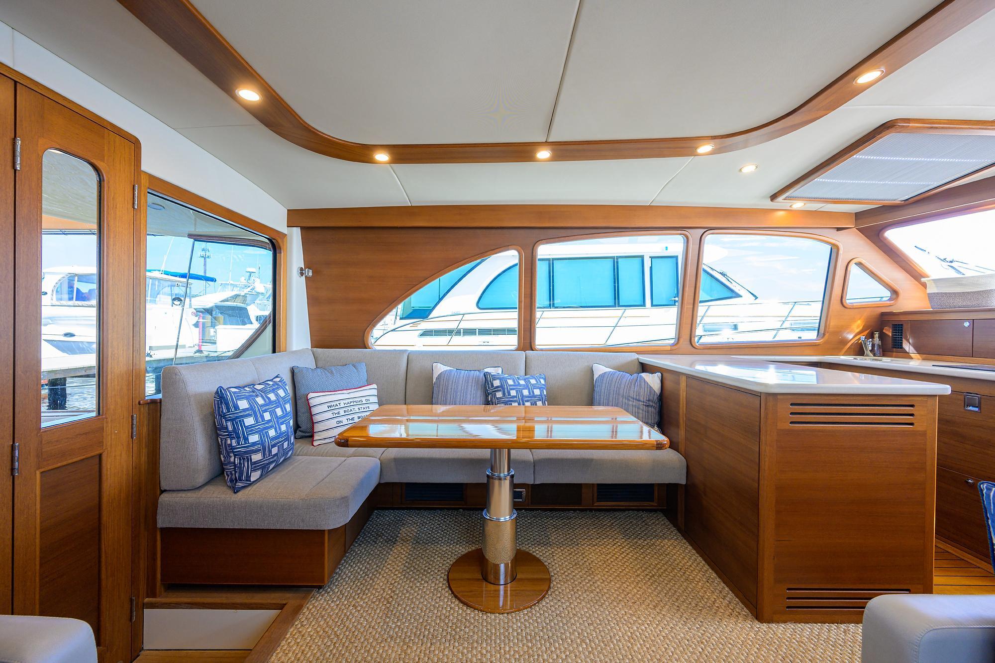 This PB55 offers three beautifully appointed staterooms, making her ideal for family cruising or hosting guests. The master stateroom is a private retreat with a queen island berth, ample storage, and a luxurious en suite head. A set of twin bunks that convert into a queen berth in the VIP and twin bunks in the guest cabin provide comfortable accommodations for six.