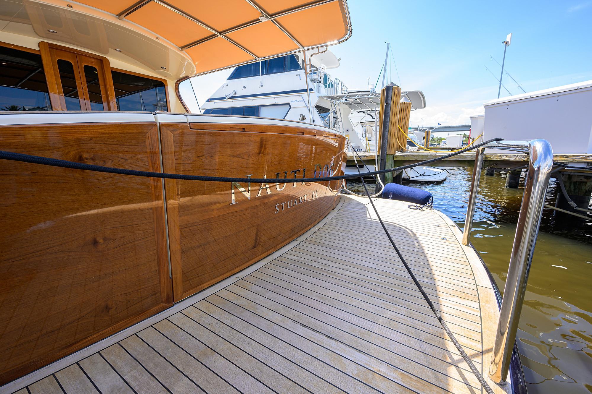 - Decking: cockpit and swim platform solid teak, epoxy bonded, TDS caulking system