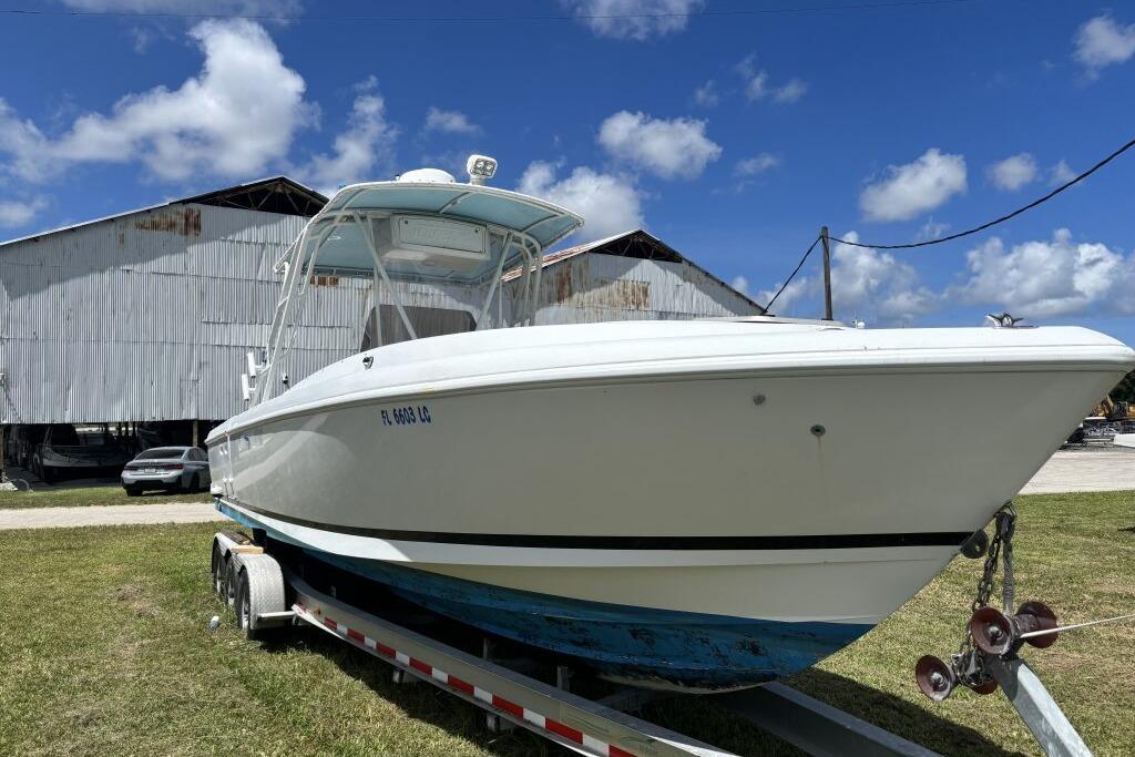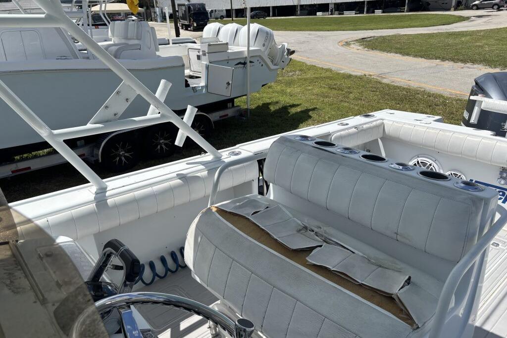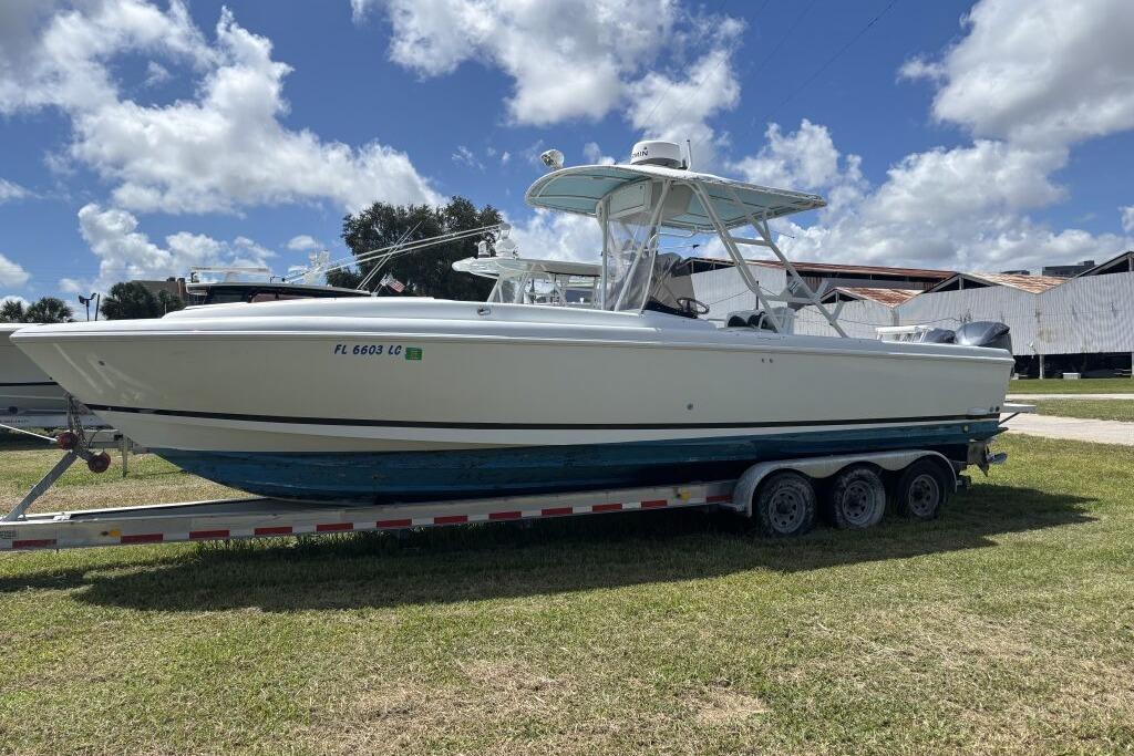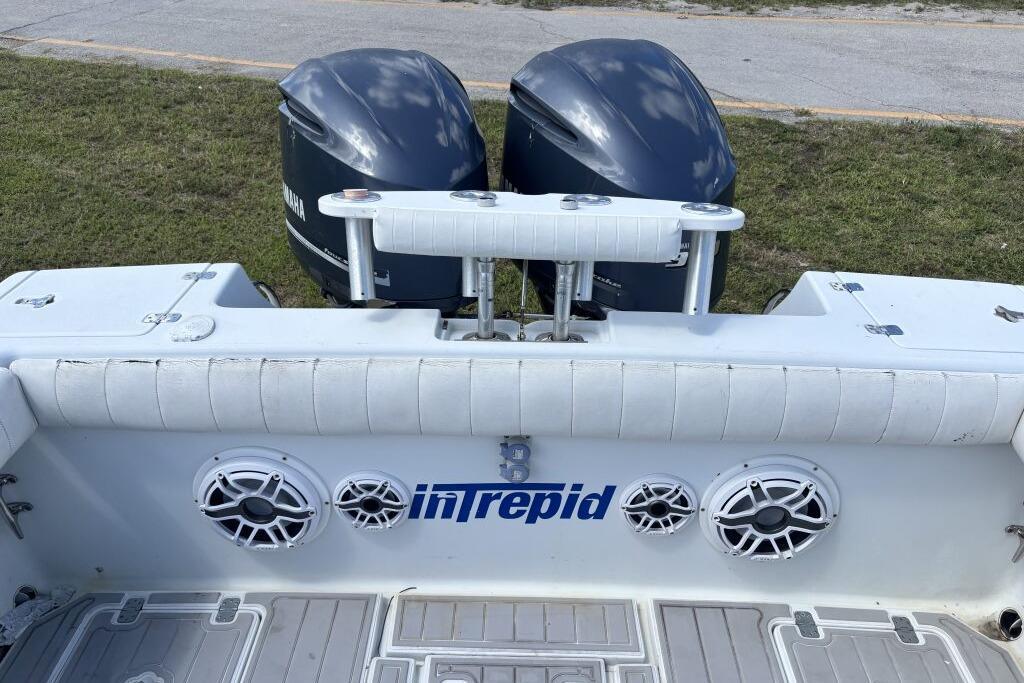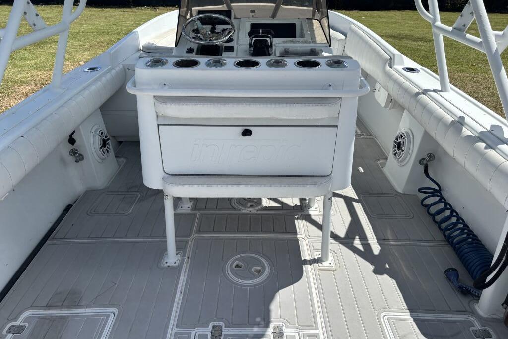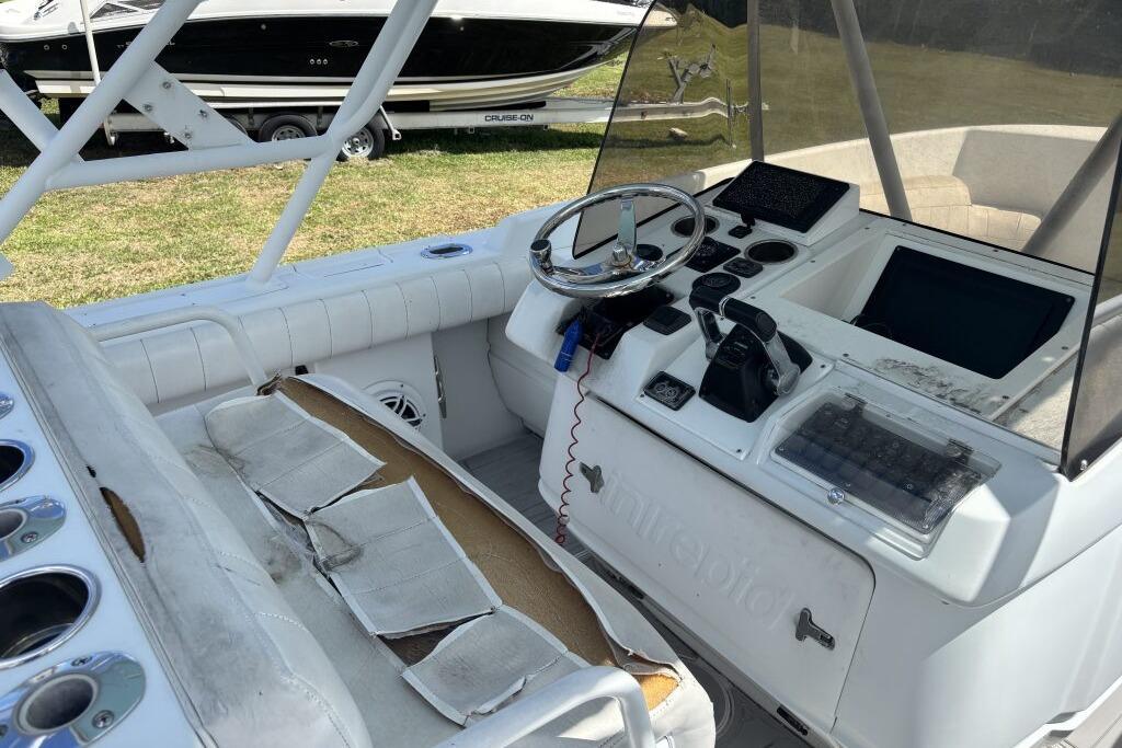 This Intrepid 30’ Cuddy Cabin features the brand’s signature deep-V hull for a smooth, stable ride in offshore conditions. The layout includes generous forward seating with storage beneath, a center console helm with integrated electronics, and a cuddy cabin accessible through the forward bulkhead.