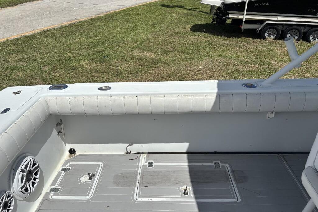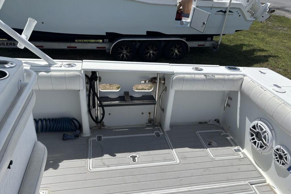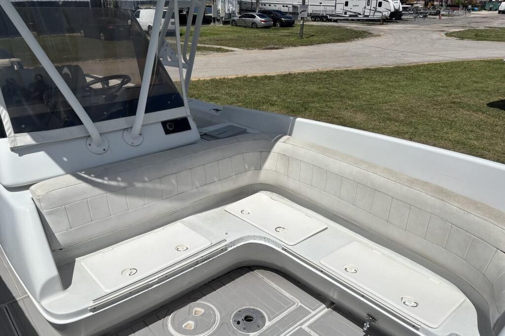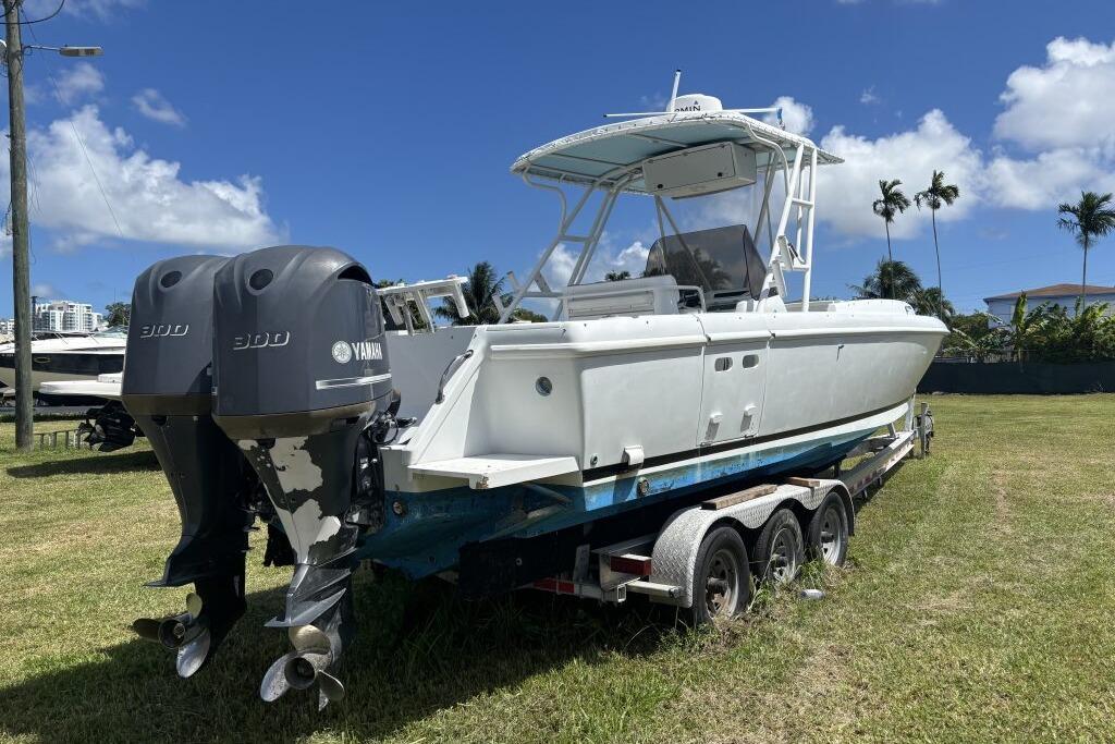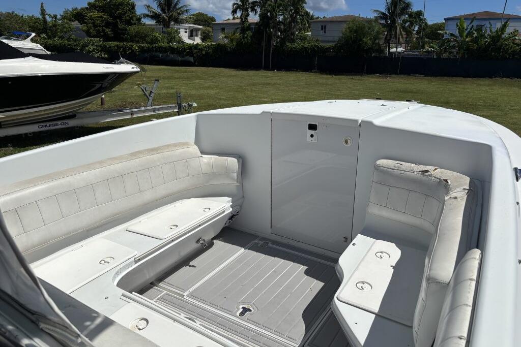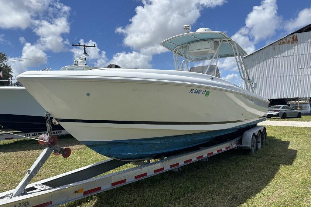 This Intrepid 30’ Cuddy Cabin features the brand’s signature deep-V hull for a smooth, stable ride in offshore conditions. The layout includes generous forward seating with storage beneath, a center console helm with integrated electronics, and a cuddy cabin accessible through the forward bulkhead.