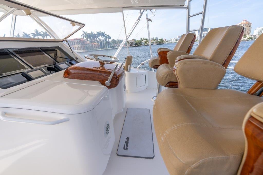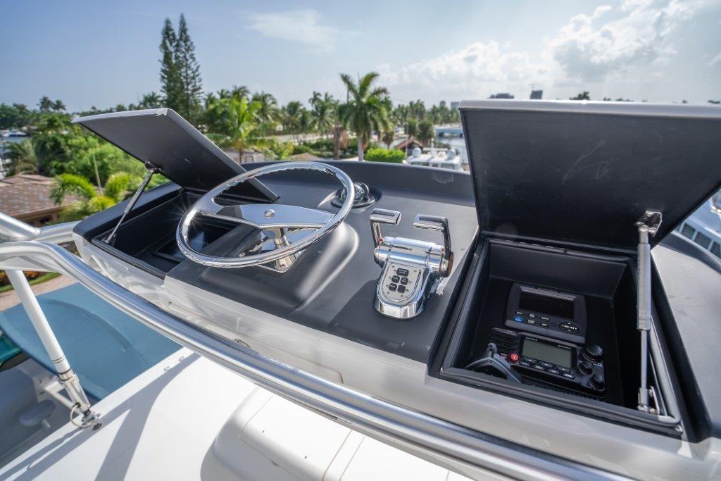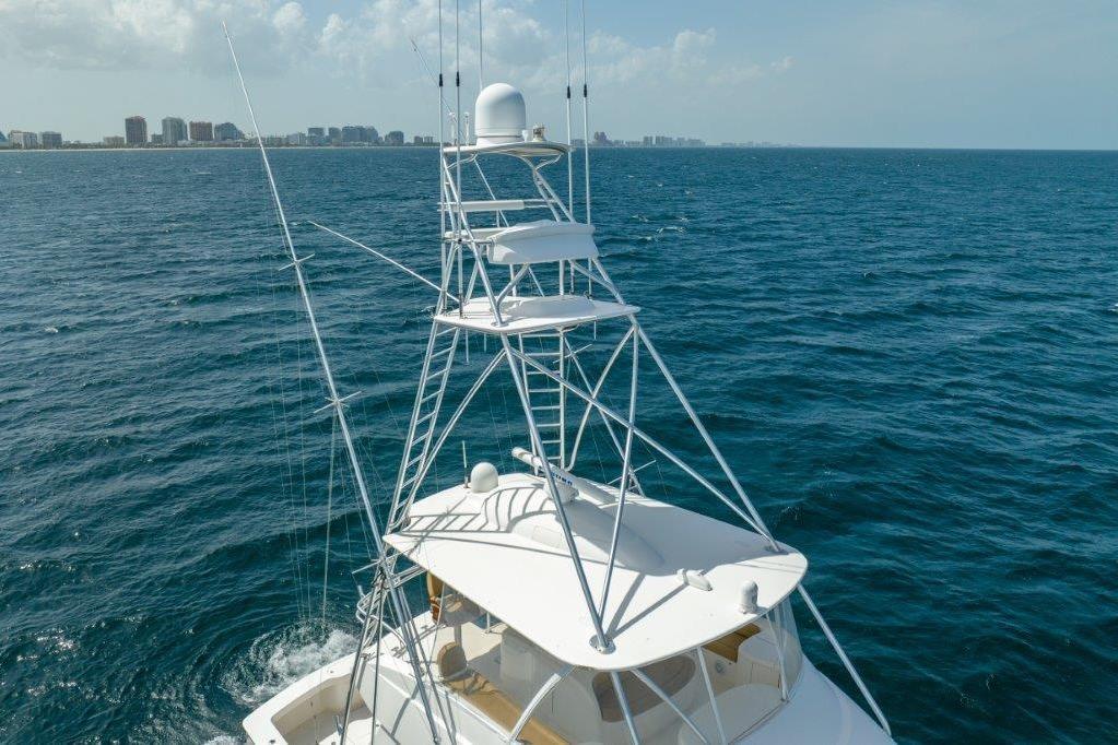 Custom Palm Beach Tower, SEAKEEPER GYRO ( Replaced 2021) extra fuel capacity, 1400GPD Watermaker, Release teak helm pod, black mask, electric bow thruster, day head, carpet runners, Willy Vac system, Bow pulpit with Lewmar windlass, refrigerated cockpit step box, refrigerated drink box on flybridge, helm air conditioning, large freezer on flybridge, crew access door in engine room, "Cool Breeze" Mezzanine air system, (3) Custom Release flybridge seats, additional 46" TV in salon over dinette, underwater lights