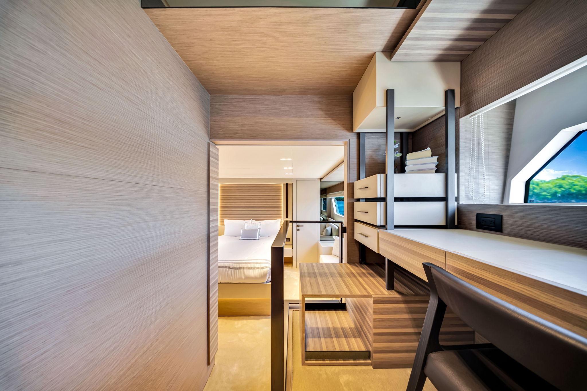ALL TRADES WELCOME | FINANCING AVAILABLELOW HOURS | WARRANTIESThis fantastic vessel makes a captivating impression with her outstanding use of space. The fabulously luminous interiors and modular external areas hold particular appeal. Her latest-generation technology fashions a matchless cruising experience amid some truly iconic design. This is a yacht that makes room for beauty.Launched in 2018, the Ferretti Yachts 670 is our gift to the yachting world, and to ourselves, to celebrate our 50th anniversary year in sumptuous style. She is the fruit of the partnership between the Ferretti Group Product Strategy Committee and the Engineering department – the first Ferretti yacht with exterior design created with architect Filippo Salvetti, while the interiors are by our own in-house architects and designers. The standout feature among her is the optimal use of space, inside and out, assuring a perfect blend of conviviality and privacy for the owner and guests. The Ferretti Yachts 670 is actually a 67-footer (measuring 20.24 m), albeit with amenities typical of rather larger craft. This design philosophy emerges clearly in the layout: the standard version vaunts 3 generous cabins on the lower deck, and the imaginatively arranged master cabin has an antechamber that acts as a roomy study with writing desk, now an iconic element of this yacht.NOTABLE FEATURES & SPECS:MAN 1200s (350HR)Onan 21kw Generator (700HR)Aft Wing StationCrews QuartersSeakeeper 6 (2)Quick Bow ThrusterXenta JoystickTeak PackageSimrad Electronics Package (3) “SIMRAD” NOS16 EVO3S MRFD Displays @ Pilothouse(2) “SIMRAD” NSS3S-12 MFP Displays @ BridgeSIMRAD OP12 Digital AutopilotSIMRAD HALO 20 PLUS RadarUnderwater LEDSGAGGENAU Electric Bridge GrillHydraulic Swim-platformPassarelleAqua-Matic WatermakerMUCH MORE!
