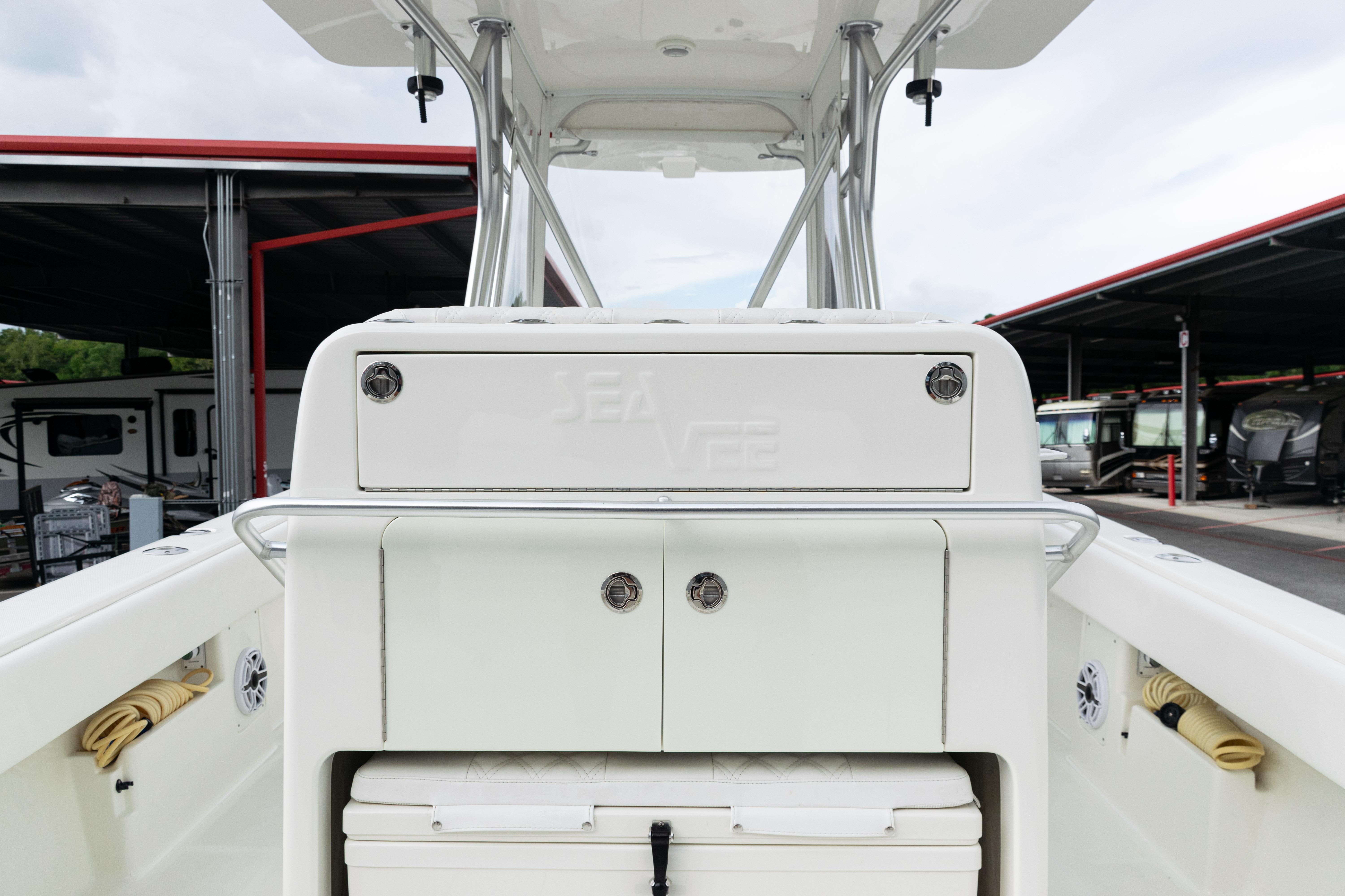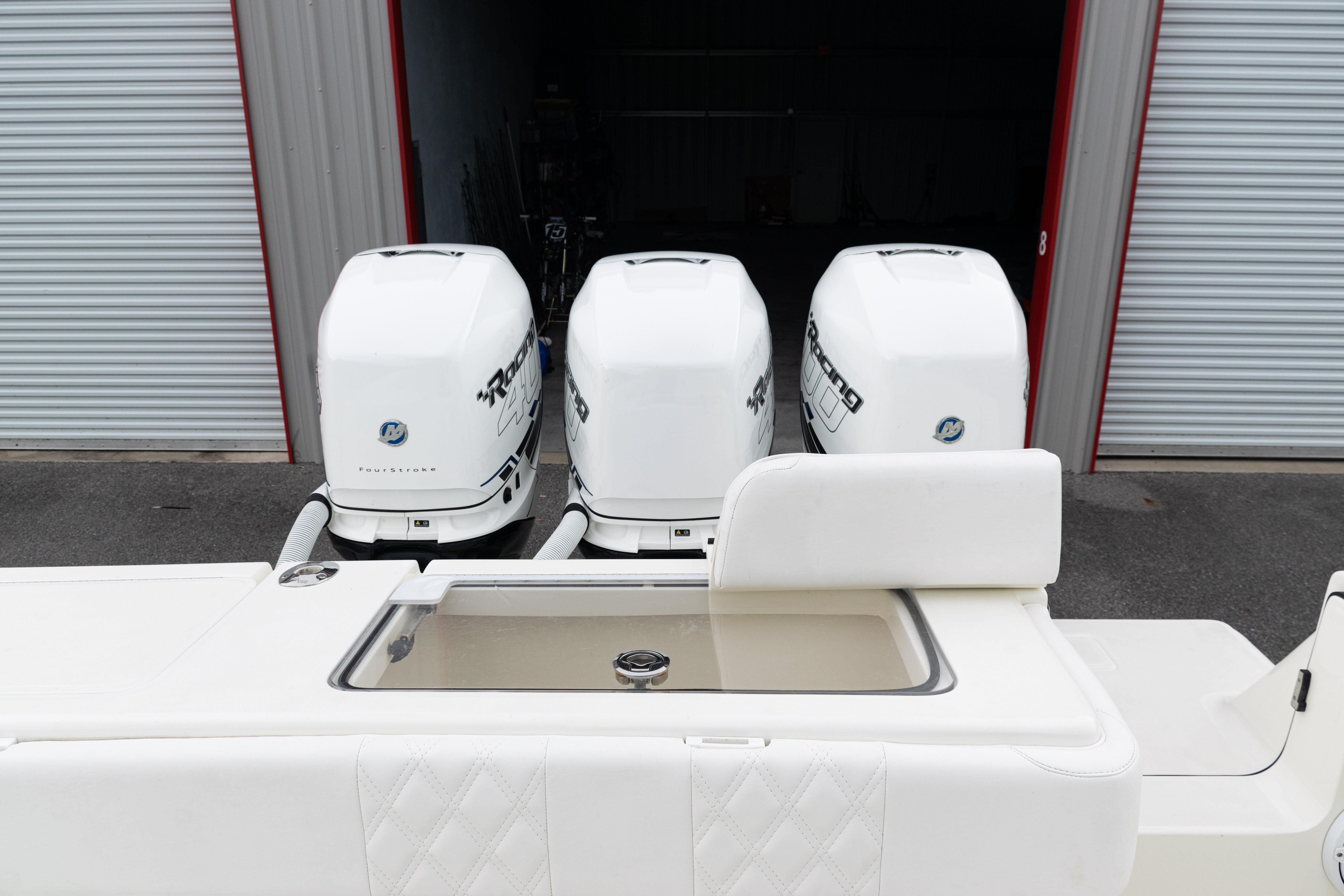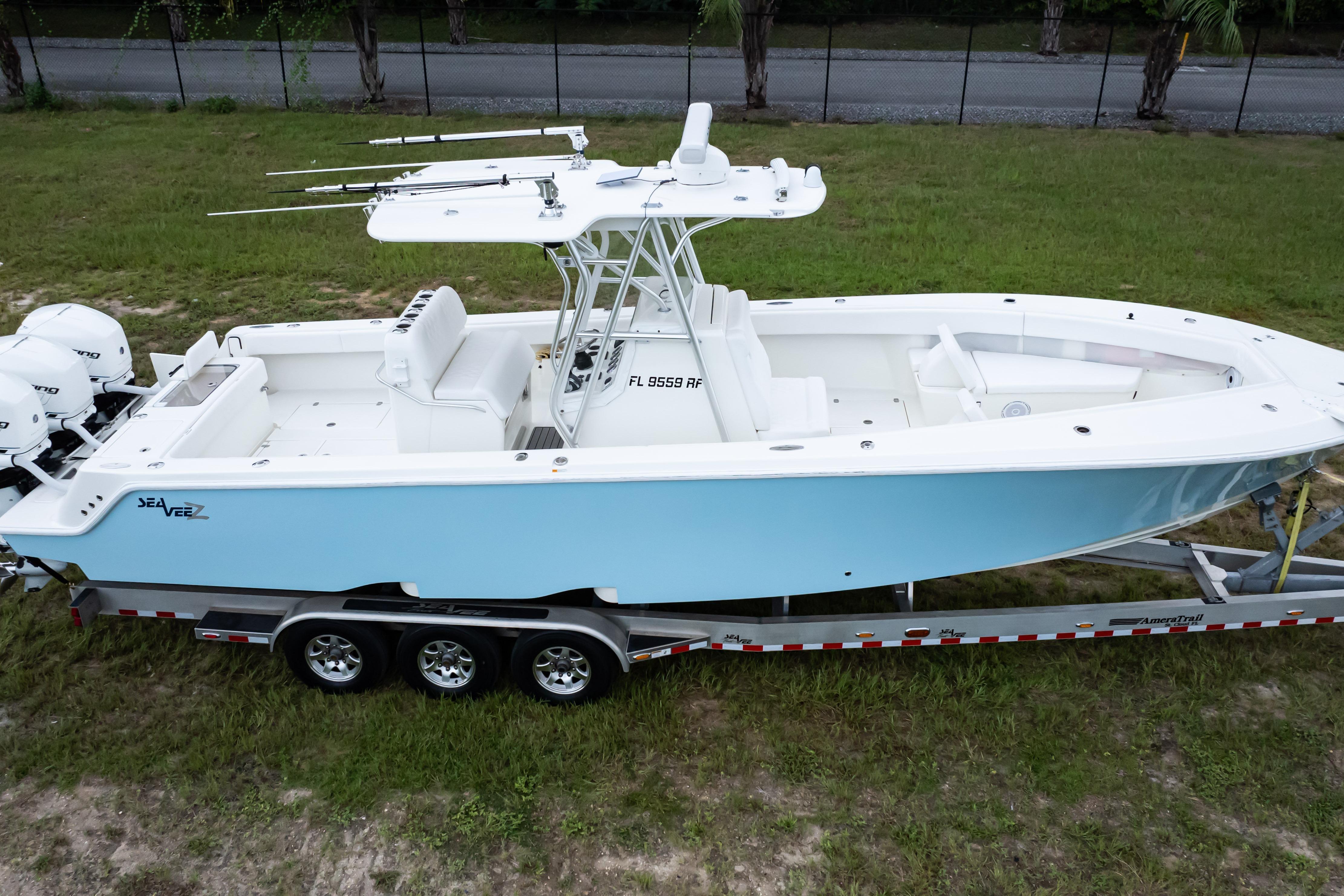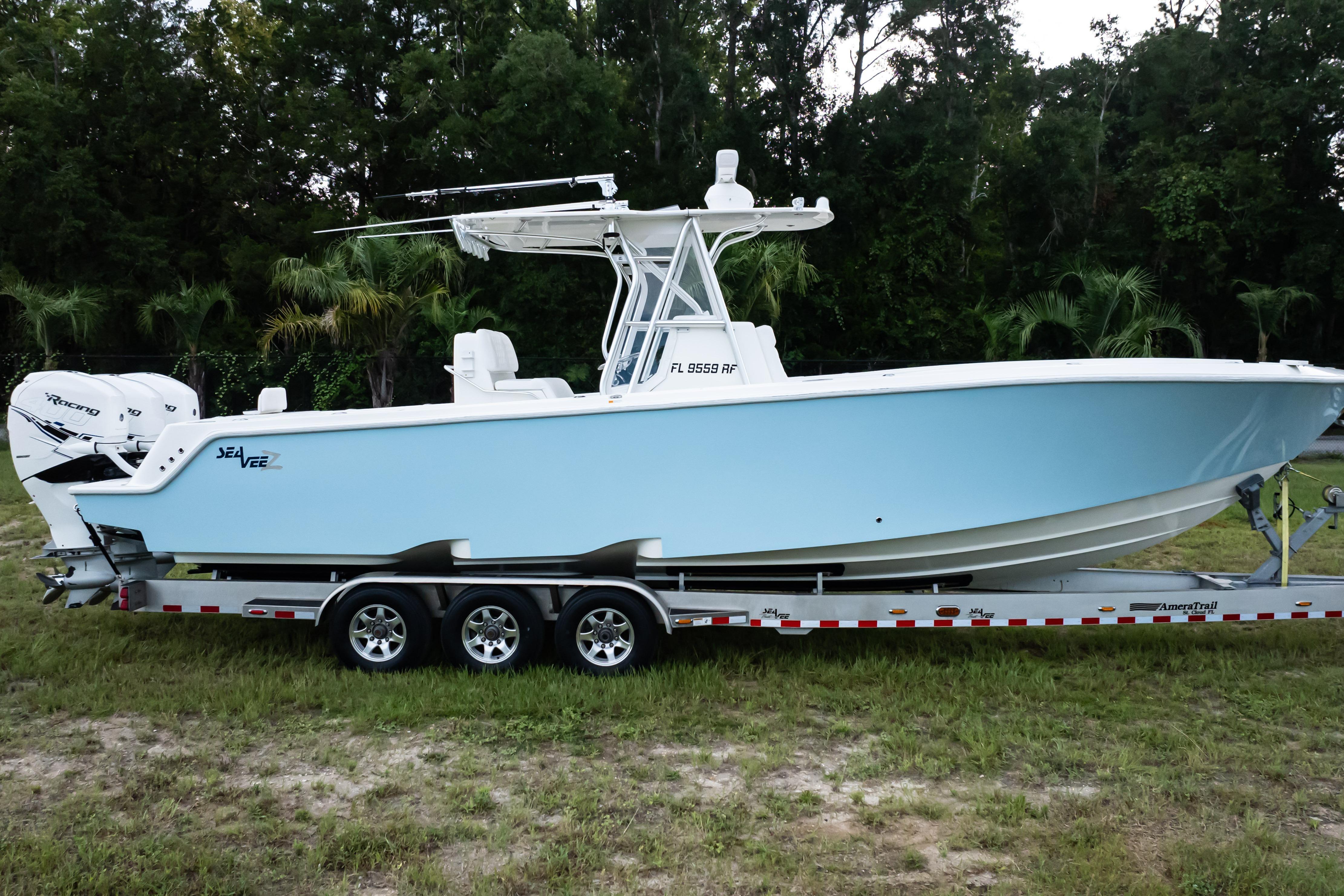2017 340Z SeaVee - Triple Factory-Painted Warm White Fusion Mercury Engines • Custom Light Blue Hull • Fully Loaded with Premium Upgrades - Updated Garmins and Upholstery!Power & PerformanceTriple Factory-Painted Warm White Fusion Mercury Engines - 700 HoursMercury K Planes High Performance Trim Tabs (upgrade from standard)Pull-Out Dive Ladder with Fresh Water Flush SystemHull & ExteriorCustom Hull Color – Sides to Chine in Light BlueWhite Rub RailCoaming BolstersThree-Panel Polycarbonate EnclosureWindlass Anchor System – 300’ Rope & Chain, helm & anchor compartment switchesSidewinder Outriggers (Lee)Fiberglass Molded Key West Hard Top with 6 rod holders, 1 aft LED spreader light, and 4 multicolored LED lightsWashdown & PlumbingFresh Water Wash Down System with Hose & NozzleAdditional Fresh Water Pull-Out Shower HeadSalt Water Wash Down SystemElectric Head with Holding Tank & Macerator Pump-OutFishing FeaturesAdditional Fish Box Inline Diaphragm PumpStandard Fish Box Inline Diaphragm PumpCustom Stainless Steel Sea Chest Baitwell System with Dual 1500 GPH PumpsFlush-Mounted High-Speed 1½” Pickup for 2-Pump Sea ChestConsole Rod Holders (mounted on sides, plumbed)Additional 15° Gunnel-Mounted Rod HoldersRod & Cup Holder Combo – 316 Stainless Steel, 15°Two 30 Amp Electric Reel Outlets with covers and breakersSeating & ComfortCaptain’s Edition Helm Seat/Prep StationFiberglass Cooler with Manual Sliding TrayCustom Seat Cushion for Sliding CoolerDeluxe Bench Stern Seat w/Backrest (Removable, 18” seat depth)Molded Forward Seating with Electric Reclining BackrestElectronics & NavigationGarmin 8612 Color GPS Plotter – 12” Multi-Function TouchscreenGarmin 8612 XSV GPS/Sonar Combo – 12” Multi-Function TouchscreenGarmin GMR 24x HD Marine Radar DomeB265LH 1KW CHIRP 12-Pin Thru-Hull TransducerGarmin GHP Reactor Autopilot with Smart PumpICOM M400BB Black Box VHF Radio (black) with 8’ Digital Antenna & MountPoly-Planar External VHF Speaker (white)Sound SystemJL Audio Speakers – Classic Grills4 JL Audio 8.8” Coaxial Speaker Pairs2 JL Audio 10” SubwoofersSingle Molded Speaker Pod on Hardtop (with 7.7” JL speakers)JL Audio M600/6 – 600W AmpJL Audio M800/8 – 800W AmpJL Audio Media Master 100 Audio Head Unit with Digital AM/FM Antenna & USB/3.5mm PanelDual USB Charger Socket at ConsoleLightingTwo SeaBlaze X8 LED Underwater Lights (blue)Multicolored LED Hardtop LightingElectrical & Batteries2 Extra AGM Batteries (two-year warranty)Battery Charger with Galvanic Isolator, 30 Amp Inlet & ELCI BreakerTrailerAmeraTrail Triple-Axle Trailer – Electric Over Hydraulic Brakes (Included at no charge)This vessel is fully loaded, meticulously equipped, and turn-key ready for serious offshore fishing and comfortable cruising.