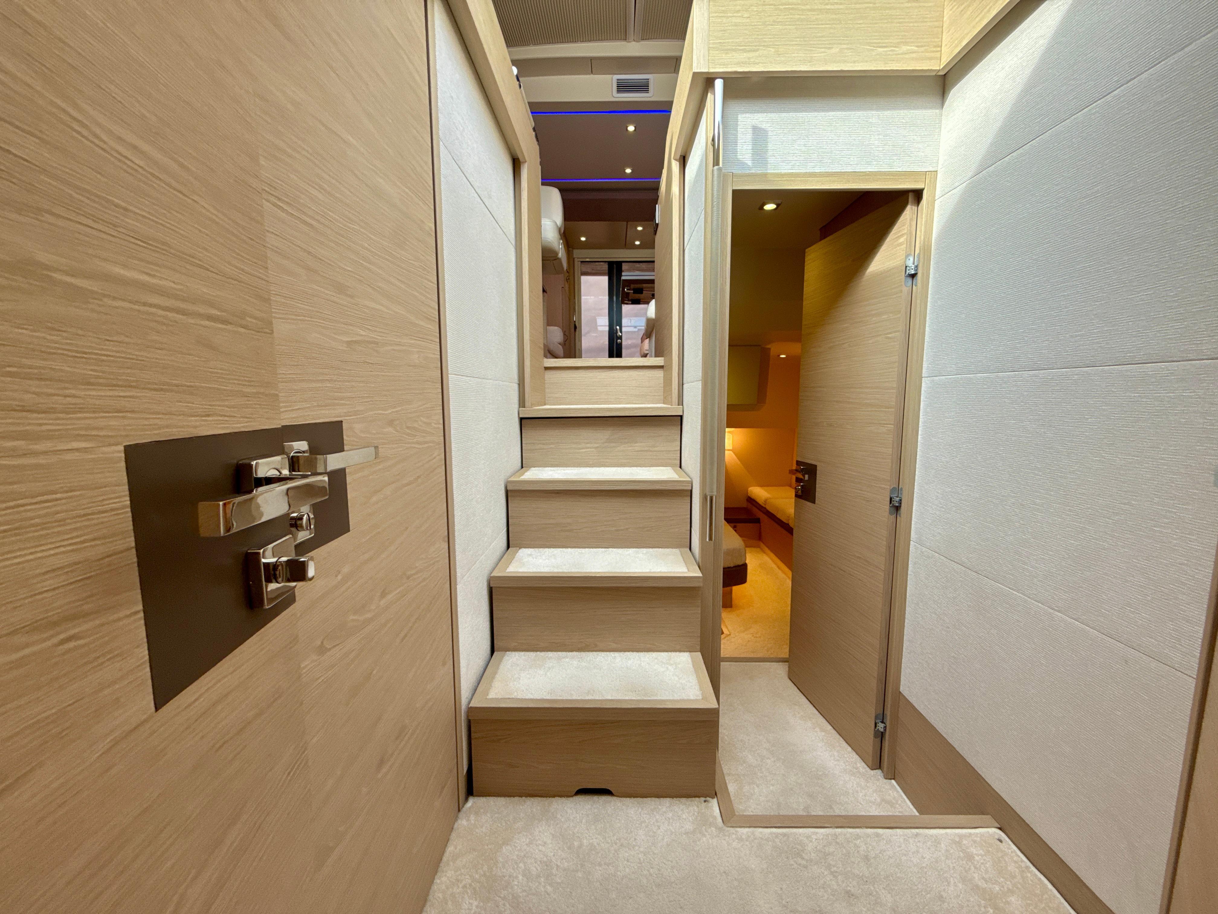 - Access stairway to flybridge, built-in storage locker can fit fenders, lines, etc.
