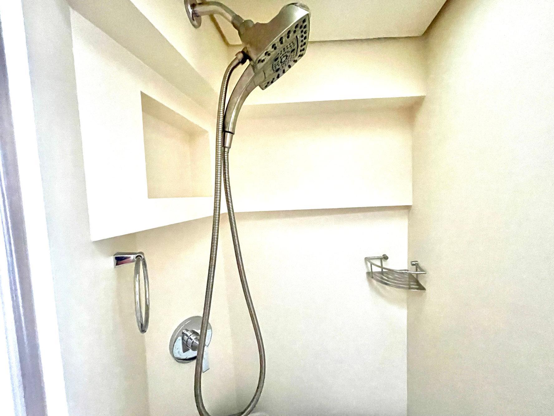 - Separate bathroom stall with sink, vanity, & mirror located to port