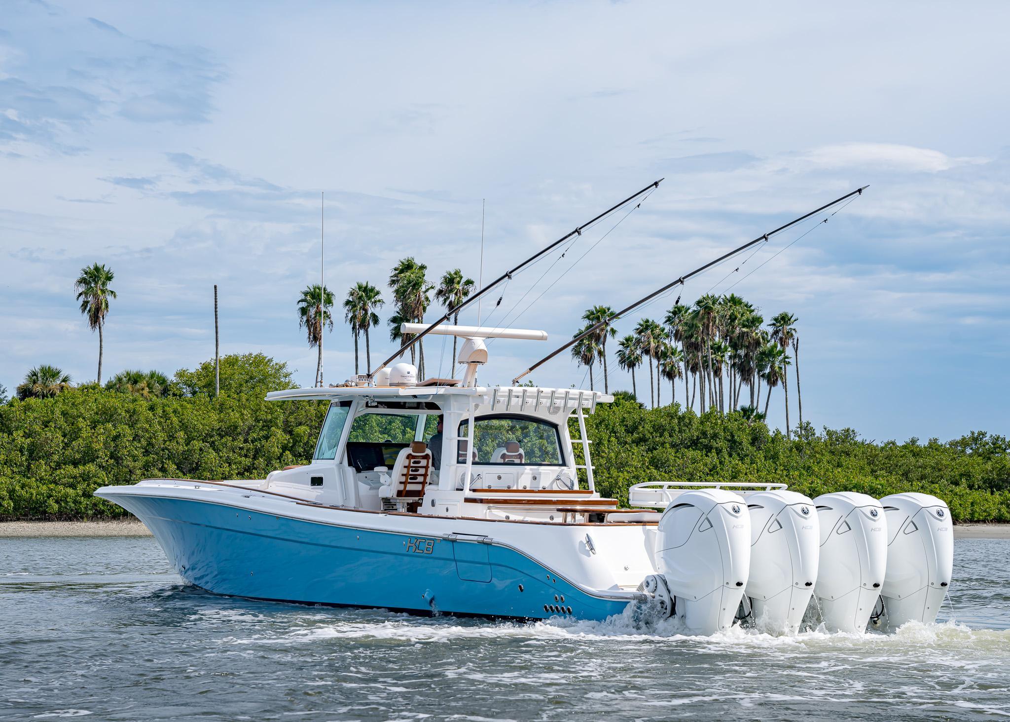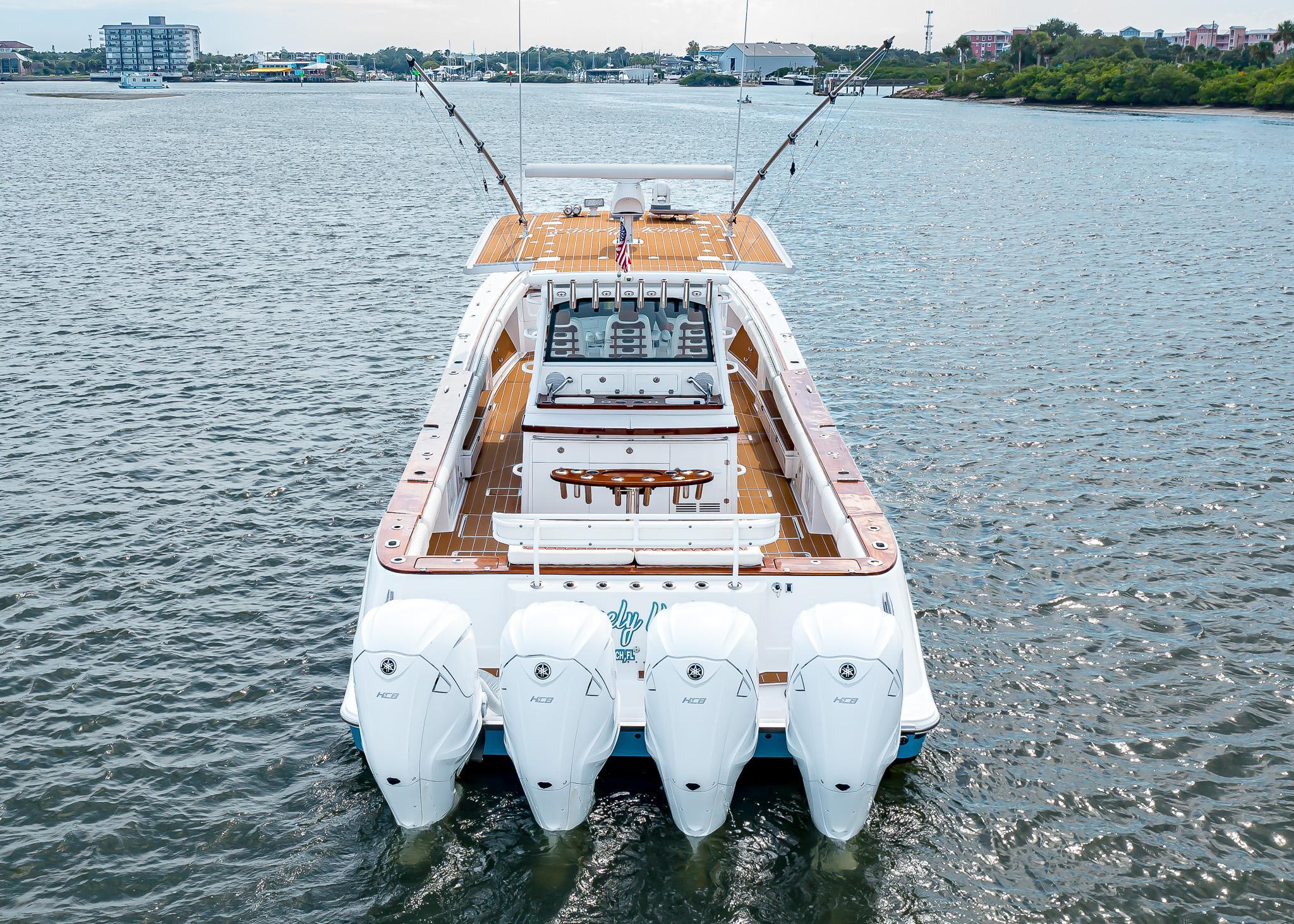 AVAILABLE NOW IN NEW SMYRNA BEACH!2020 HCB 53' SUENOS - w/ Quad Yamaha 425 XTO'sWith extended Yamaha Warranty until 08/28/2028!For sale: A meticulously maintained 2020 HCB 53' Suenos, in excellent condition, ready for its next adventure. This luxury center console yacht combines unrivaled performance with spacious comfort, boasting quad Yamaha 425 XTO engines that deliver exceptional power, reliability, and speed. This vessel is loaded with premium features, including state-of-the-art navigation systems, a fully-equipped galley, and an expansive deck perfect for entertaining. Whether you're chasing big game fish or cruising in style, this 53' Suenos offers unparalleled versatility and reliability. Don't miss out on owning this top-tier vessel that's been cared for with the utmost attention to detail.Ultimate Marine Custom Options Full custom paint (hull & motors)Front & Rear Sunshades Seakeeper Boat CoverRocket Launcher Custom Seadek Generator Joystick FLIRRigid LightbarsLumitec Under Lighting 2020 HCB 53 SPECS Length: 52' 11"Beam: 13' 0"Weight: 33,000 lbsHorsepower Rating: No MaxFuel Capacity: 1000 GallonsFreshwater Capacity: 58 GallonsLivewell Capacity: 2 @ 60 Gallons EachDraft Engines Up: 32"Draft Engines Down: 44"Deadrise (Transom): 22"Bridge Clearance w/ Top: 12" 0"Engine: Yamaha 425 XTO NOTABLE STANDARD FEATURES Air Conditioning - (Cool and Heat)Bow Table - Fiberglass with Power Lift and Filler CushionBow ThrusterCabin Floor - Perma Teek Traditional with White or Black Accent LinesCabin with Galley Sink, Refrigerator, Microwave, Berth, TV, Enclosed Head and Luxurious ShowerCabinetry - Solid HardwoodCockpit Shower - Freshwater, Integrated into Hardtop Frame Fish Boxes - Port / Starboard Aft Cockpit, 150 Gallons Each Forward Console Cooler - Frigid Rigid, 54 Gallon, Refrigerated Forward Gunwale Mounted Coolers - Frigid Rigid, 2 Port, 2 Starboard Auto Pilot Hard Top - Custom Painted Frame with Faired Welds, Integrated Windshield, D-Tubing, Rod Holders, Spreader Lights, Molded Rain Gutters & Handrails Helm Seats - Triple Captain's Chairs with Swivel Pedestals Insulated Deck Lids - Rubber Gaskets, Drainage Channels Integrated Dry Bilge System Sea Chest - Single High Volume Seating - Second Row Sleigh Seat Seating - Bow Loungers, Port /Stbd with Molded Seat Backs Spotlight - ACR with Dash Mounted Control and Wireless Remote Stereo System - JL Audio - Two 6.5" Speakers, Two 7.7" Speakers, Four 8.8" Speakers, Four 10" Subwoofer Colored Gelcoat Summer Kitchen - Two Sinks, S/S Grill, S/S Refrigerator and Storage Transom Seat Coolers - (2) Frigid Rigid Trim Tabs - Polished Stainless Steel with Dual Hydraulic Rams USB Ports - Integrated In 2nd Row Sleigh Seat, (2) Port, (2) Starboard