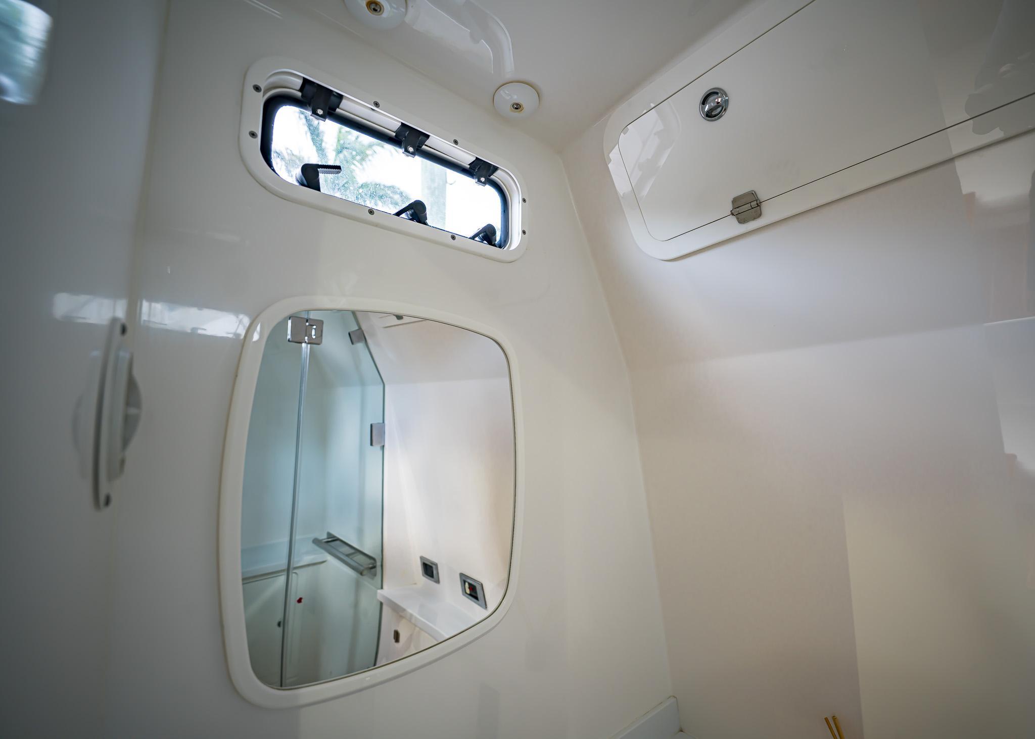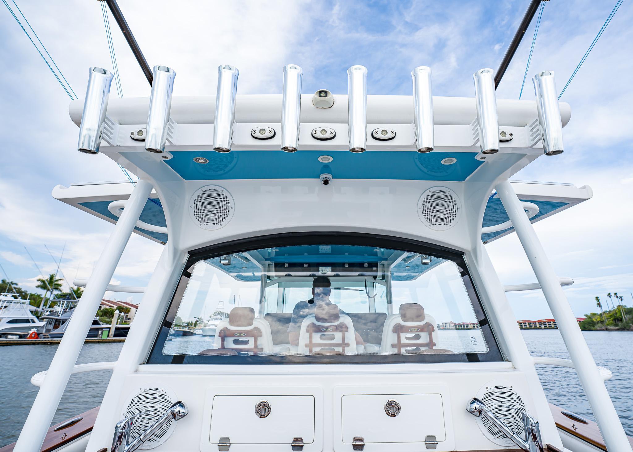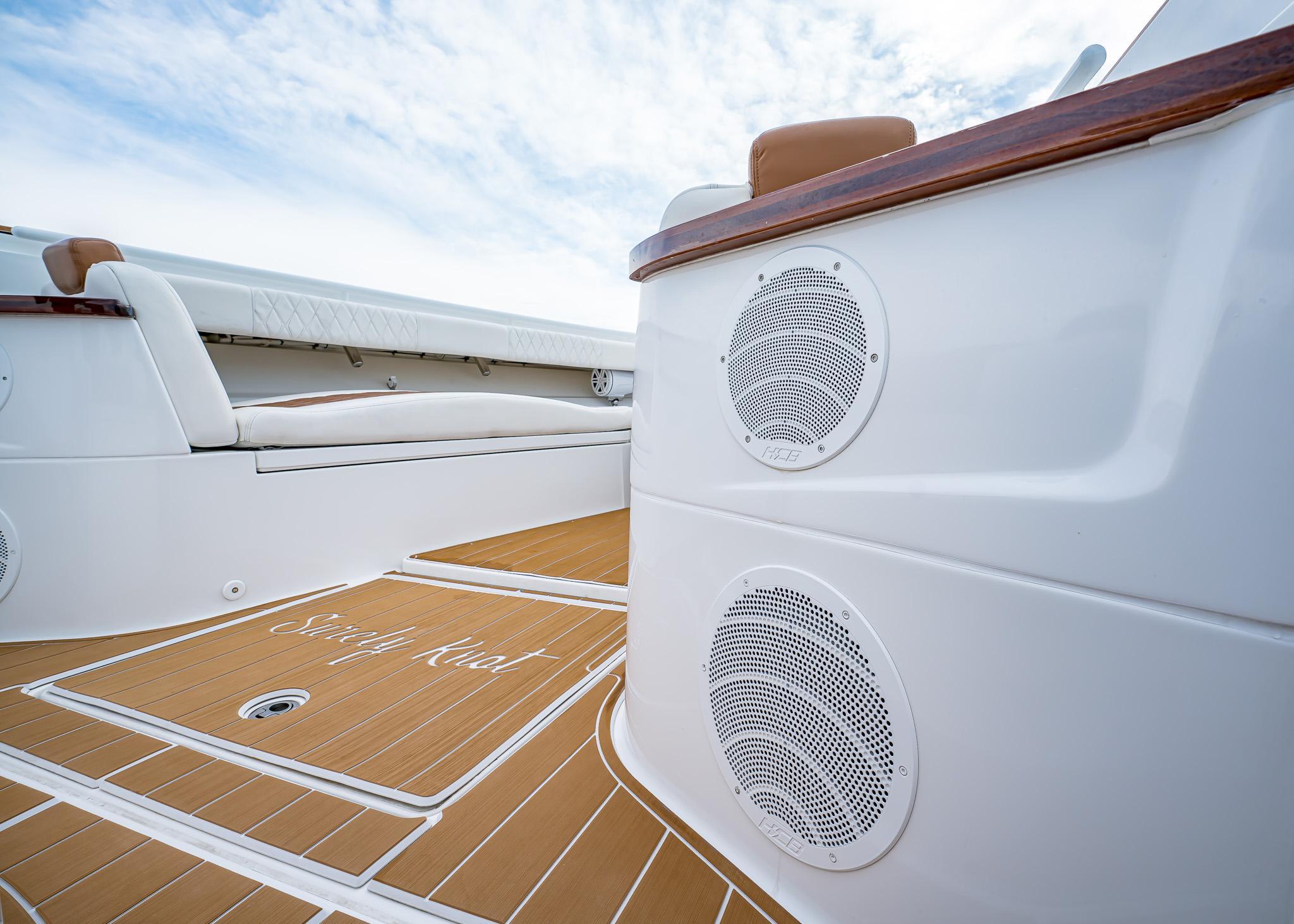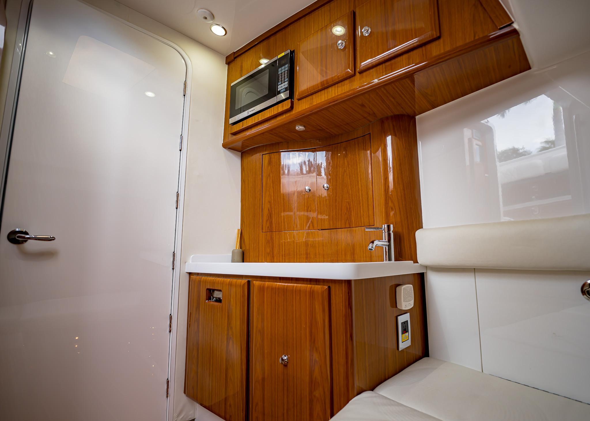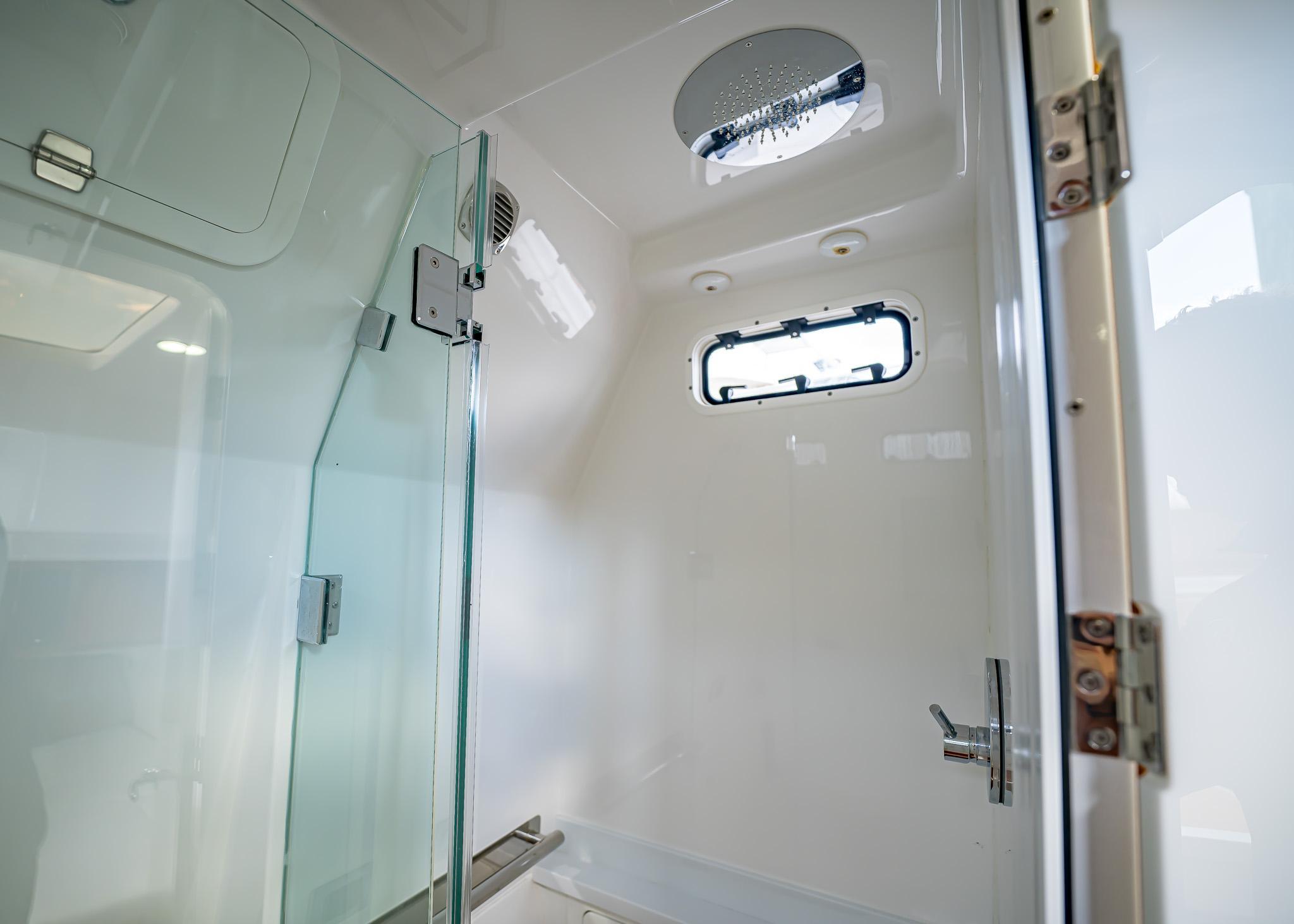 Finally, a large center console yacht with the sophisticated design to perfectly balance speed, ride, comfort, and all of the luxury of your “dream” yacht. The bow area is dual purpose with seating to accommodate guests on the forward-facing lounger or around bow seats and table that convert to a large sun pad for lazy days catching rays; or remove the cushions for a fully functional fishing platform. The luxuriously functional cabin with queen sized berth, storage galore, galley kitchen, and separate head/shower compartment is the perfect place for air-conditioned comfort on hot days as well as longer trips with overnight stays. An automotive inspired helm station allows the captain to be fully aware of the surroundings while staying in tune with the endless functionality on-board including: charts and navigation, Sea Keeper®, generator, ample stereo system, the quad engine package, and more. For the uncompromising, the Sueños will satisfy any experience you can imagine, and take you places few other Center Console Yachts dream to embark.