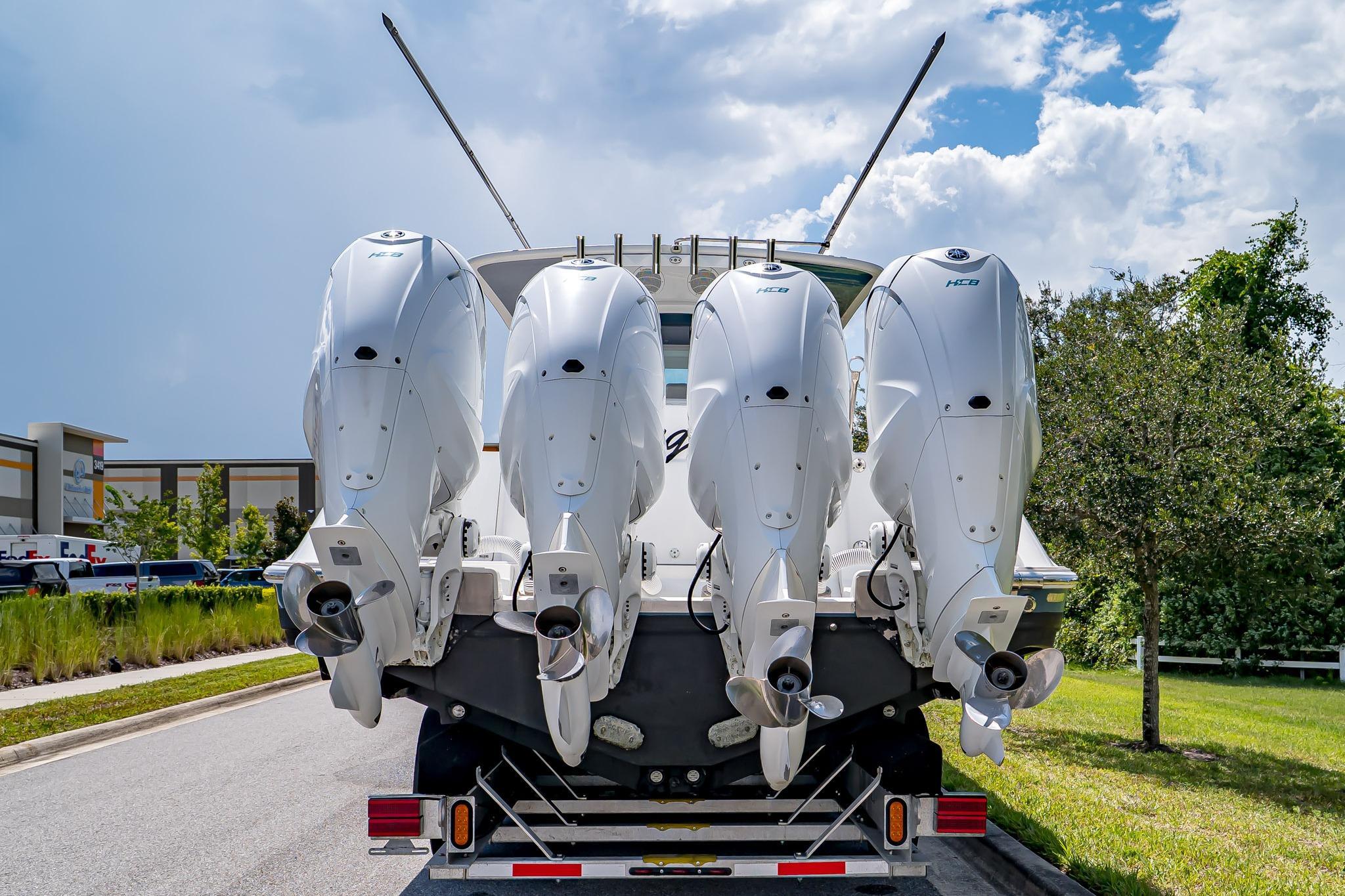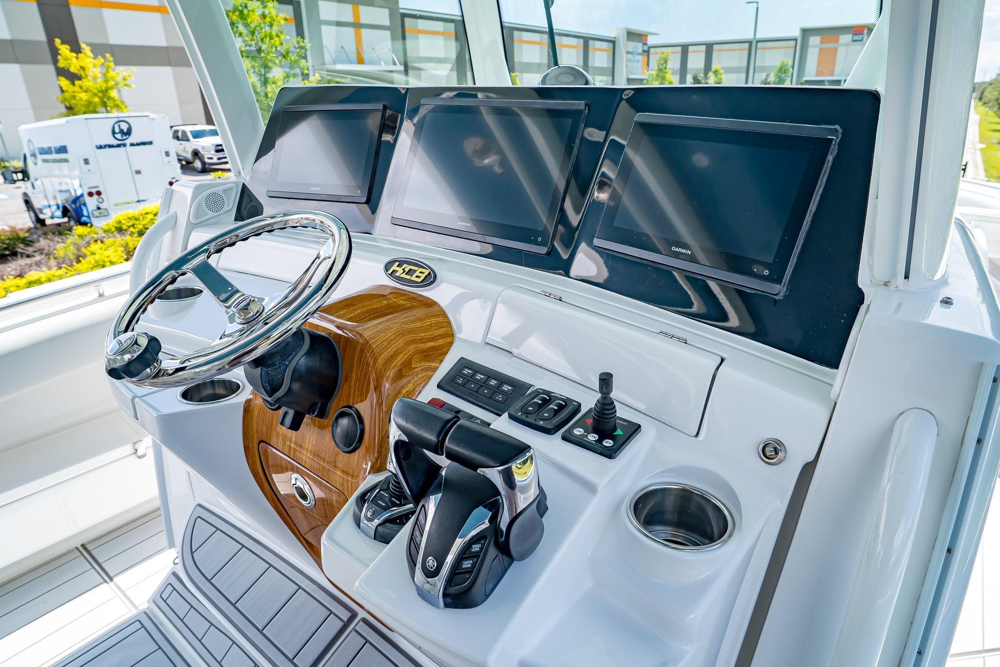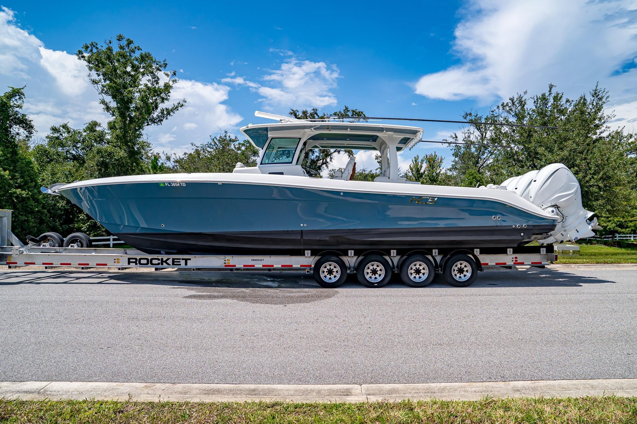 AVAILABLE NOW!2021 HCB 42’ Lujo – Quad Yamaha 425 XTO OutboardsEXTENDED YAMAHA WARRANTY UNTIL 12/19/2026Ready to Fish or Cruise – Excellent ConditionThis stunning 2021 HCB 42’ Lujo delivers the perfect combination of offshore performance, luxurious comfort, and tournament-ready fishing features. Powered by Quad Yamaha 425 XTO Outboard Motors, this vessel offers unmatched speed, handling, and reliability whether you’re chasing pelagics offshore or cruising with family and friends. With a Steel Blue hull, painted engines, and custom-finished details, she turns heads at every marina.Inside, the Lujo features a spacious, climate-controlled cabin with a convertible berth for two, enclosed head with shower, galley with sink and refrigerator, and premium PermaTeek flooring. The helm boasts triple Garmin displays, Garmin autopilot, radar, VHF, and Yamaha Helm Master with joystick control for precision docking.The cockpit is designed for both serious fishing and entertaining, featuring dual 45-gallon pressurized baitwells, refrigerated Frigid Rigid coolers, a summer kitchen with Corian countertop, stainless steel grill, sink, and refrigerator, plus ample seating with U-shaped bow seating, contoured forward lounge, second-row sleigh seating, and foldaway transom seating.Notable Features Include:Quad Yamaha 425 XTO Outboards – Joystick & Set PointPainted Steel Blue Hull & Custom Painted EnginesTriple Garmin Displays (2x 12” & 1x 16”) with 25 KW Open Array Radar, Sounder & Dual Chirp TransducersGEMLUX 18' Carbon Fiber OutriggersStarlink Equipped Satellite Phone Equipped EPIRB Equipped Garmin Autopilot & VHF RadioJL Audio Premium Sound System with Multiple Subs & AmpsDual 45-Gallon Pressurized Baitwells with Sea Chest SystemSide Dive Door with LadderBow ThrusterWindlass with Stainless Anchor, 250’ Chain & 100’ RopeSummer Kitchen – Grill, Sink, Refrigerator & Corian CountertopMultiple Frigid Rigid Coolers – Bow & TransomAir Conditioning in CabinConvertible Cabin Berth / Dinette with Skylight & PortlightsEnclosed Head with Electric Flush Toilet & ShowerRemote Spotlight & Underwater LightingT-Top with Integrated Speakers, Rod Holders & Spreader LightsINCLUDED BUILD SHEET OPTIONS BASE BOAT ENGINE CHOICEYamaha Quad (4) 425 HP MotorsGELCOAT AND PAINT OPTIONSHull Gelcoat Color: STEEL BLUESelect Side Color: STEEL BLUEHardtop Underside Gelcoat Color: STEEL BLUEPainted T-Top Frame: WHITEBow Rails: STAINLESS STEELGELCOAT AND PAINT OPTIONSEngine Paint: GHOST Color Scheme: WHITEHCB Logo Color: STEEL BLUECOCKPIT OPTIONSCockpit Upholstery: WHITE SEA ULSeat Stitch Color: BLUE WAVE SG 213QHeadrest Color: WHITE SEA ULHeadrest Stitch Color: BLUE WAVE SG 213QLadder Backs for Helm Seats: TEAKStandard Cockpit Counter Top: DESIGNER WHITEHelm Pod Color: TEAKRub Rail Accent: WHITECABIN OPTIONSInterior Cabin Upholstery Color: WHITE SEA UL WITH CADET BLUE UL #421-2615 ACCENTSStitching Color: WHITE ON WHITE / BE8 BLUE STITCH ON CADETCustom Solid Wood Interior Cabinetry: TEAKInterior Cabin Flooring: TRADITIONAL DARK BROWN W/ BLACK LINESInterior Cabin Flooring: Upgrade to High Gloss Teak/MapleInterior Cabin Counter Top: DESIGNER WHITEELECTRONICS AND AUDIO SYSTEM OPTIONSStereo Upgrade - Total of Four 6.5" Speakers, Two 7.7" Speakers, Four 8.8" Speakers and Four 10" SubwoofersENHANCEMENTS AND UPGRADESBow Stem LightKahlenberg Dual Air HornUnderwater LightingSpecifications:Length: 41’ 7”Beam: 12’ 2”Weight: 24,000 lbsDead Rise: 23°Fuel Capacity: 614 galFresh Water: 40 galLivewell Capacity: (2) 45 galDraft (Engines Up): 24” | Draft (Down): 34”Bridge Clearance: 10’ 0”This 2021 HCB 42’ Lujo has been meticulously maintained and is turnkey ready for her next owner. Whether your passion is big-game fishing, sandbar hopping, or long-range cruising, the Lujo delivers the ultimate on-water experience.
