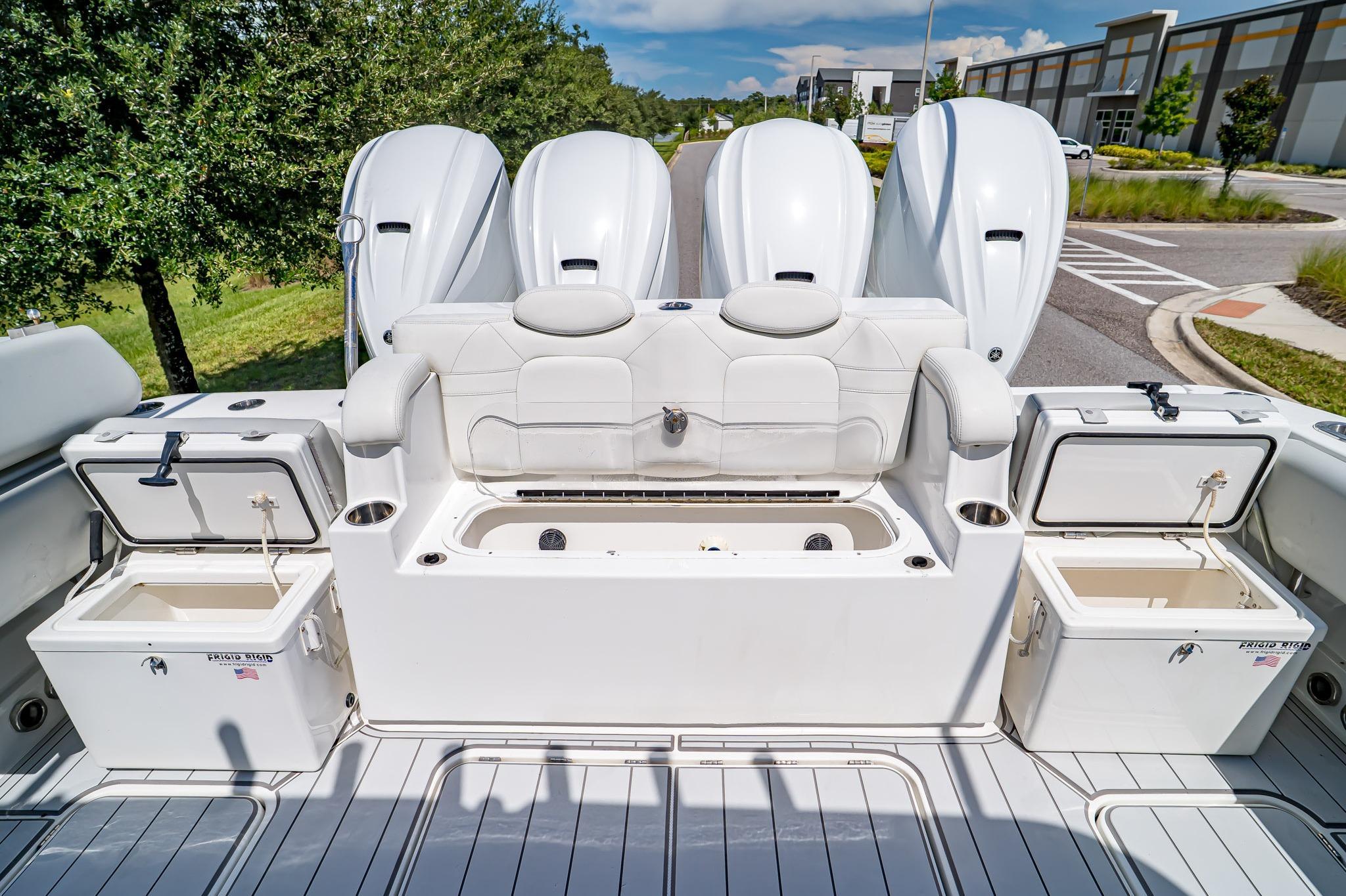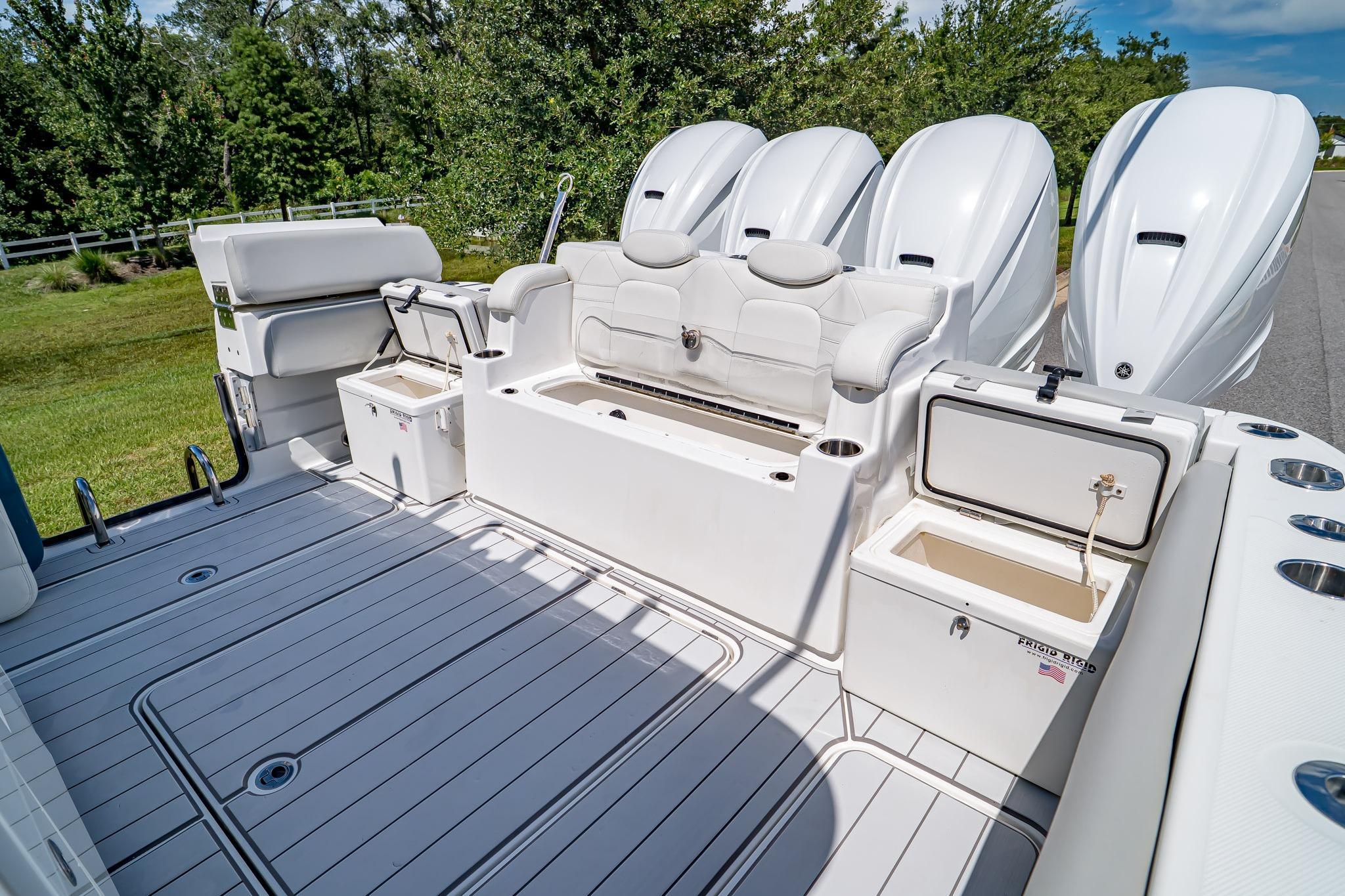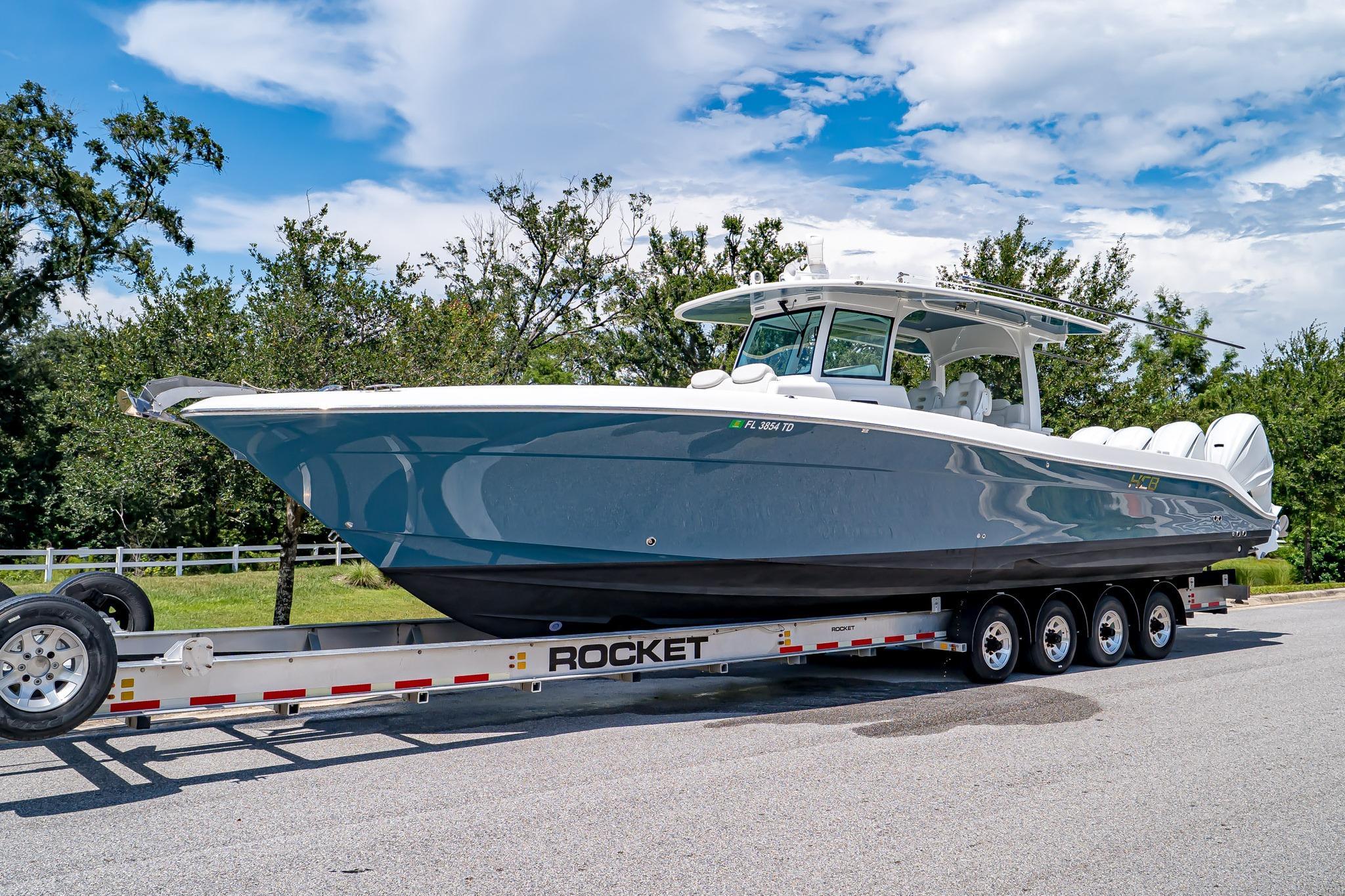 AVAILABLE NOW!2021 HCB 42’ Lujo – Quad Yamaha 425 XTO OutboardsEXTENDED YAMAHA WARRANTY UNTIL 12/19/2026Ready to Fish or Cruise – Excellent ConditionThis stunning 2021 HCB 42’ Lujo delivers the perfect combination of offshore performance, luxurious comfort, and tournament-ready fishing features. Powered by Quad Yamaha 425 XTO Outboard Motors, this vessel offers unmatched speed, handling, and reliability whether you’re chasing pelagics offshore or cruising with family and friends. With a Steel Blue hull, painted engines, and custom-finished details, she turns heads at every marina.Inside, the Lujo features a spacious, climate-controlled cabin with a convertible berth for two, enclosed head with shower, galley with sink and refrigerator, and premium PermaTeek flooring. The helm boasts triple Garmin displays, Garmin autopilot, radar, VHF, and Yamaha Helm Master with joystick control for precision docking.The cockpit is designed for both serious fishing and entertaining, featuring dual 45-gallon pressurized baitwells, refrigerated Frigid Rigid coolers, a summer kitchen with Corian countertop, stainless steel grill, sink, and refrigerator, plus ample seating with U-shaped bow seating, contoured forward lounge, second-row sleigh seating, and foldaway transom seating.Notable Features Include:Quad Yamaha 425 XTO Outboards – Joystick & Set PointPainted Steel Blue Hull & Custom Painted EnginesTriple Garmin Displays (2x 12” & 1x 16”) with 25 KW Open Array Radar, Sounder & Dual Chirp TransducersGEMLUX 18' Carbon Fiber OutriggersStarlink Equipped Satellite Phone Equipped EPIRB Equipped Garmin Autopilot & VHF RadioJL Audio Premium Sound System with Multiple Subs & AmpsDual 45-Gallon Pressurized Baitwells with Sea Chest SystemSide Dive Door with LadderBow ThrusterWindlass with Stainless Anchor, 250’ Chain & 100’ RopeSummer Kitchen – Grill, Sink, Refrigerator & Corian CountertopMultiple Frigid Rigid Coolers – Bow & TransomAir Conditioning in CabinConvertible Cabin Berth / Dinette with Skylight & PortlightsEnclosed Head with Electric Flush Toilet & ShowerRemote Spotlight & Underwater LightingT-Top with Integrated Speakers, Rod Holders & Spreader LightsINCLUDED BUILD SHEET OPTIONS BASE BOAT ENGINE CHOICEYamaha Quad (4) 425 HP MotorsGELCOAT AND PAINT OPTIONSHull Gelcoat Color: STEEL BLUESelect Side Color: STEEL BLUEHardtop Underside Gelcoat Color: STEEL BLUEPainted T-Top Frame: WHITEBow Rails: STAINLESS STEELGELCOAT AND PAINT OPTIONSEngine Paint: GHOST Color Scheme: WHITEHCB Logo Color: STEEL BLUECOCKPIT OPTIONSCockpit Upholstery: WHITE SEA ULSeat Stitch Color: BLUE WAVE SG 213QHeadrest Color: WHITE SEA ULHeadrest Stitch Color: BLUE WAVE SG 213QLadder Backs for Helm Seats: TEAKStandard Cockpit Counter Top: DESIGNER WHITEHelm Pod Color: TEAKRub Rail Accent: WHITECABIN OPTIONSInterior Cabin Upholstery Color: WHITE SEA UL WITH CADET BLUE UL #421-2615 ACCENTSStitching Color: WHITE ON WHITE / BE8 BLUE STITCH ON CADETCustom Solid Wood Interior Cabinetry: TEAKInterior Cabin Flooring: TRADITIONAL DARK BROWN W/ BLACK LINESInterior Cabin Flooring: Upgrade to High Gloss Teak/MapleInterior Cabin Counter Top: DESIGNER WHITEELECTRONICS AND AUDIO SYSTEM OPTIONSStereo Upgrade - Total of Four 6.5" Speakers, Two 7.7" Speakers, Four 8.8" Speakers and Four 10" SubwoofersENHANCEMENTS AND UPGRADESBow Stem LightKahlenberg Dual Air HornUnderwater LightingSpecifications:Length: 41’ 7”Beam: 12’ 2”Weight: 24,000 lbsDead Rise: 23°Fuel Capacity: 614 galFresh Water: 40 galLivewell Capacity: (2) 45 galDraft (Engines Up): 24” | Draft (Down): 34”Bridge Clearance: 10’ 0”This 2021 HCB 42’ Lujo has been meticulously maintained and is turnkey ready for her next owner. Whether your passion is big-game fishing, sandbar hopping, or long-range cruising, the Lujo delivers the ultimate on-water experience.