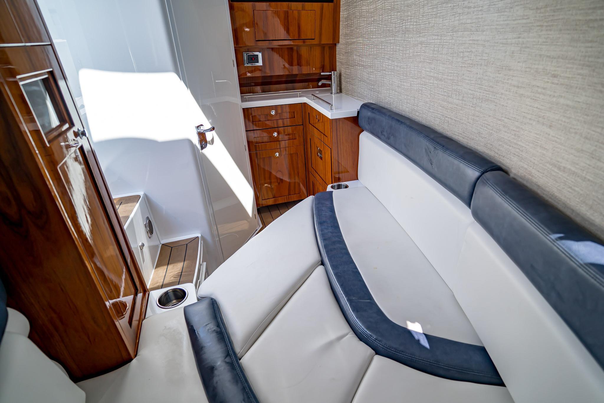 The entire helm station has been redesigned to deliver our Sueños seating comfort standards that leads the way in the industry. For the confident, our redesigned cabin and other features amply spread throughout the bow and cockpit, make this Lujo a choice that matches everyone’s needs and desires.