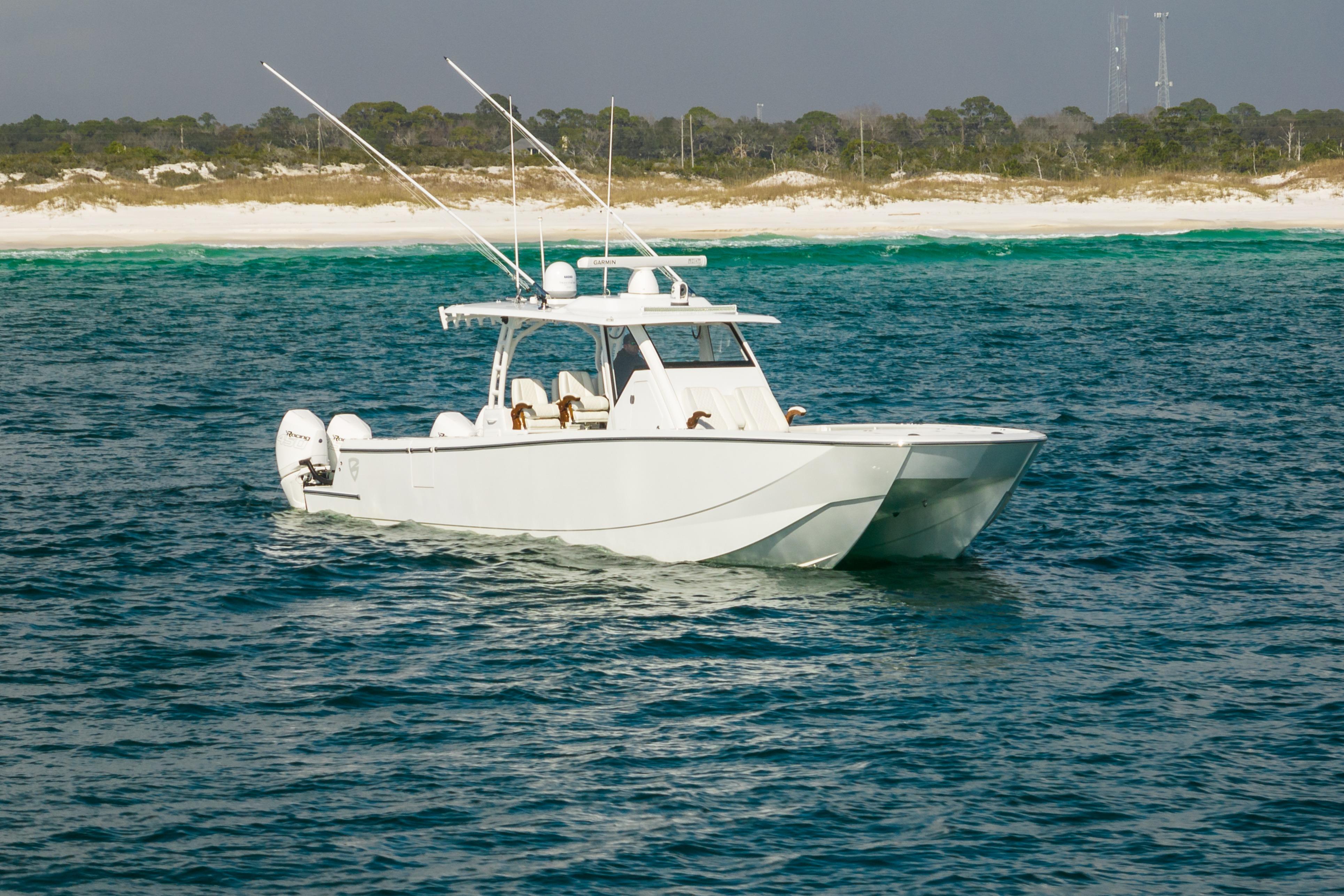 2021 Barker Boatworks 40HPC – SLOWMOCEANThis 2021 Barker 40HPC is a true one-of-a-kind, optioned like a sportfisher yet delivering the speed and efficiency only a high-performance catamaran can provide. Powered by quad Mercury Racing 450Rs, she combines blistering performance with the versatility and comfort serious anglers and families demand.Meticulous factory maintained, this 40HPC has been kept to the highest standards. Outfitted with premium options throughout, she’s turnkey and ready to go—whether you’re chasing billfish offshore, tournament fishing, or enjoying a weekend cruise with the family. Key Features:Quad Mercury 450R Engines Optimus Autopilot & JoystickRelease Marine Teak Package UpgradeTeakdecking Upgrade at Helm and in Head Compartment (2) Garmin 8624 MFDFLIR M332 w/ Joystick ControlTracVision TV3 Satellite Dome AntennaGarmin GMR Phantom 6' Open Array RadarAirmar R111LH 2KW In-Hull TransducerRefrigerated Fwd Lounge TubJL Audio Entertainment System Dual-Row with 3 Abreast Release Marine Teak Helm ChairsDual-Row Deluxe Hard TopBlack Oak 50” LED Light BarDual 22' Gemlux Internal Carbon Fiber Outriggers (2) 65 qt. Pull Coolers (2) Frigid Rigid 784qt Fish Boxes(2) Frigid Rigid 544qt Fish BoxesDual Dive Doors w/ Integrated Ladders(7) XL Tuna Tubes in Leaningpost(2) 55gal Transom Livewells(2) 55gal Floor Livewells(2) Hooker Marine Sea Chests with (4) 4500 GPH Variable Speed Pumps (4) Electric Reel PlugsElectric Marine HeadSiren Marine Security/Monitoring SystemReverso Engine Flush SystemForward Shade w/ Carbon Fiber PolesShadowcaster LED/RGB Lighting PackageSmart Plug Shorepower SystemThis one-of-a-kind 2021 Barker 40HPC truly has it all—tournament-level fishability, luxury finishes, and unrivaled high-performance capability. Priced to sell, there is simply no greater value on the market today.