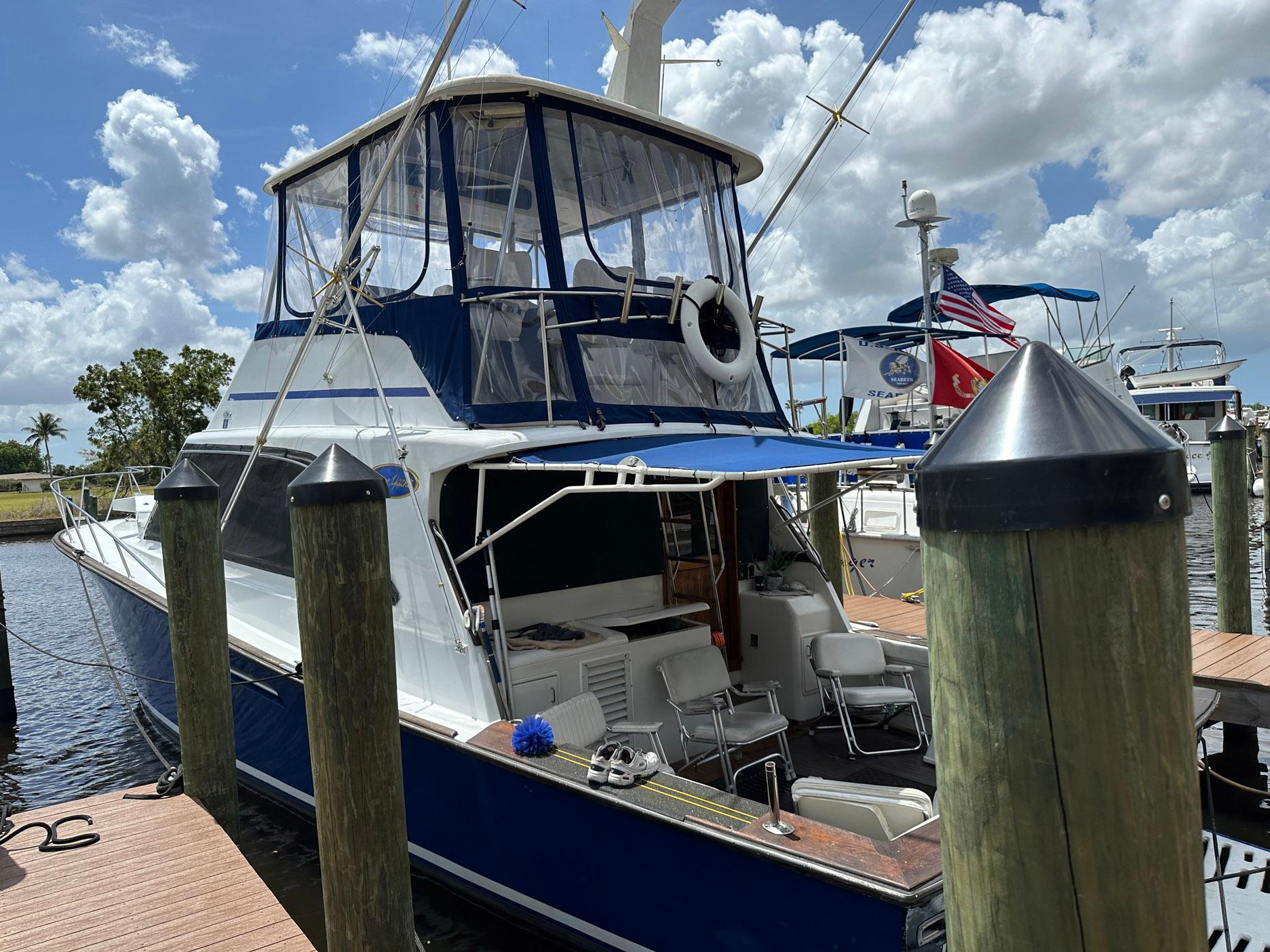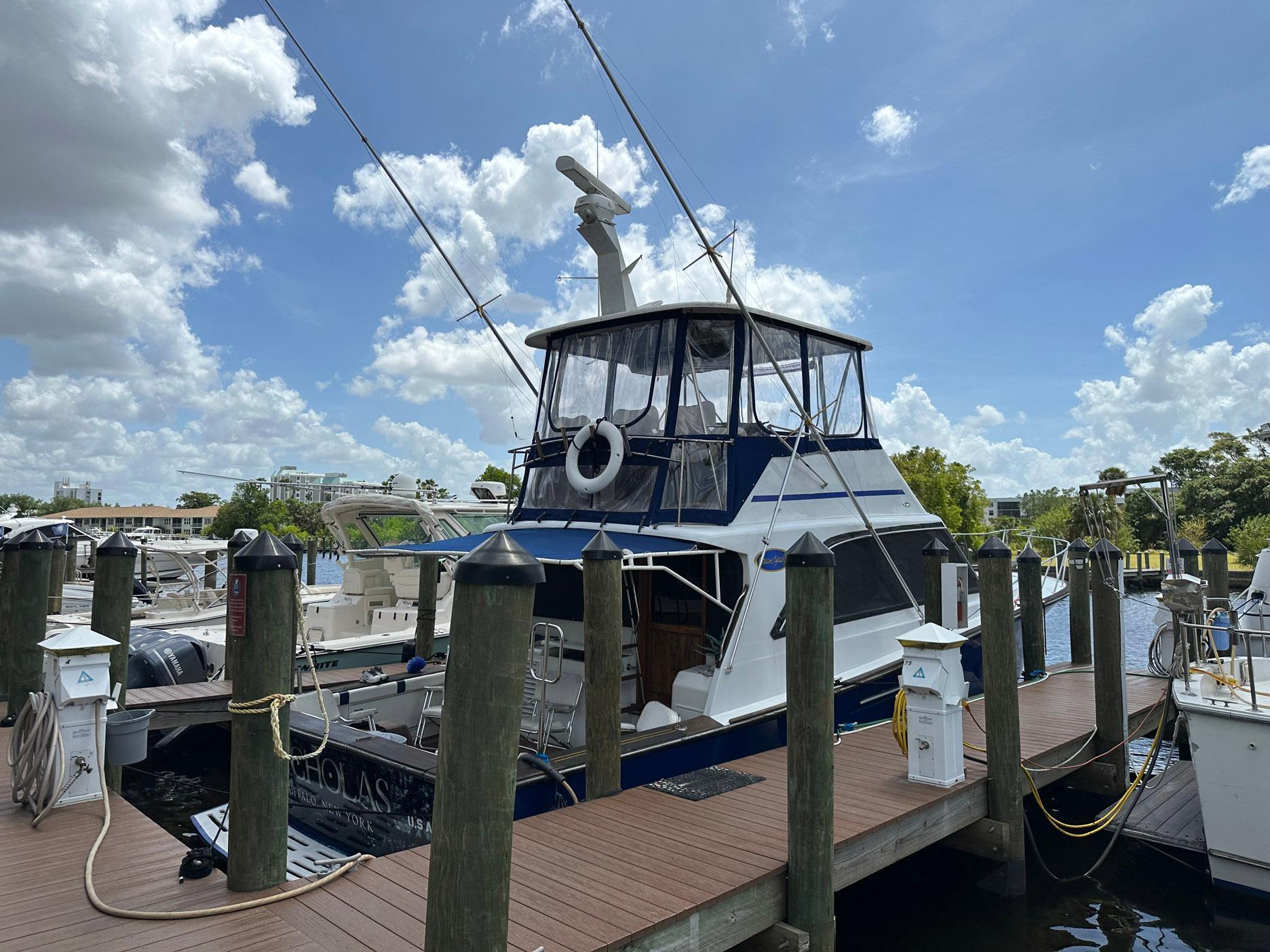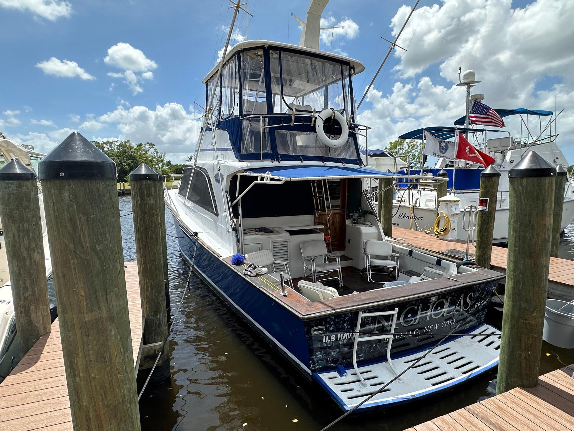 The 48 Ocean provides performance in an affordable Sport Fish. "Nicholas" is powered with twin low hour 6-71 Detroit Diesels at 485 HP each which provide an 18 to 22 knot cruise. Her bow thruster makes docking easy in tight quarters. The vessel features three staterooms with two head layout, with a mid-galley and large salon.