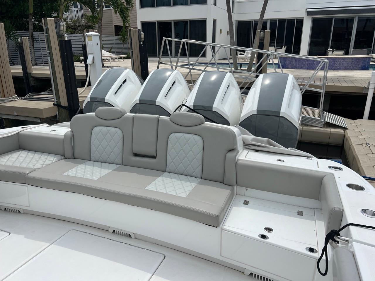 - Aft-Facing Seating with (3) drawer beverage fridges