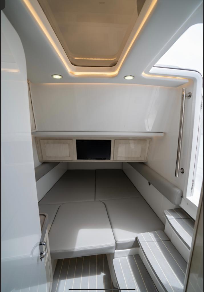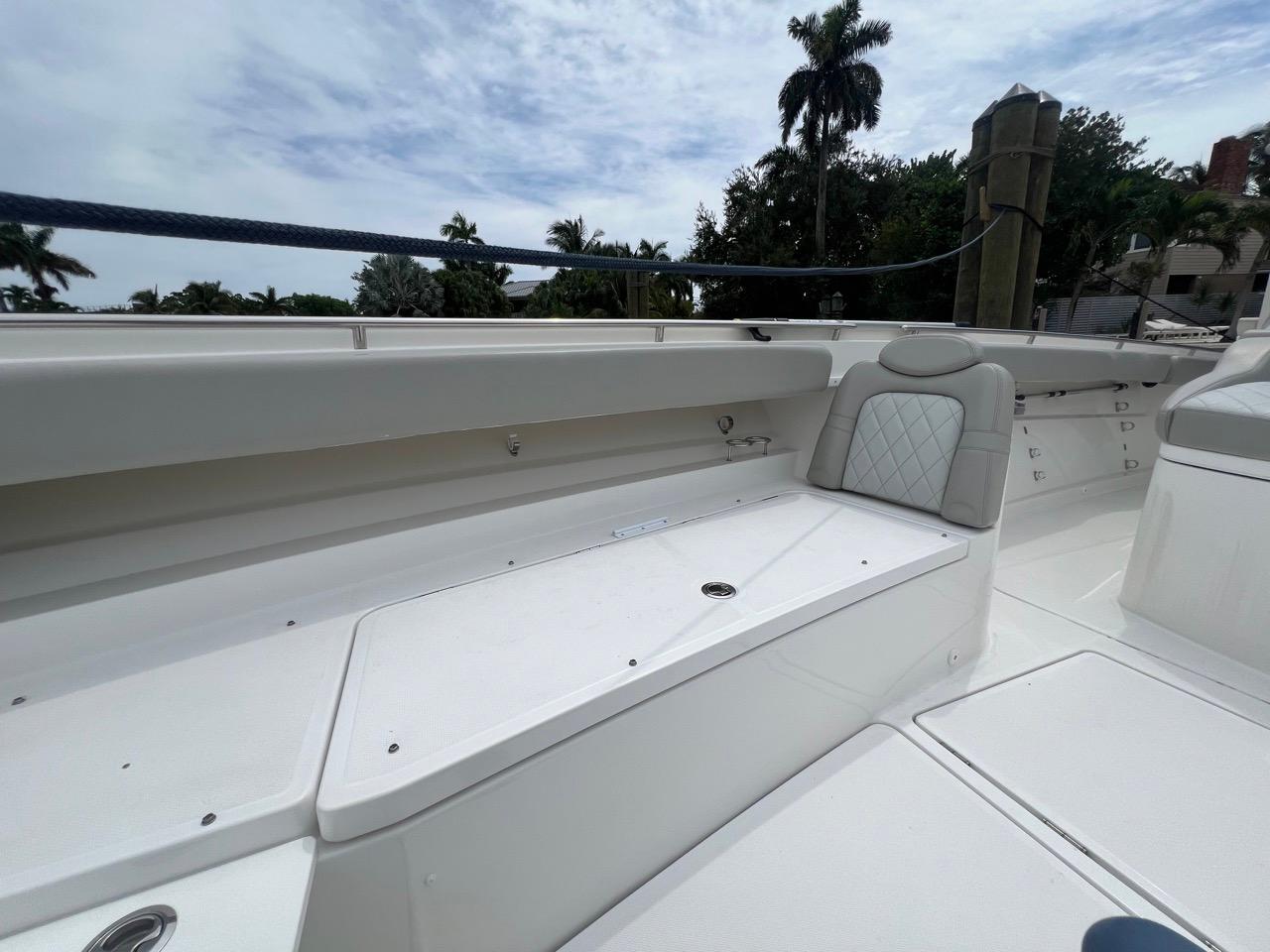 - Transom Center In-Deck Seakeeper & Generator Access with ample storage