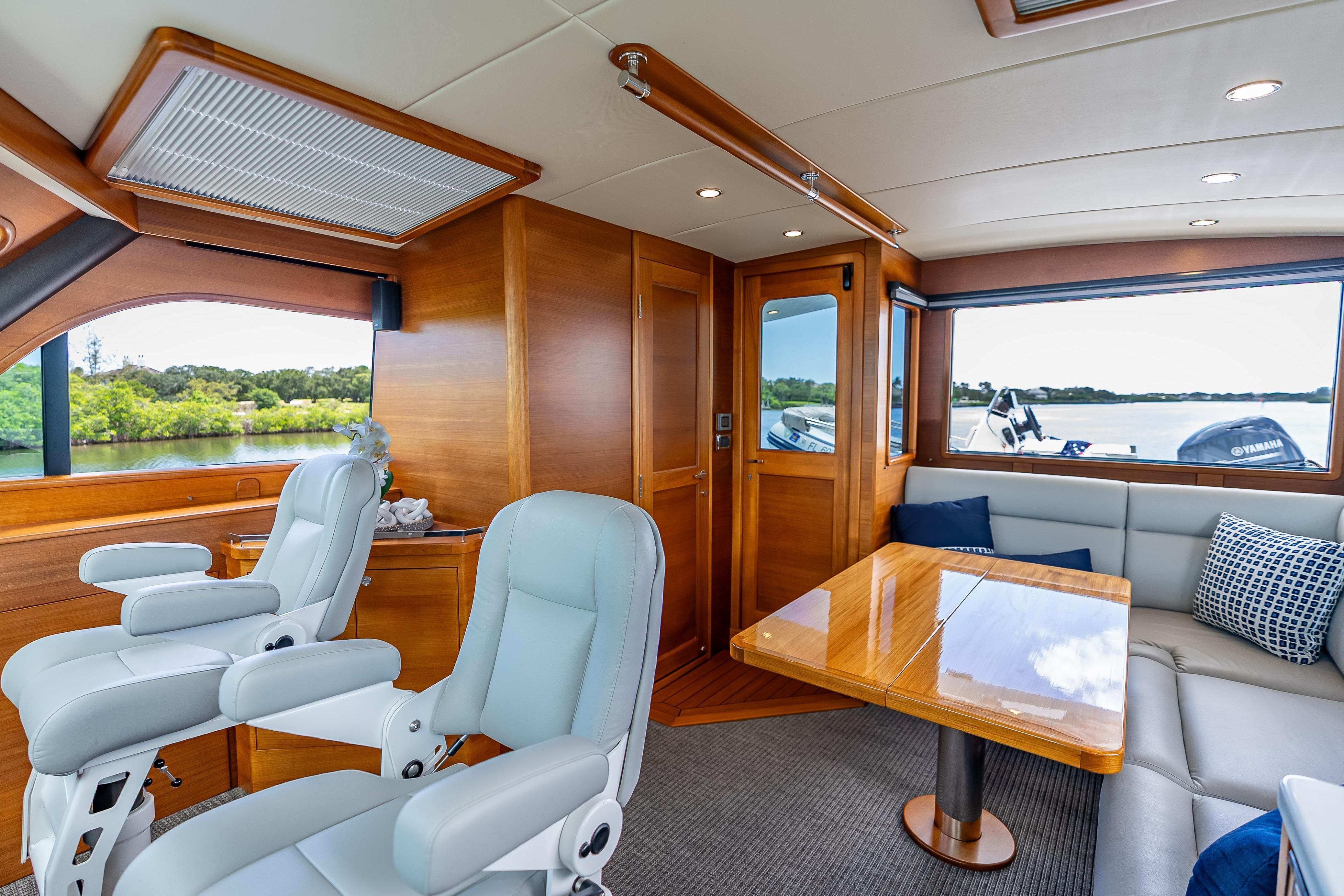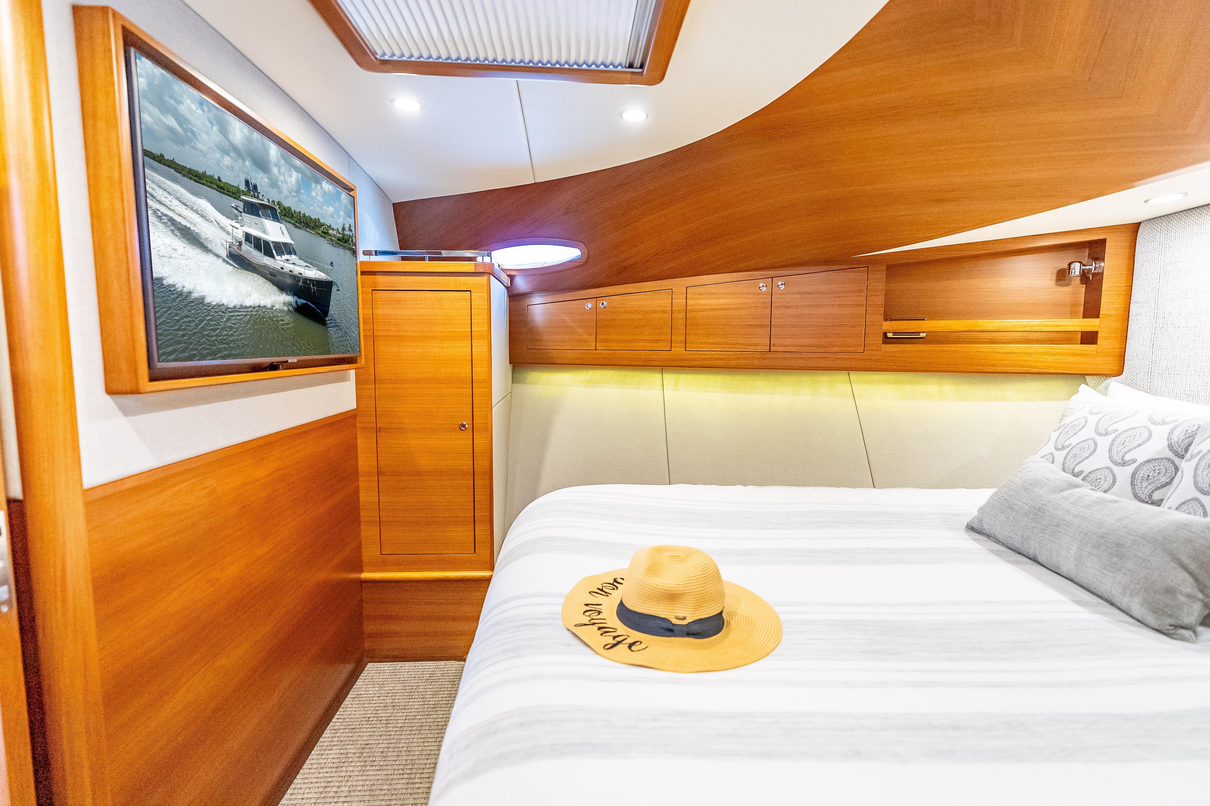 - Flooring: Teak in Salon, Galley, Helm Area, Companionway, Master Stateroom (inboard area), Forward VIP Stateroom, and Heads