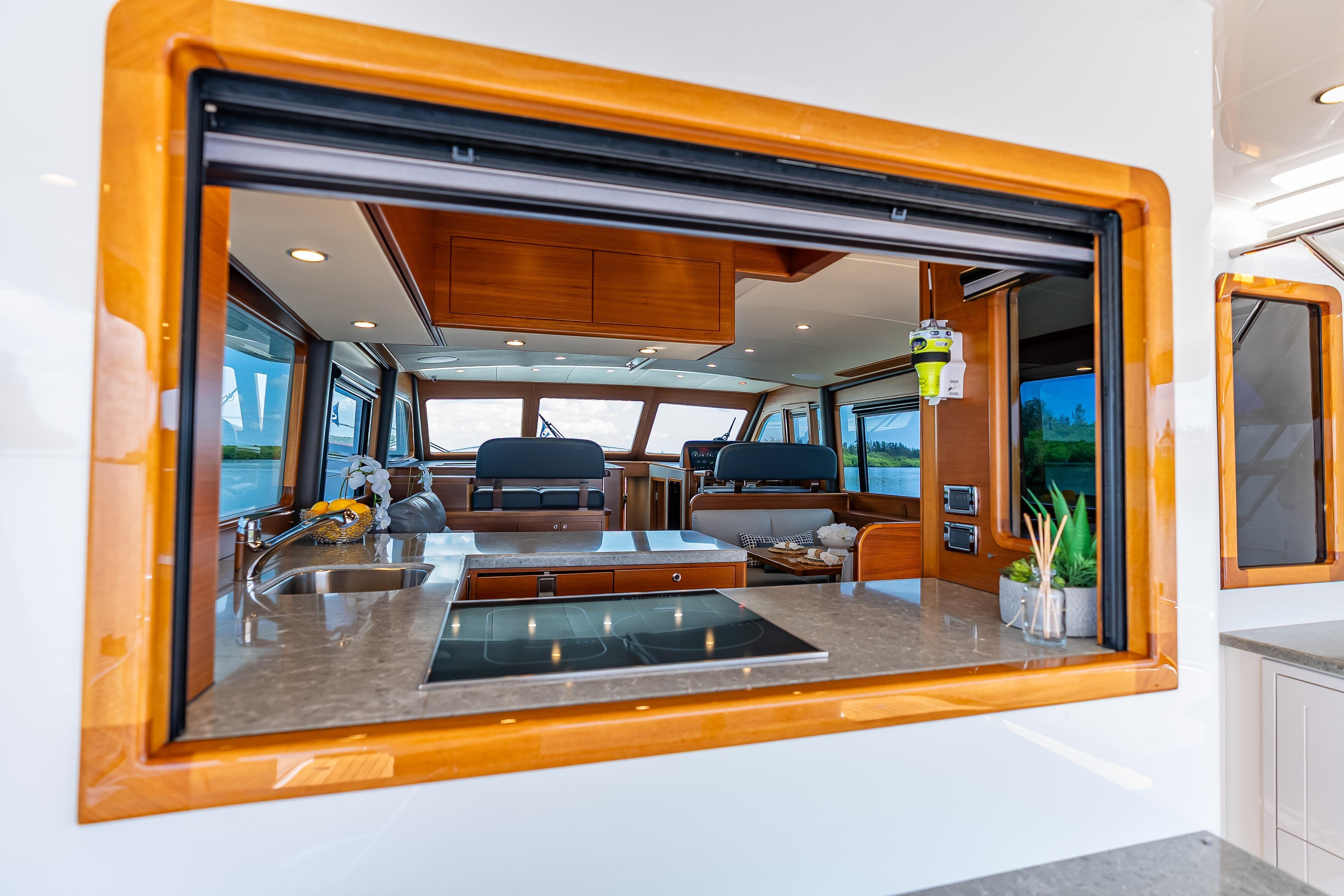 - Countertops: Silestone: "Ocean Jasper" in Galley & Cockpit; "Desert Silver" in Flybridge/Skylounge & Heads