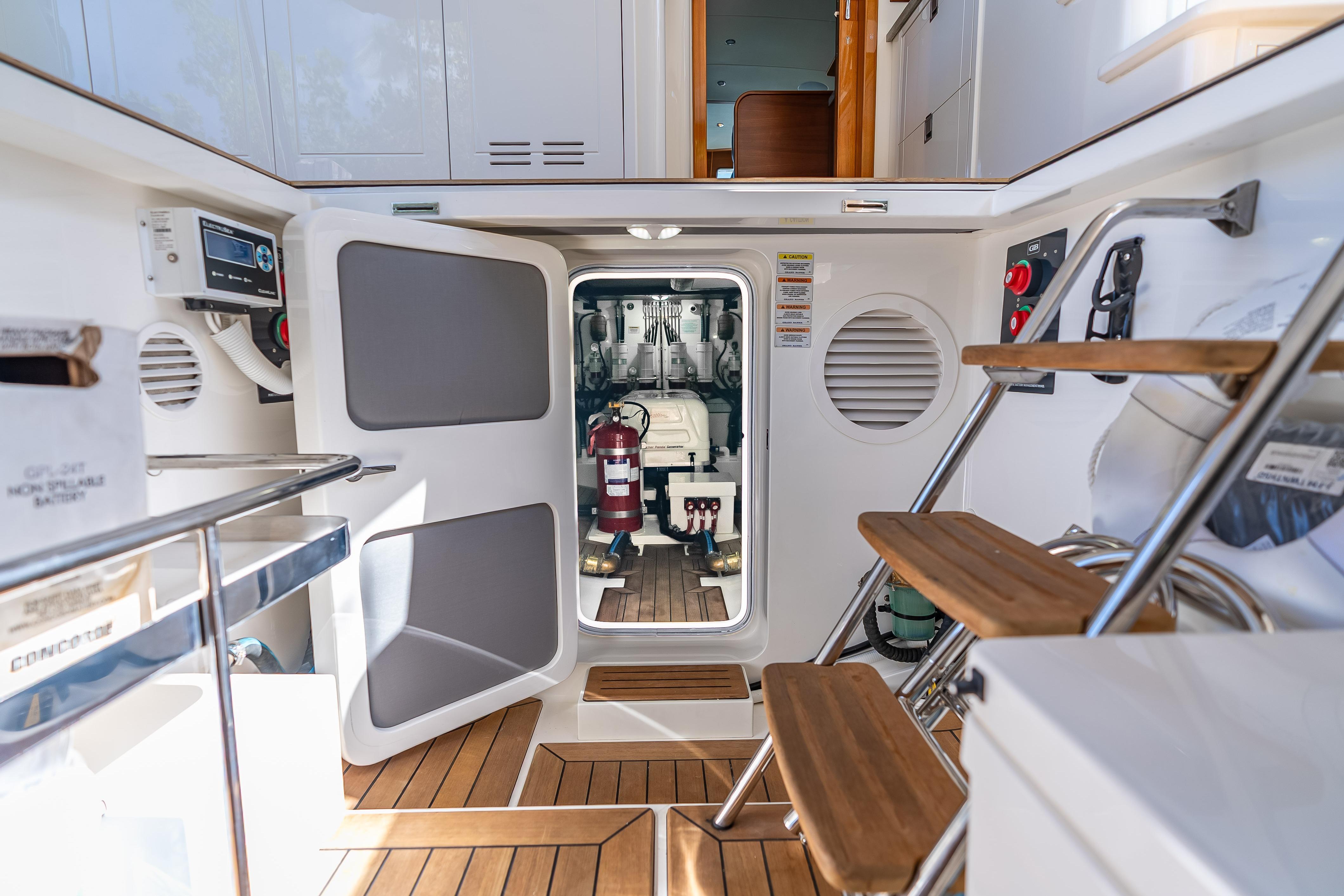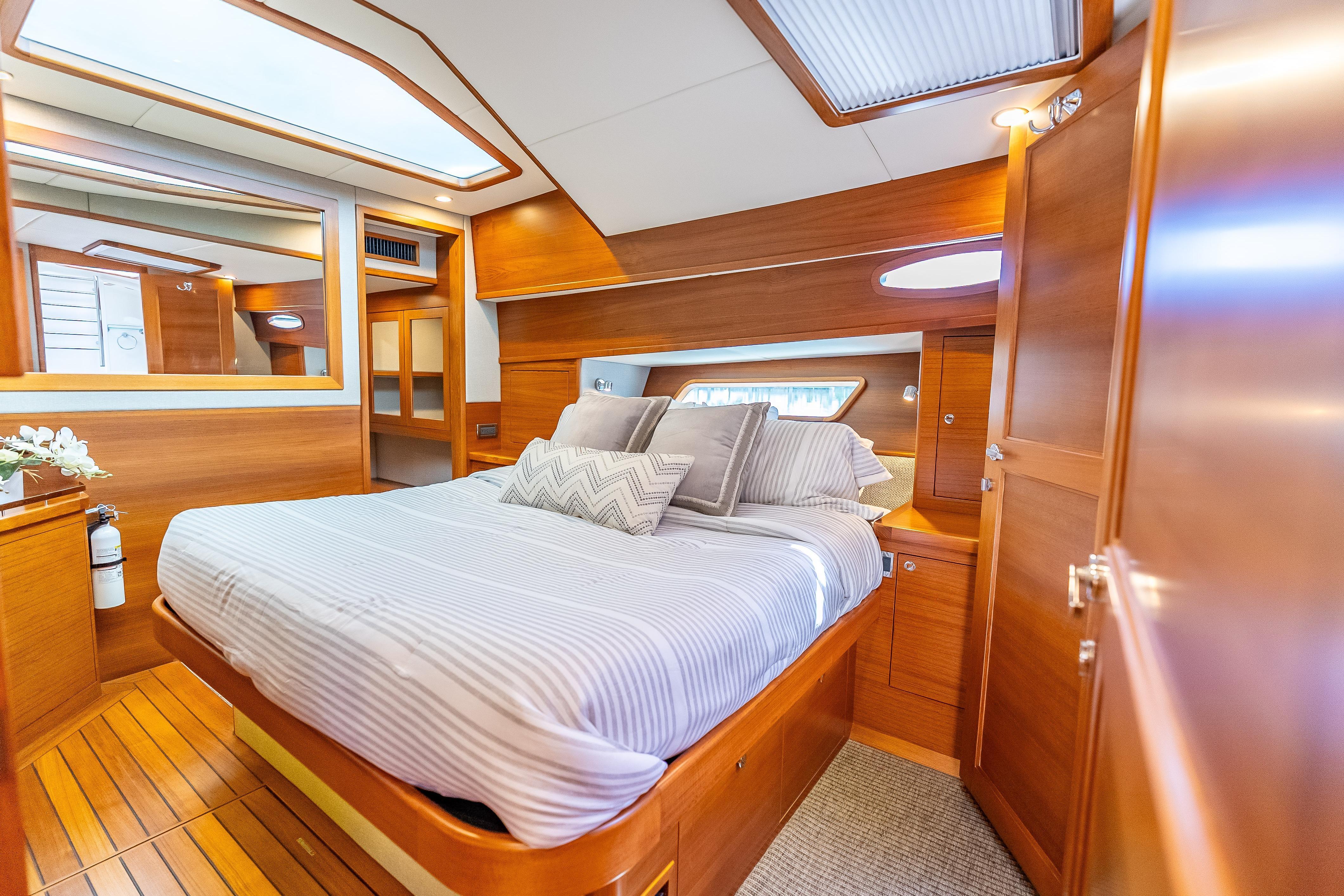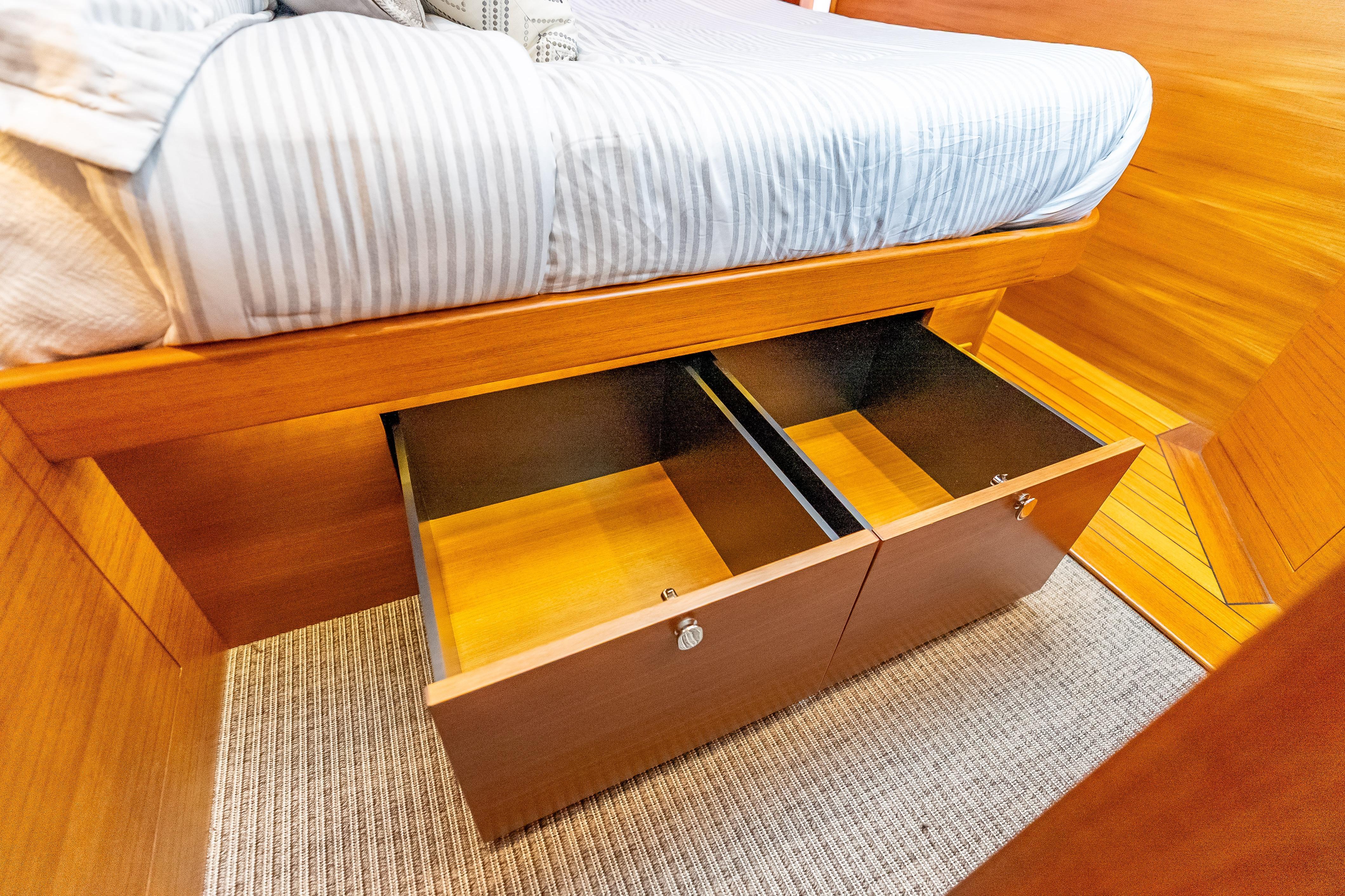 - Custom Additional Storage: Bilges under fwd stateroom w/ 2x Olcese Ricci watertight hatch; storage under fore-aft lounge settees; storage in stbd stateroom; storage under sole storage hatch (inboard) w/gas strut in master stateroom, Custom Upgrade