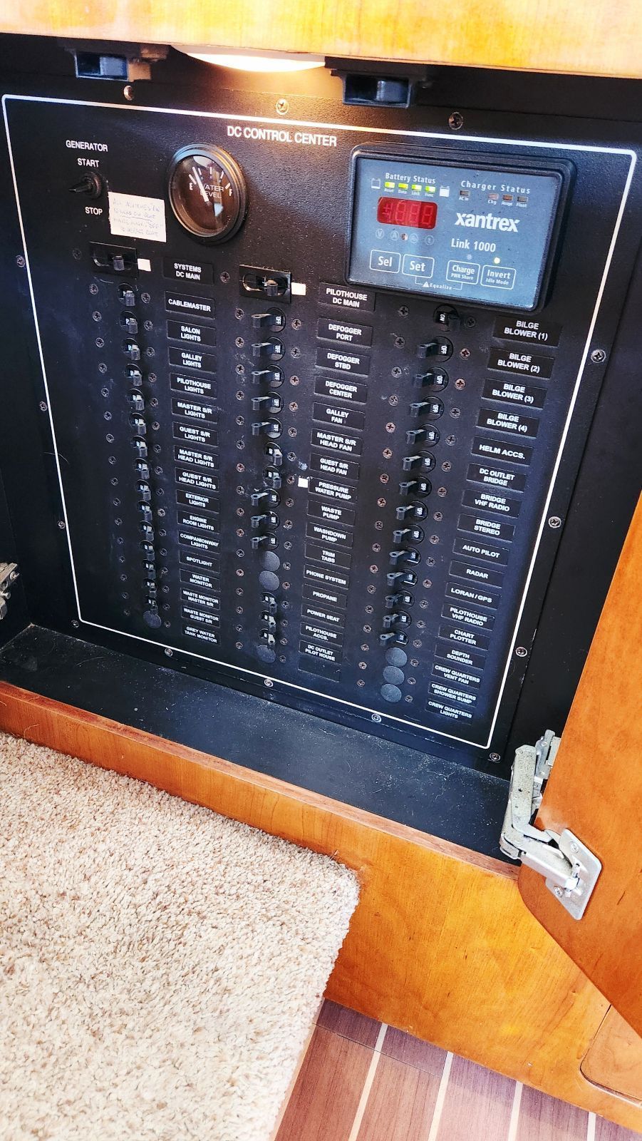 The electrical system aboard Kateri Marie has been thoughtfully designed and upgraded to deliver dependable power for both extended cruising and comfortable liveaboard use. With carefully separated battery banks and multiple charging sources, she’s equipped to handle life at the dock, long passages, or quiet nights at anchor.