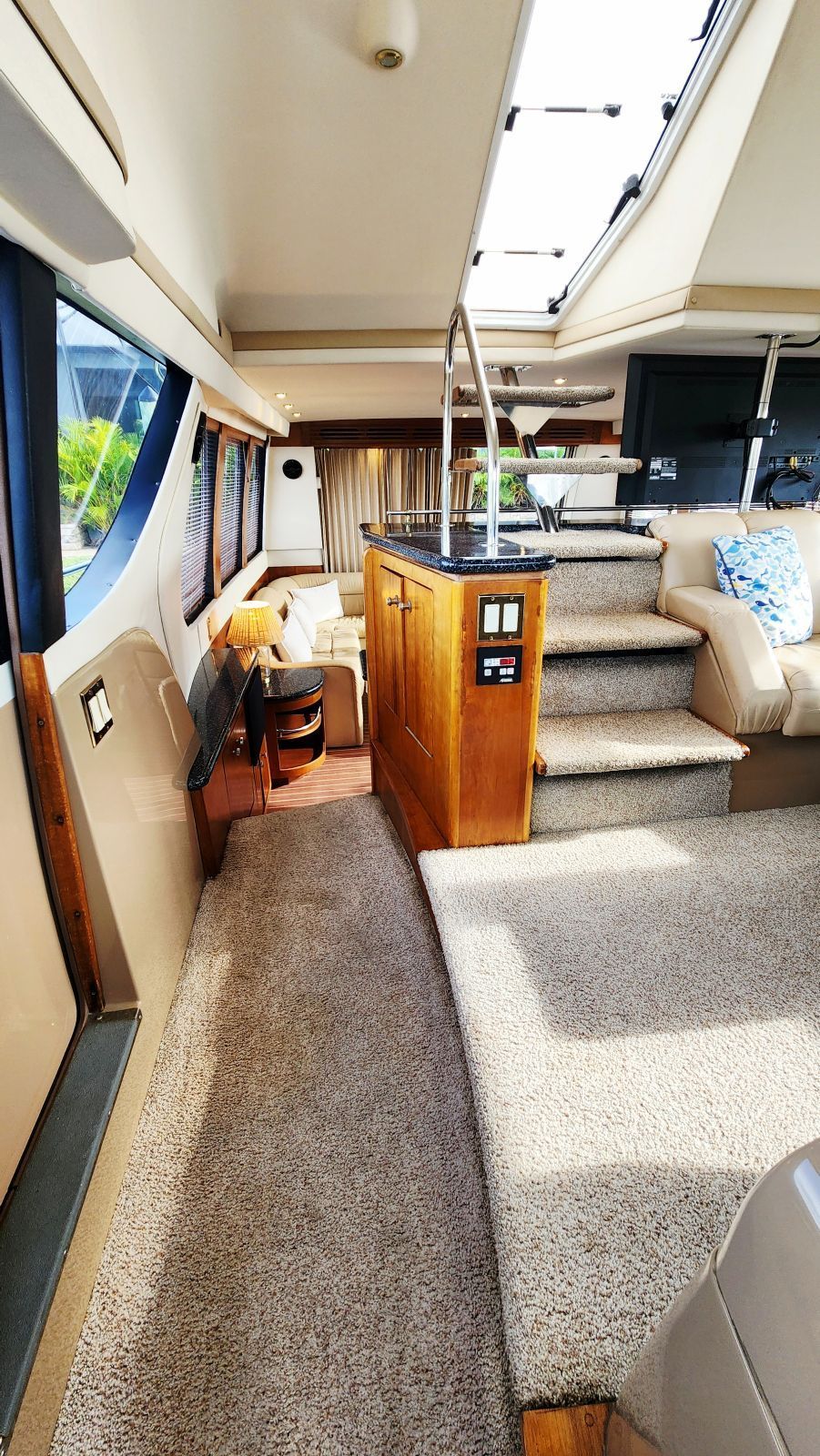 Whether you’re logging steady miles on the ICW, docking with precision in a tight harbor, or gathering for sunset cocktails with a view, the pilothouse and upper salon aboard Kateri Marie deliver the perfect balance of comfort, control, and style. Carver 530 Companionway