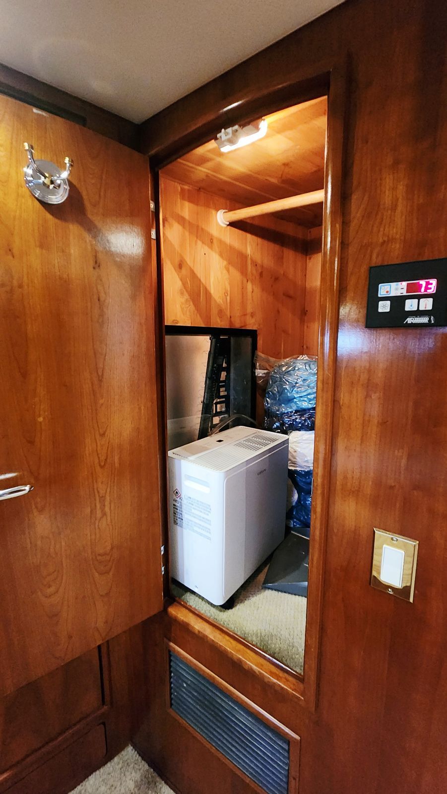 Cold storage is more than covered with separate under-counter refrigerator and freezer units, plus the rebuilt SubZero freezer that ensures long-term reliability on extended voyages. A GE trash compactor helps streamline waste management, keeping the space tidy and minimizing trips ashore.