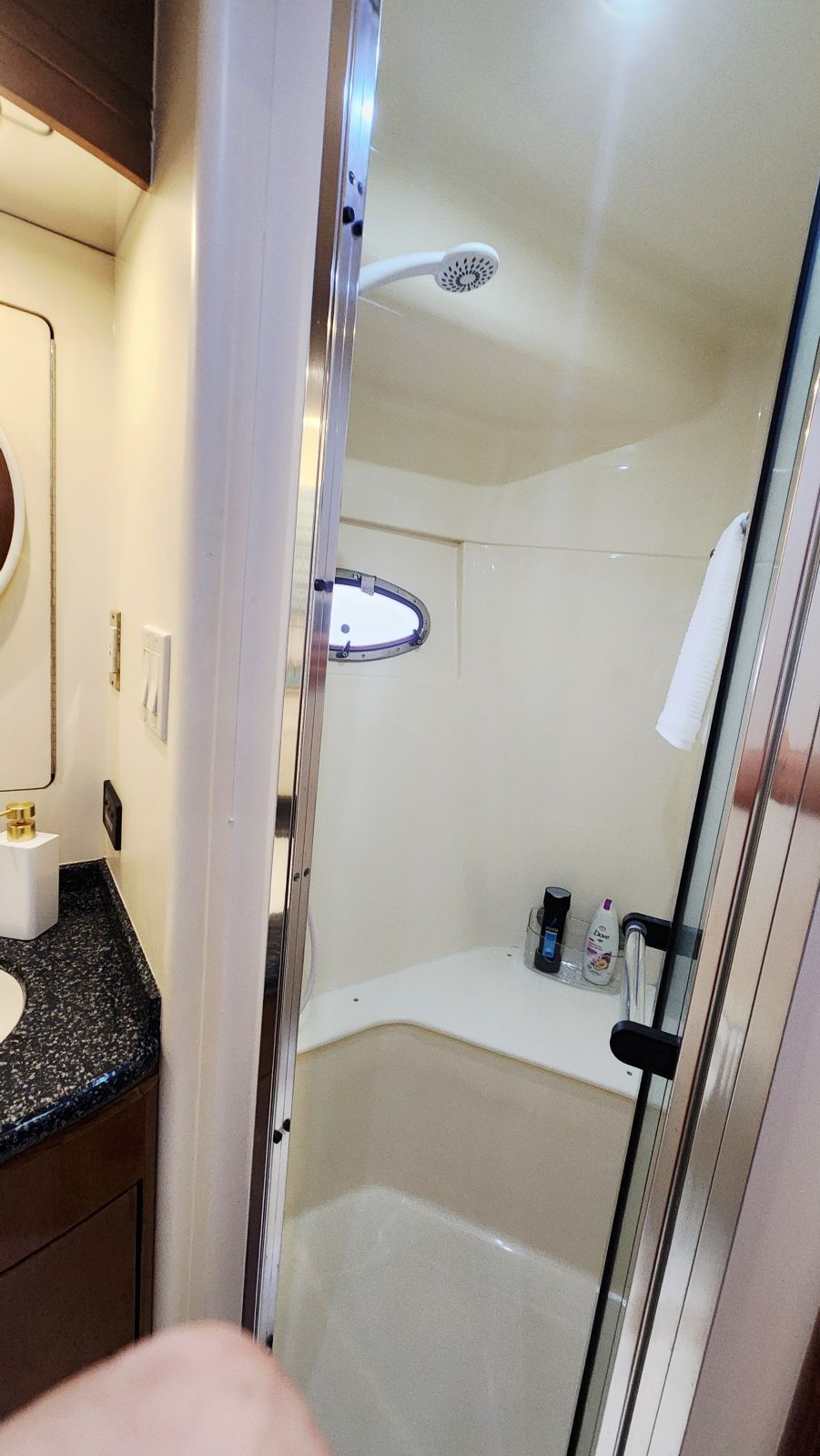 The ensuite master head aboard Kateri Marie is a private, well-appointed space designed with both functionality and comfort in mind. Just steps from the master berth, it provides the convenience of home paired with the refined finishes expected aboard a yacht of this caliber.