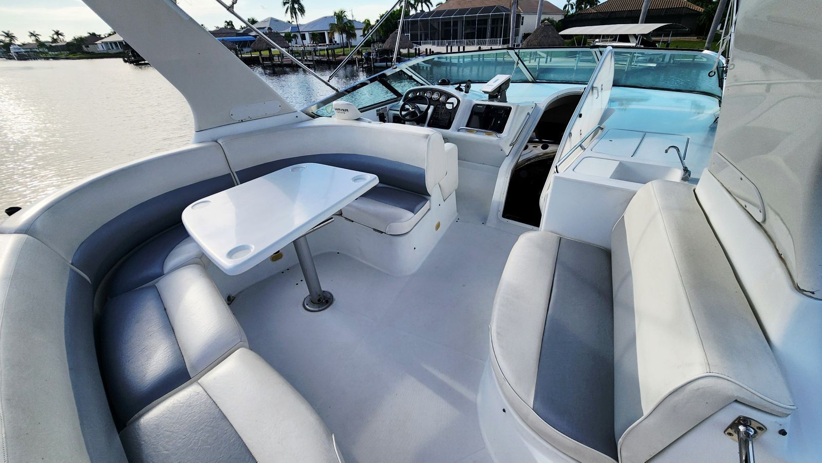 Generous wraparound seating makes this space as social as it is functional. With all-new cushions and a layout that encourages conversation, there’s plenty of room for family and friends to gather in comfort while still giving the captain clear sightlines and easy access to all controls.