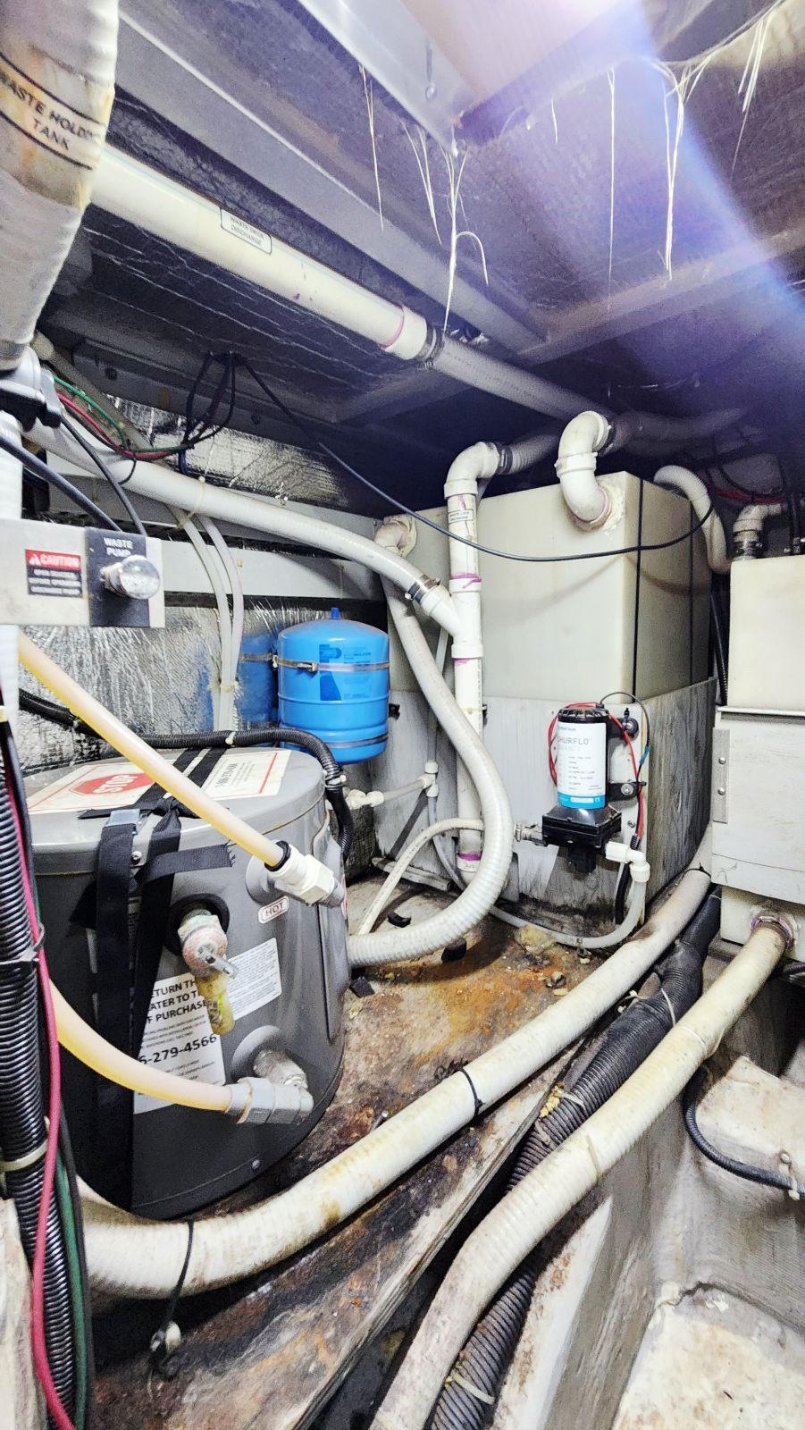 The plumbing system aboard Kateri Marie has been designed and maintained with the needs of extended cruising in mind, offering dependable freshwater delivery, efficient hot water supply, and reliable waste management for life on the water.