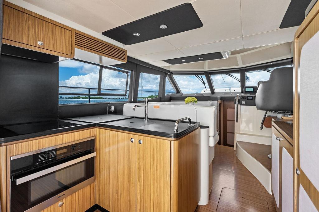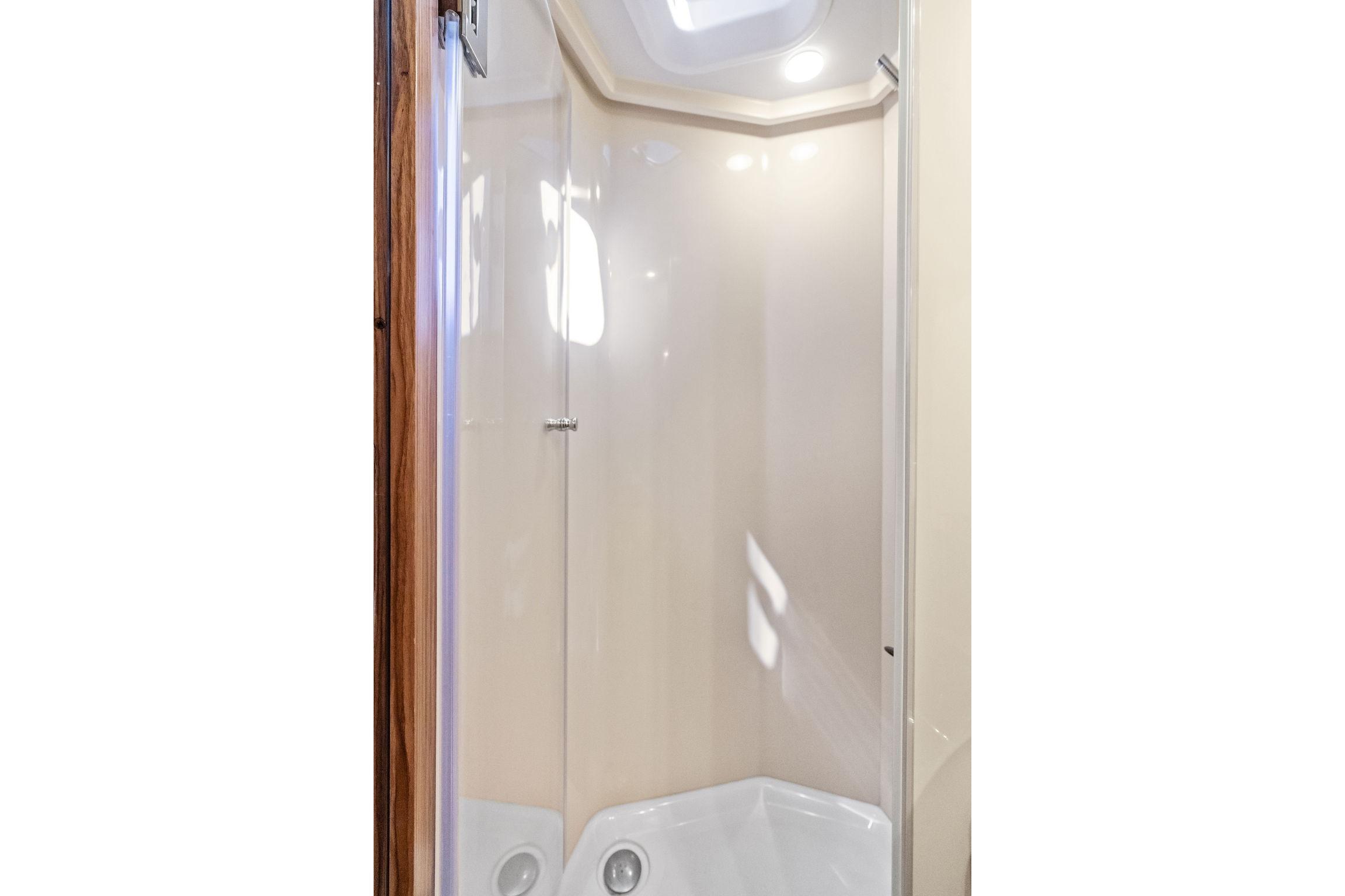 The Azimut 43 Magellano is a yacht designed for those who love the journey as much as the destination. With her unique dual-mode hull, she offers the perfect balance between efficient long-range cruising and smooth performance at higher speeds. Timeless Italian styling is matched with thoughtful functionality, making her an ideal choice for both seasoned yachtsmen and adventurous families.Her contemporary interior is bright and inviting, with panoramic windows that flood the salon with natural light. Her well equipped galley, spacious salon, and comfortable accommodations for extended cruising create an atmosphere of casual luxury. Two staterooms, including a full-beam master, offer excellent comfort, while her intelligent layout ensures ample storage and ease of movement throughout.On deck, the flybridge and aft cockpit provide multiple social spaces for dining, entertaining, or simply relaxing while underway. Every detail reflects Azimut’s renowned craftsmanship, combining elegance and practicality. Whether exploring coastal waters or venturing on longer passages, the 43 Magellano delivers reliability, comfort, and style in one impressive package.Advanced Options: Bow Thruster Double Racor filters for main engines Emergency bilge water discharge through engine Spare conduits connecting engine room/wheelhouse/radar arch Xenta joystick control for engines and bow thruster Chain washing system External covers package (mesh covers for windows and windscreen, covers for fly and cockpit sette) Additional searchlight control and lower helm Chaincounter control at main helm