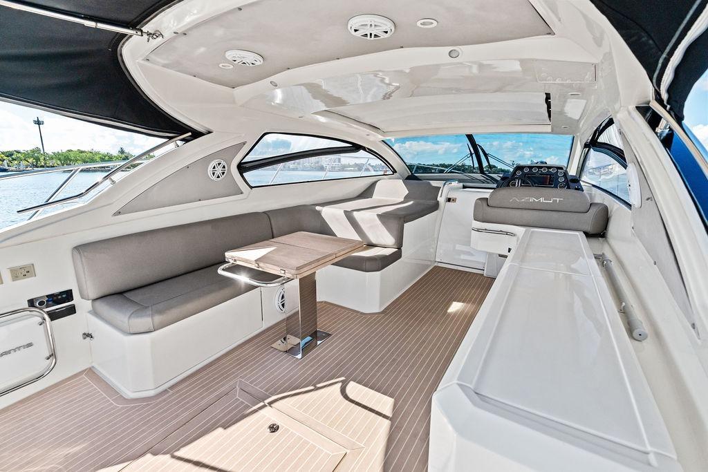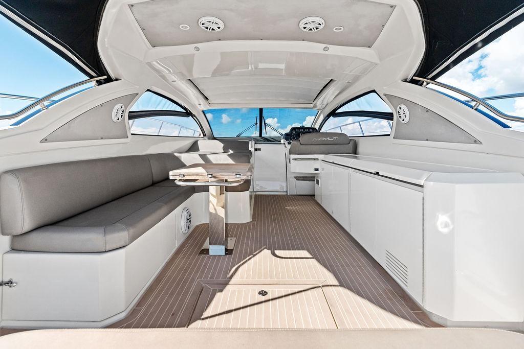 This 2013 Azimut Atlantis 48 delivers the perfect balance of Italian styling, sporty performance, and luxurious comfort. Designed in collaboration with Neo Design, the Atlantis 48 features a sleek profile, powerful twin Cummins QSC 600 hp engines, and joystick docking with bow and stern thrusters for effortless maneuvering. Cruising at 30 knots and topping out near 35, she’s built for speed, agility, and unforgettable days on the water.Her cockpit is a true social hub, complete with air conditioning, retractable soft top, teak side decks, teak table, and an entertainment center with audio/video, grill, and icemaker. Ideal for hosting family and friends. The tender lift platform and concealed electro-hydraulic gangway provide seamless access to the water, while sunpads forward and aft invite relaxation.Below deck, the contemporary décor highlights a bright salon with convertible dinette, additional 100-liter refrigerator, and fully equipped galley. Accommodations include two staterooms—an en-suite master and a spacious VIP, plus the convertible dinette, and comfortably sleeping up to six guests. Every detail reflects Azimut’s signature craftsmanship, from fine wood finishes to thoughtful storage.Loaded with premium options such as upgraded Raymarine GPS/Radar/Chart Plotter, chain counter with remote, stainless steel anchor, stern stowage with electric opening, and more, this Atlantis 48 is one of the most complete examples on the market. Whether entertaining dockside, island-hopping, or enjoying long weekends aboard, she delivers performance, comfort, and style in one impressive package.