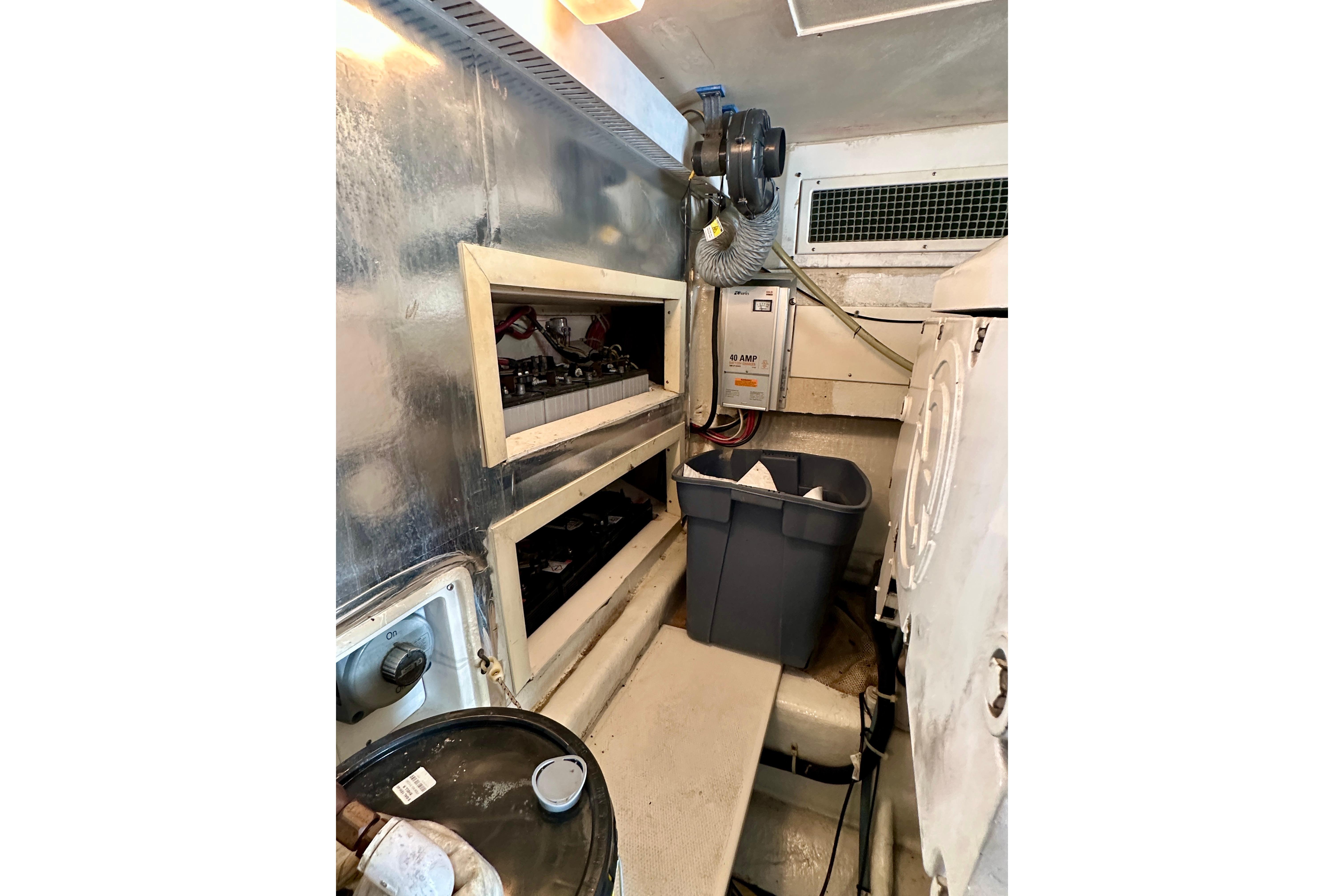 Utility room access in galley sole (AC's, FW water pump and water heater and additional storage)